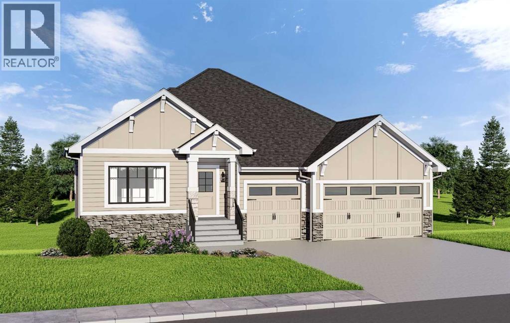 Welcome 259 Muirfield Cresent, a home where modern design meets the quiet beauty of the Alberta prairies. Located in the premier golf community of Lakes of Muirfield, this brand-new residence offers a lifestyle of ease and sophistication. From the moment you arrive, the oversized triple garage and welcoming front porch set the stage for a home built with quality and functionality in mind.The heart of this home is a sprawling open-concept layout that feels both grand and inviting. The gourmet kitchen, complete with a walk-in pantry, flows effortlessly into a sun-drenched dining nook and a massive family room. This seamless transition is perfect for busy mornings or hosting evening gatherings. Large windows frame tranquil views of the canal, while the rear deck acts as a natural outdoor extension of your living space.For those who work from home, a versatile flex room is tucked away near the front entrance, offering a quiet sanctuary away from the main living area. The primary suite serves as a private retreat, featuring a spa-like ensuite and a large walk-in closet designed for serene organization.The fully developed walk-out basement is a true standout, offering a massive recreation area that centers around a built-in wet bar. Large glass doors lead you directly outside, providing easy access to the canal side. Two additional bedrooms and a full bath on this level make it a perfect setup for guests or older children.Living here means more than just a beautiful house; it’s about the unique benefits of the community. Unlike nearby urban centers, you’ll enjoy the freedom of no water restrictions, ensuring your landscaping remains vibrant all season long. Best of all, this brand-new property is ELIGIBLE FOR THE FIRST HOME BUYERS GST REBATE, offering a rare financial incentive on a premium build.This home offers the peace of the countryside with the convenience of being just a short drive from Calgary and Strathmore. Depending on the stage of construction, buye rs may have the opportunity to select their own interior finishes. Interior photos are from a previous build. (id:53676)