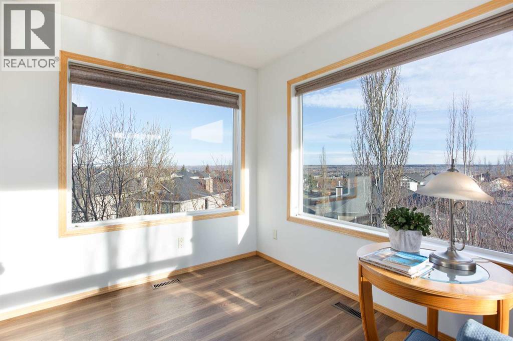 OVER 2,600 SQ FT | 5 BED 3.5 BATH | PIE LOT | WALKOUT BASEMENT | SOLAR POWERED & FULLY UPDATEDPerfectly situated to capture sweeping views, this is the kind of home that checks every box for a growing family. With over 2,600 sq ft above grade and a fully developed walkout basement, space is never in short supply. The main level flows effortlessly from the formal living and dining areas into a warm, inviting great room anchored by the kitchen — ideal for both busy mornings and relaxed evenings. A dedicated main floor office/den provides the perfect work-from-home or study space. The kitchen features abundant cabinetry, a large island, stainless steel appliances, updated quartz countertops, recently installed tile, a corner pantry, and an oversized dining nook with extended ceilings that enhance the views and natural light. Fresh paint and updated flooring throughout, including oak hardwood and newer LVP, give the home a refreshed feel. In addition, the microwave, refrigerator, washer, and dryer have all been replaced recently.Upstairs, you’ll find three generous bedrooms, a full bath, and a spacious bonus room perfect for movie nights or a kids’ play area. The primary bedroom offers a private escape with a spa-inspired ensuite and elevated views. A unique retreat room off the primary is a standout feature, ideal as a reading lounge or quiet space. The walkout basement adds flexibility with two additional bedrooms, a large recreation room, full bathroom, and ample storage—perfect for guests, teenagers, or multigenerational living. Recent vinyl flooring continues into the basement for a clean, modern finish.Outside, the pie-shaped lot is fully landscaped and fenced, featuring mature trees, low-maintenance artificial turf, and two outdoor living spaces—an expansive upper deck and a lower walkout patio. Major upgrades include a newer 35-year roof, high-efficiency furnace, tankless water heater, updated quartz countertops, and solar panels that significantly reduce e lectricity costs.Located in the quiet, family-oriented community of Crestmont, the home is surrounded by walking paths, green spaces, and playgrounds. With quick access to the Trans-Canada Highway and Stoney Trail, commuting is easy while also allowing for seamless trips to the mountains, including Banff.Just a short drive away, WinSport (Canada Olympic Park) offers year-round activities including skiing and biking, while nearby GoodLife Fitness adds everyday convenience. The area continues to grow with the future Bingham Crossing development, featuring a Costco and a variety of retail and services, further enhancing long-term value.A spacious, updated home with views, efficiency, and room for everyone — this is one you won’t want to miss. Welcome to Crestmont Living. (id:53676)