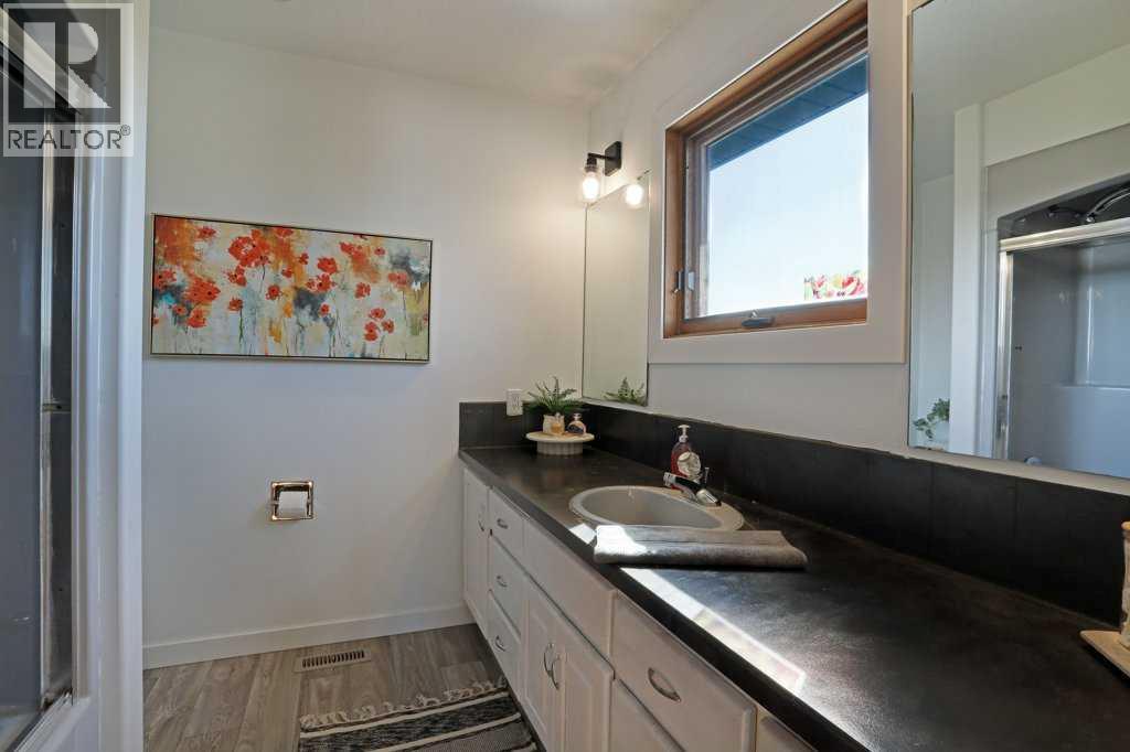 Look what we have here, a lovely 2 storey home, nicely situated in a quiet crescent in the quaint village of Duchess! Eye catching features with a sprawling floor plan! Upon entry you are welcomed with a vaulted ceiling, stone faced wood burning fireplace and a pleasing staircase. On the main floor there is a large galley kitchen with loads of cupboards, dining area, office, laundry, huge walk-in in pantry and access to the back yard. The second storey offers the primary bedroom with a grand walk in closet, 4 piece ensuite, 3 additional bedrooms (one does not have a closet), large storage room, a "just for fun" laundry shoot and a jack and jill 4 piece bathroom. The current owners have made some impressionable upgrades, such a metal roof, flooring, trim, paint and lighting. Now to even sweeten the pot a little more, there are 2 garages, one attached garage and a 24x30 detached garage. Both have in floor heating. There is plumbing to add a 2 piece bathroom in the detached garage. The oversized yard is fenced with private concrete fencing, RV parking with 30 amp service and a concrete patio that is built to last. The basement has partial development, but can easily be turned into a great addtional living space for the family. Take a look at the Virtual tour offered. If you like what you see call a Real Estate professional to book a showing. (id:53676)