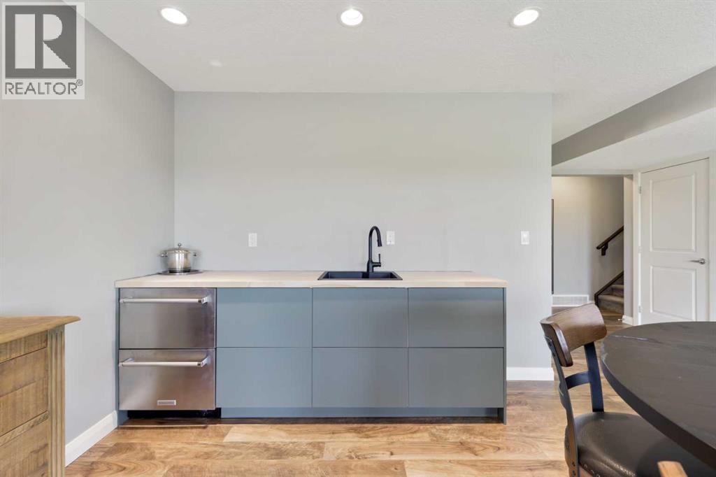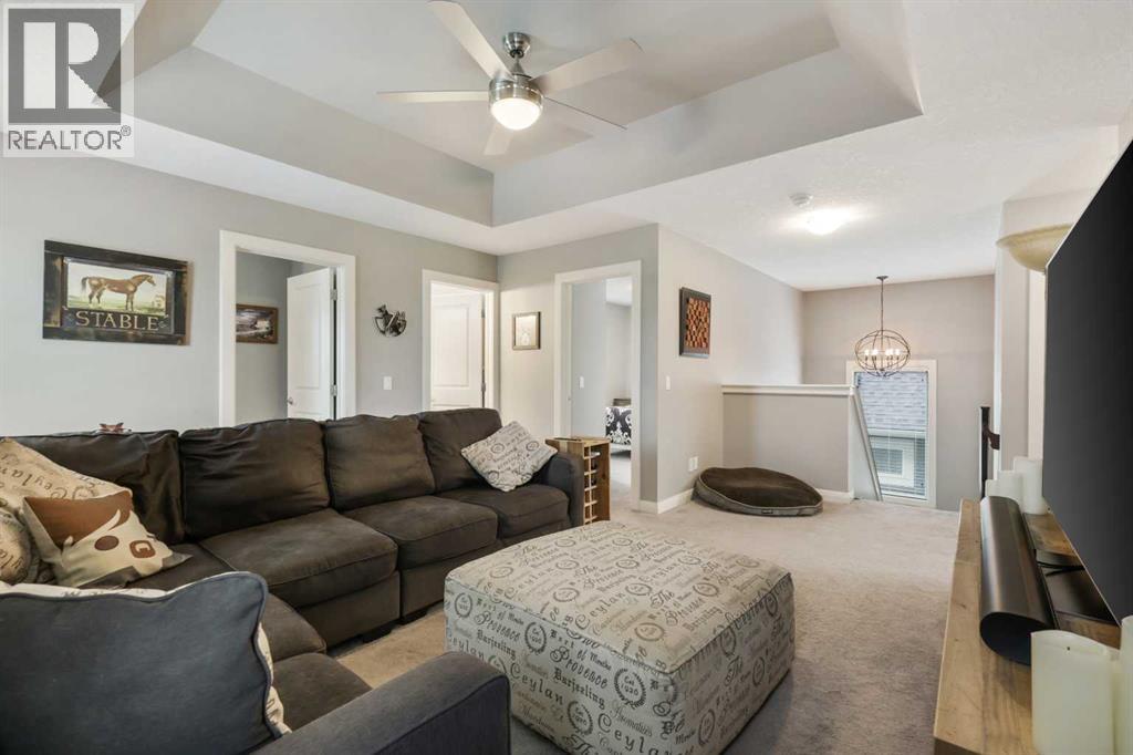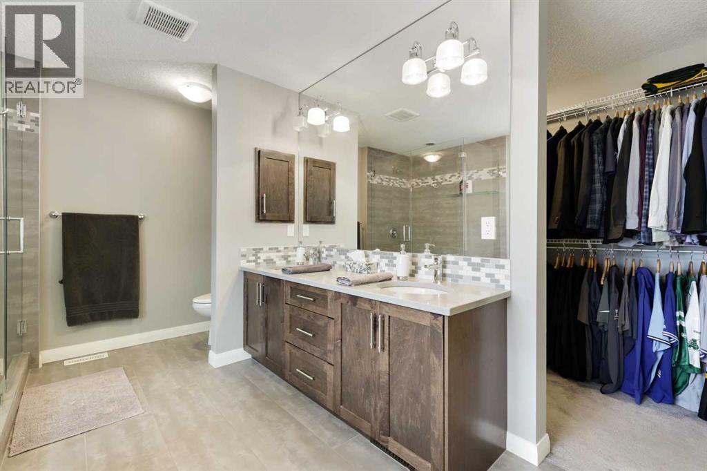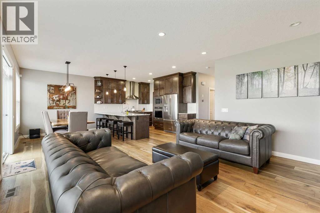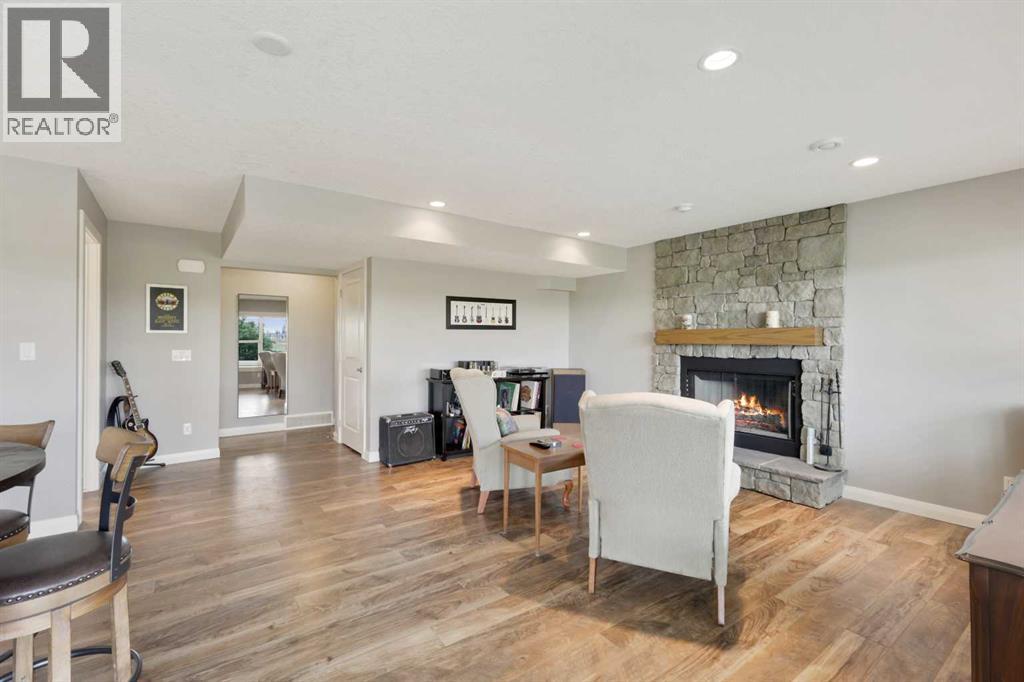Location, luxury and lifestyle in this fully finished 2 story walkout backing onto hole #3 of the Track Golf Course in beautiful Boulder Creek Estates of Langdon. This exceptional home features water views, almost 2,800 sq ft of living space, central air conditioning and an incredible 5 car heated garage. A designated home office just off the front entrance is the perfect place to work or study away from the main living space. The main living area is a spacious open concept design with an entire wall of windows showcasing your stunning views. Enjoy all the bells and whistles in the chef’s kitchen. Ceiling height cabinetry, granite counters, high end stainless steel appliances including a gas range, wall oven and built-in microwave plus a walk through pantry that even has a coffee bar / butler’s pantry make this your dream kitchen come true. Between the dining room and kitchen is an expansive peninsula with seating perfect for friends and family to gather. The gas fireplace in the living room is both practical and elegant. Gorgeous wide plank hardwood floors and farmhouse inspired lighting throughout add to the charm of this home. The huge upper deck just off the dining room is perfect for outdoor dining, grilling and lounging while taking in your magnificent views. The large mudroom is the perfect place to keep the clutter of outerwear and gear out of your main living space. A 2 pc powder room rounds out this main level. Heading upstairs you’ll find a nice bonus room with a tray ceiling. It’s the perfect place for the family to curl up with a good book or to watch a movie together. The spacious primary bedroom has a large window overlooking your beautiful golf course & water views. Indulge yourself in the spa inspired 5 pc ensuite bath with freestanding soaker tub, large glass shower, heated floors and dual sinks. The oversized walk in closet is another luxury you’re sure to appreciate. The other 2 bedrooms share the main bath which has a door separating the sink f rom the rest of the bathroom making busy mornings a little less chaotic. You’re going to love entertaining with friends and family in the fully finished walk out basement. A rustic wood burning fireplace adds a warm and cozy vibe, and the wet bar, 4 pc bath and luxury vinyl plank flooring offer every convenience you could need. Step out to your covered patio area that leads to your huge outdoor living area. There is tons of lawn space for kids and pets to play, a stone fire-pit area for friends to gather plus manicured flower beds, raised planters and plenty of trees. Don’t miss your chance to call this outstanding home in the charming community of Langdon home. (id:53676)
