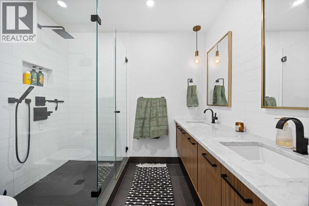 **OPEN HOUSE - Nov 29 & 30 (11-1pm)**Tucked into a quiet pocket of Killarney, this beautifully updated single-family home blends modern style with everyday comfort. The moment you step inside, you’re welcomed by a bright sunken living room, where a striking black fireplace creates a bold focal point and adds warmth and personality to the space.Natural light fills the main floor thanks to large windows and a layout that flows easily into the dining area and refreshed kitchen. Here, sleek contemporary wood cabinetry, quartz countertops, and a trendy tiled backsplash elevate the entire space with a clean, modern look. At the back of the home, magnificent rear glass doors open to a tiered deck—seamlessly connecting indoor and outdoor living.The west-facing backyard is designed for effortless enjoyment, featuring low-maintenance landscaping, a stone patio, and a fire pit area, all set within a privately fenced yard that offers a quiet, private outdoor escape without the upkeep. With sunshine stretching across the yard through the afternoon and evening, it’s the perfect spot to relax, unwind, and entertain.Upstairs, the primary bedroom offers a peaceful retreat with its own walk-in closet, ensuite, and a private balcony—perfect for a quiet moment to start or end your day. Two additional bedrooms, including one with its own balcony, share a well-appointed main bathroom.The developed basement adds even more versatility, offering a cozy family room that works just as well for movie nights as it does for a gym, play area, or office—whatever fits your lifestyle best.Set on a charming street in one of Calgary’s most beloved inner-city neighbourhoods, this home puts you close to Killarney’s vibrant dining scene, parks, transit options, and offers quick access downtown. With its blend of thoughtful updates, stylish finishes, and an easy-to-love layout, this home delivers comfort and character in equal measure. (id:53676)