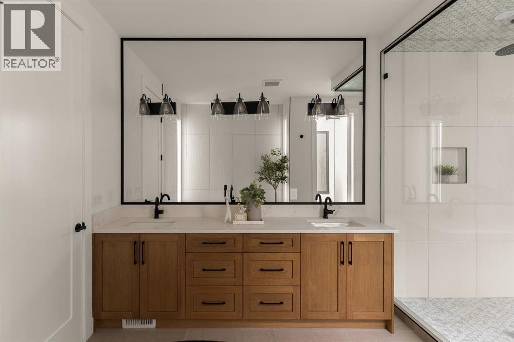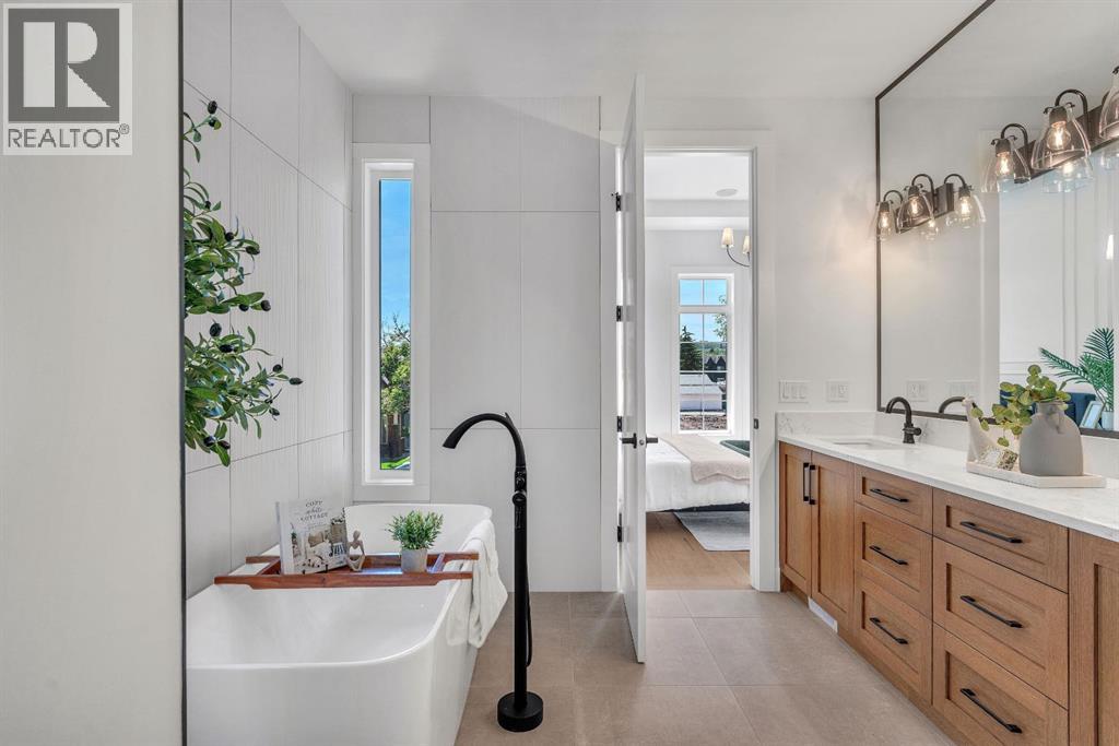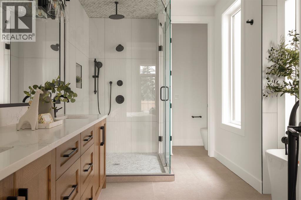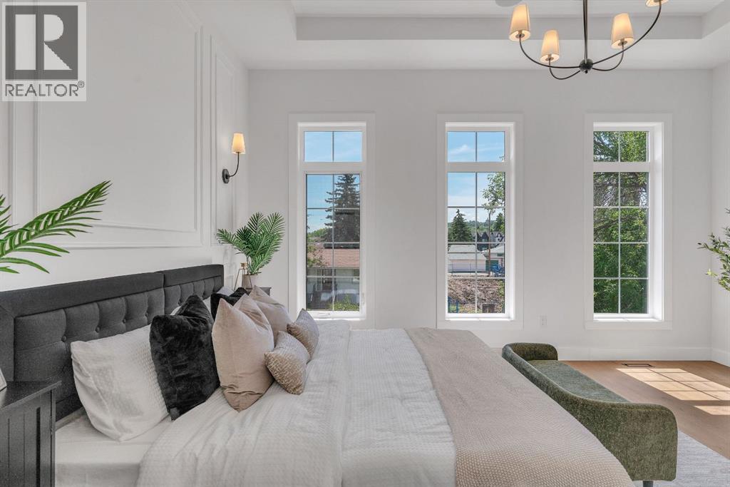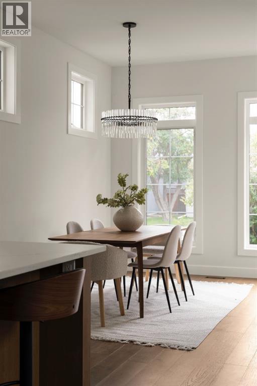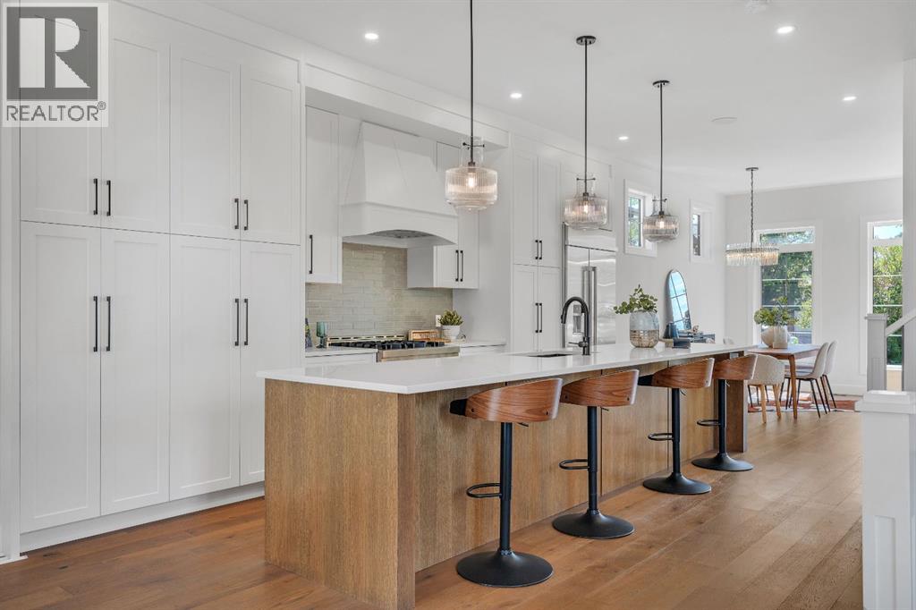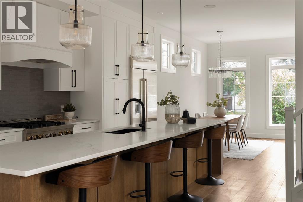 Experience refined living in this beautifully crafted brick-exterior home located in one of Calgary’s most desirable neighbourhoods. This thoughtfully designed residence features a seamless flow from the elegant dining area to a chef-inspired kitchen equipped with high-end Jenn-air appliances, large walk-in pantry, quartz countertops, full-height cabinetry, and generous prep space. The spacious living room is anchored by a gas fireplace with a brick feature wall and built-in shelving, custom wainscoting, creating a warm and inviting atmosphere. Large sliding doors open to a private patio, ideal for outdoor entertaining. The main level also offers a stylish powder room, and a functional mudroom. Upstairs, the serene primary suite is a true retreat featuring custom wainscoting, a luxurious five-piece ensuite that includes a dual vanity, a soaking tub, and a walk-in shower with a rainfall head, complemented by a spacious walk-in closet. Two additional bedrooms share a beautifully finished full bathroom, and a dedicated laundry room adds convenience. The fully developed basement extends the living space with a wet bar, beverage fridge, an additional bedroom, and a full bathroom, making it perfect for guests or entertaining. Comfort is further enhanced with roughed-in in-floor heating, AC rough-ins, and speaker rough-ins. Situated on a fully fenced lot with a double detached finished garage, this home combines privacy with functionality. Perfectly situated steps away from parks, trendy restaurants, and bars, this residence offers a tranquil oasis within the lively Kensington district. Close to the Bow River, Downtown, the University of Calgary, SAIT, and the Foothills Hospital. Call today to book your private tour! (id:53676)
