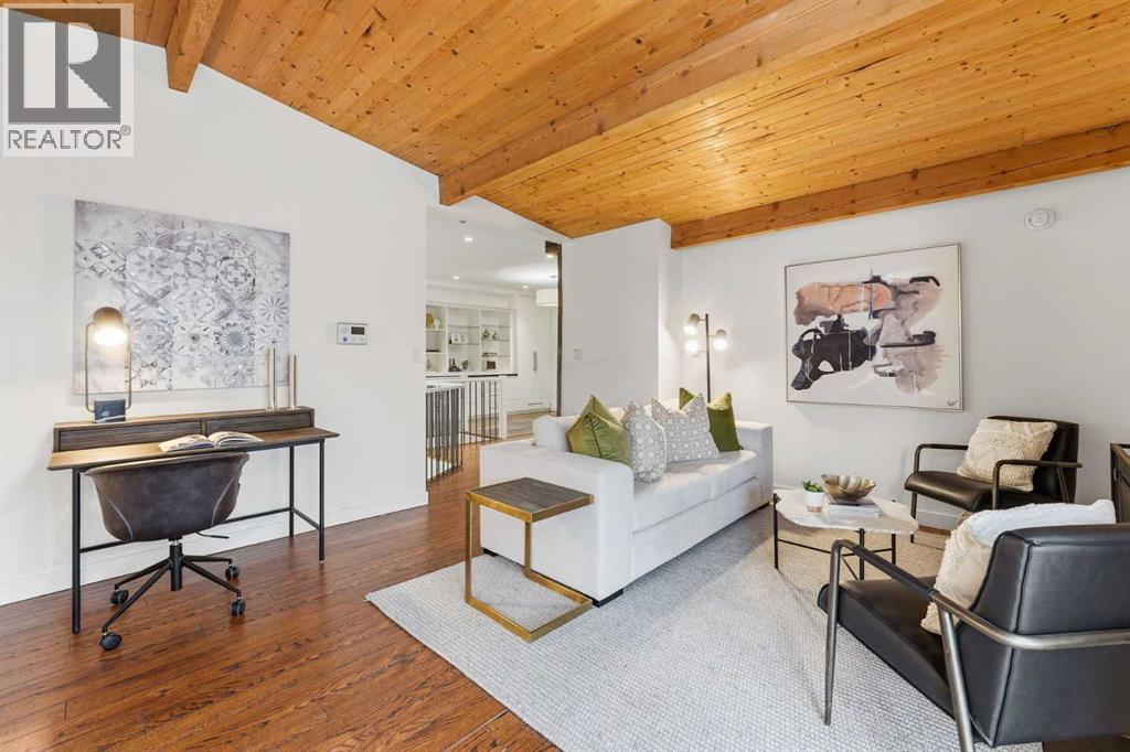 O/H March 7 & 8 noon to 2 . Quietly positioned along a tree-lined street in the established community of Glendale, this beautifully renovated 1,840 sq ft bungalow blends timeless mid-century character with the comfort & function of thoughtful modern upgrades. Set on an oversized 70’ wide lot, the property delivers exceptional outdoor space, architectural charm & a layout designed for everyday living & effortless entertaining. A spacious foyer introduces the home with custom built-ins for organized storage & display. Overhead, dramatic vaulted wood-panelled ceilings with exposed beams highlight the home’s original architectural beauty while establishing a warm & welcoming atmosphere throughout the main living areas. Relax beside the charming wood-burning fireplace in the living room or open the sliding patio doors to extend gatherings outdoors, supporting a seamless indoor & outdoor lifestyle across every season. Designed for both style & function, the beautifully updated kitchen showcases quartz countertops, timeless subway tile, stainless steel appliances including a gas range & a large central island that naturally brings family & guests together. A gas fireplace shared with the dining space adds warmth & ambiance while oversized windows fill the dining area with natural light, creating an inviting setting for daily meals & special occasions alike. Conversation easily continues in the adjacent family room where a comfortable layout encourages connection after dinner or quiet evenings at home. Rest & recharge in the spacious primary retreat featuring oversized west-facing windows & a custom walk-in closet designed for practical organization. A spa-inspired 5-piece bathroom elevates everyday routines with dual sinks & a deep soaker tub designed for relaxation. Two additional bedrooms & a stylish 3-piece bathroom complete the main level. Downstairs, the fully finished basement provides flexible living space for changing family needs with a large recreation room s uited for movie nights or games, a versatile nook ideal for hobbies, study or play, plus a fourth bedroom & a 3-piece bathroom that comfortably accommodates guests. An insulated, drywalled & heated double attached tandem garage offers exceptional year-round convenience while providing additional workspace & storage options. Outdoor living shines in the expansive west-facing backyard where a pergola-covered deck with gas line supports effortless summer barbecues & relaxed evening gatherings. Generous yard space created by the oversized lot allows plenty of room for kids & pets to play while mature trees contribute privacy & a peaceful setting. Phenomenally located within walking distance to several schools & the community centre with an outdoor skating rink, tennis courts & playgrounds. Additional recreation is nearby at Glenmeadows/Turtle Hill Park. Plus enjoy quick access to downtown, the LRT & major routes. (id:53676)