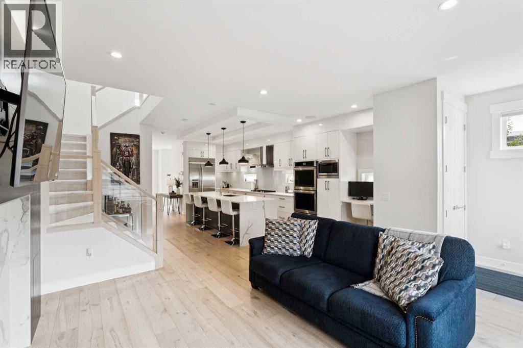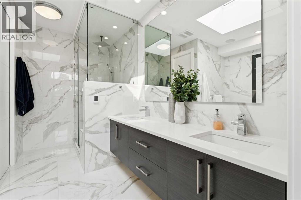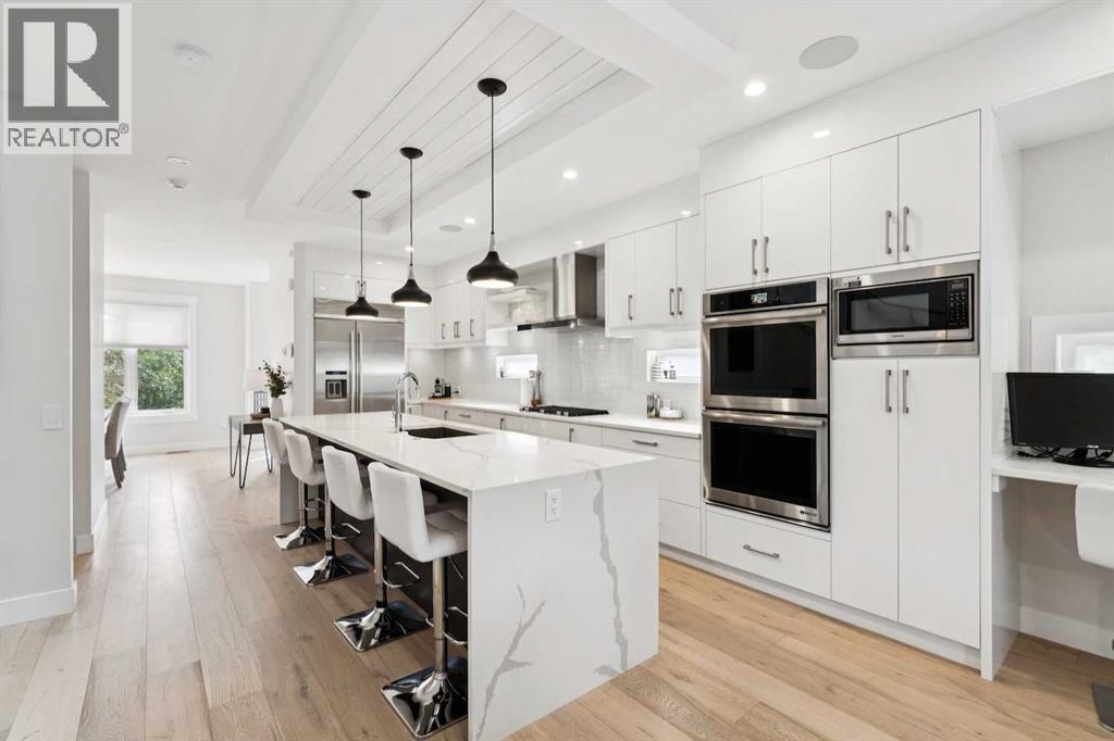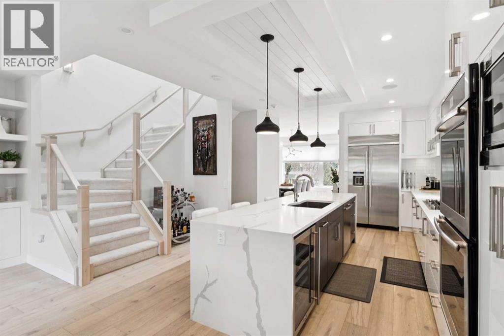 This remarkable inner city home in Killarney truly is an entertainers dream! It starts with a truly massive kitchen with the best of appliances - Jennair oversize built in fridge, gas cooktop, double wall oven, garburator and more compliment the marble counters. The huge marble island is the perfect place to hang out before or after dining in the elegant front dining room. Move out back to the masterfully landscaped stone patio area with an amazing gas fire-pit. The garage has been designed to provide an additional outdoor entertainment area with a door that opens to the patio, it is finished inside and has an epoxy floor - perfect for setting up a bar for the patio or use as a covered entertaining area for BBQ's. Move downstairs and you'll find an amazing, and one of a kind, glass walled wine, whiskey and cigar room - fully sealed and ventilated to the outside. Every box was ticked on this custom build. Upstairs in the owner's retreat is a wonderful marble ensuite with heated floors, soaker tub, and a steam shower with a bench. The walk-in closet is almost 16' long with thoughtful build ins. A few other tidbits - central A/C, silk carpets, heated basement floors - triple pane windows - home automation and much more. This one is a truly unique masterpiece in this market. (id:53676)
