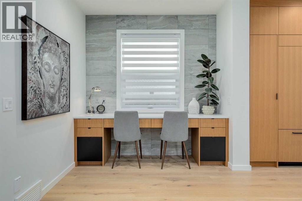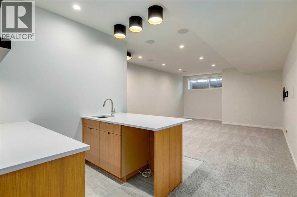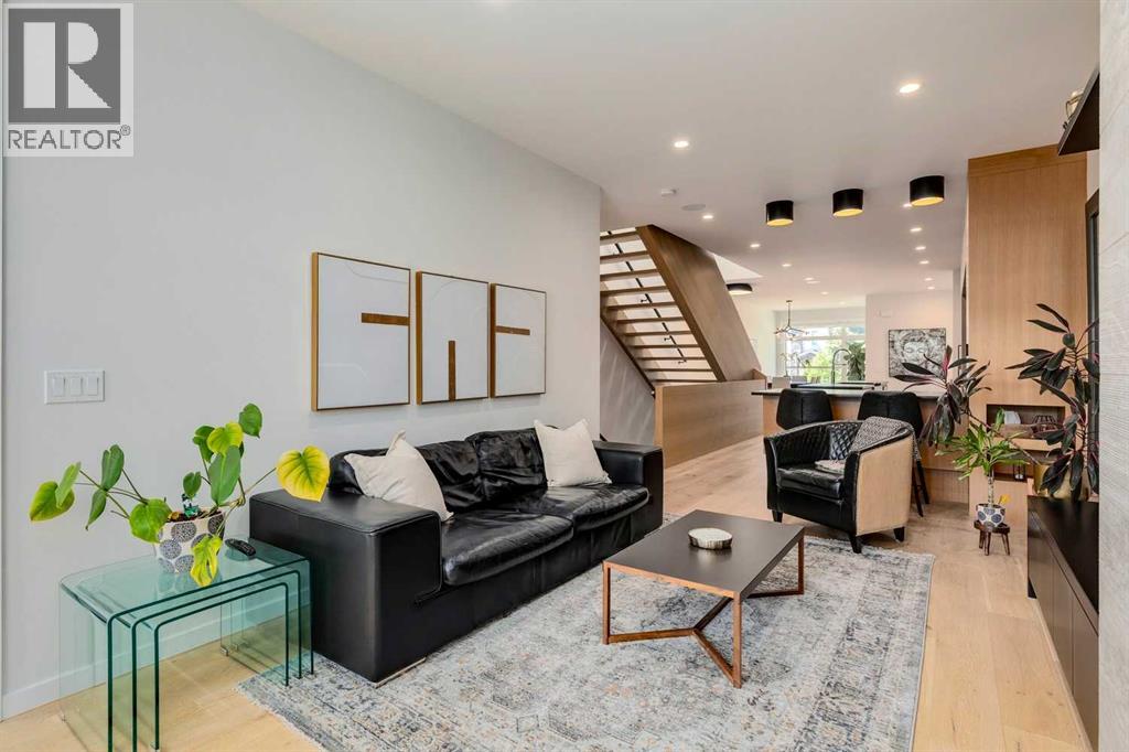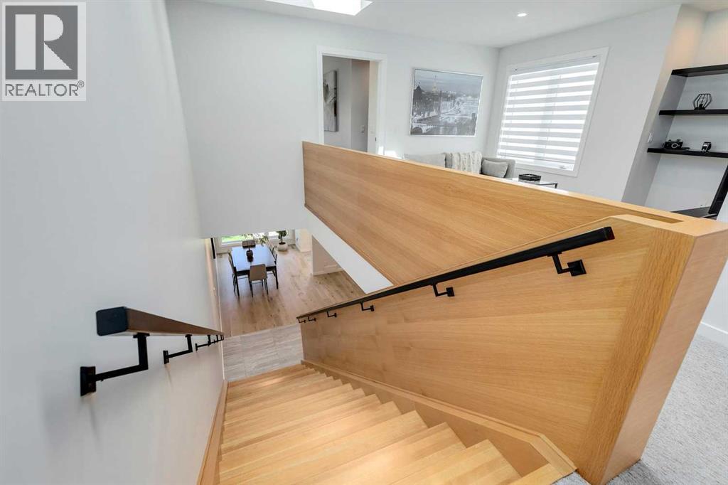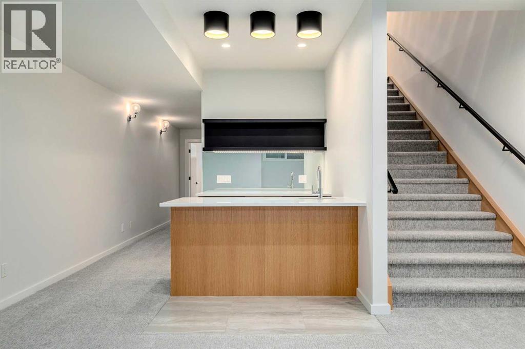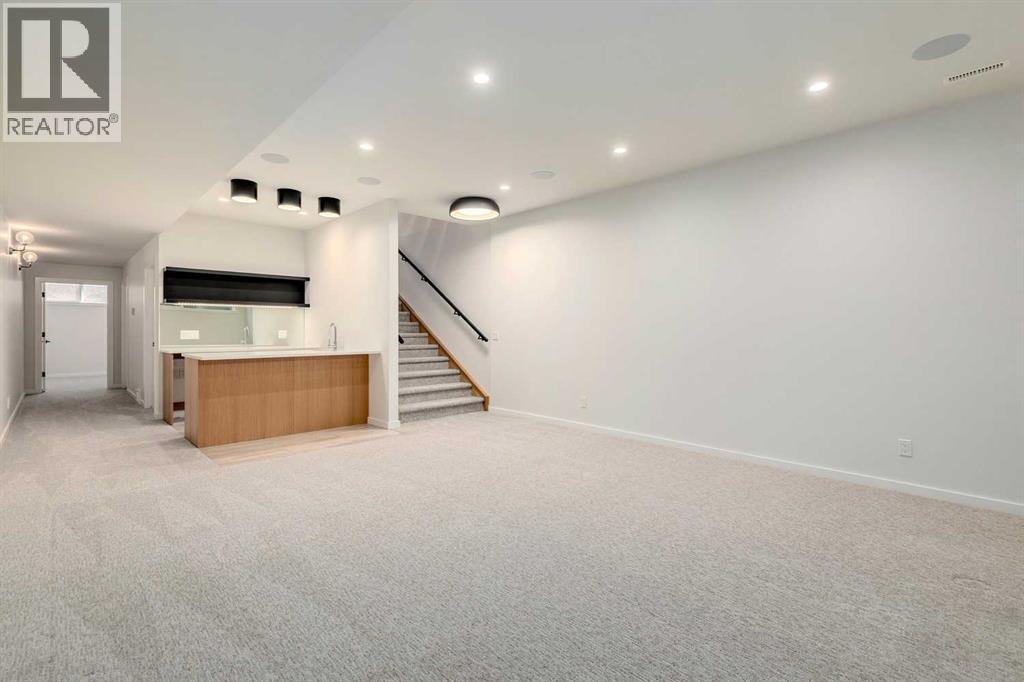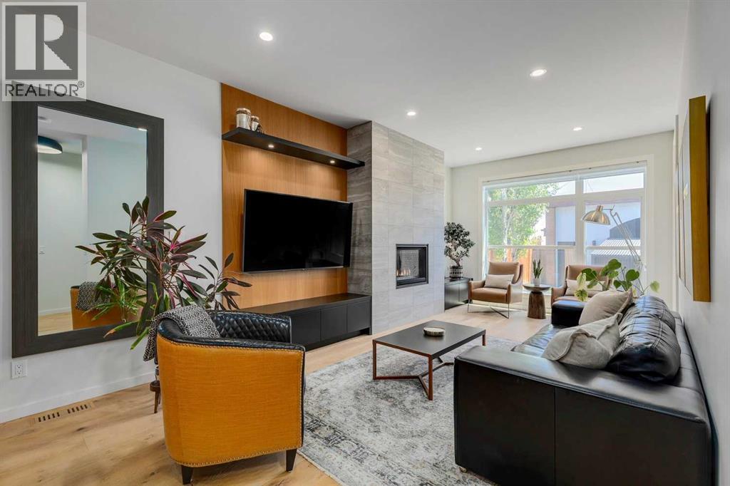 Modern Luxury in Killarney | 3 Bed | 5 Bath | High-End Finishes ThroughoutThis stunning Killarney duplex offers over 2,500 sq. ft. of beautifully finished living space, featuring 3 bedrooms, 5 bathrooms, and a layout designed for modern living and entertaining.The main level boasts 9-ft ceilings, wide-plank hardwood floors, and a striking open-riser staircase. The chef’s kitchen includes floor-to-ceiling cabinetry, built-in appliances, a massive island, and matte black finishes. A dedicated office nook, stylish powder room, and sunlit living room with tile-wrapped fireplace complete the space.Upstairs, the luxurious primary suite includes a spa-like ensuite with a soaker tub, glass shower, dual sinks, and a fully built-in walk-in closet. A spacious second bedroom, bonus room, full laundry, and main bath offer functionality and comfort.The fully developed basement features a large rec area, full wet bar, powder room, third bedroom with private ensuite, and in-floor heating plus second laundry hookup.Outside, enjoy a landscaped backyard with concrete patio and BBQ hookup, a rare drive-through double garage, and extra covered parking. Move-in ready, beautifully designed, and loaded with upgrades — this home is a must-see. Book your private tour today! (id:53676)