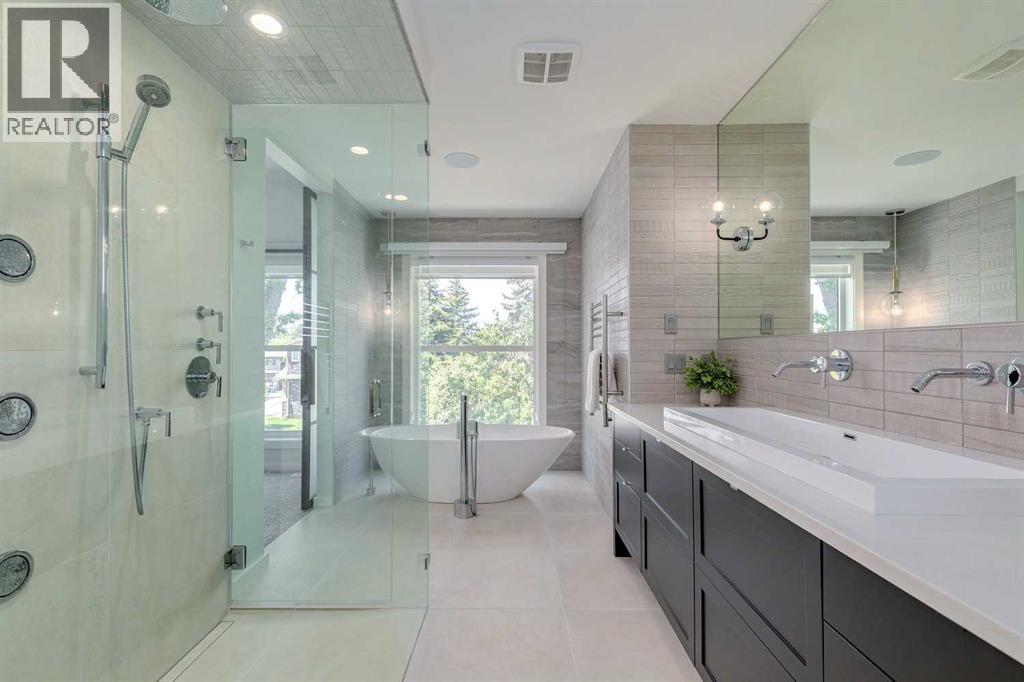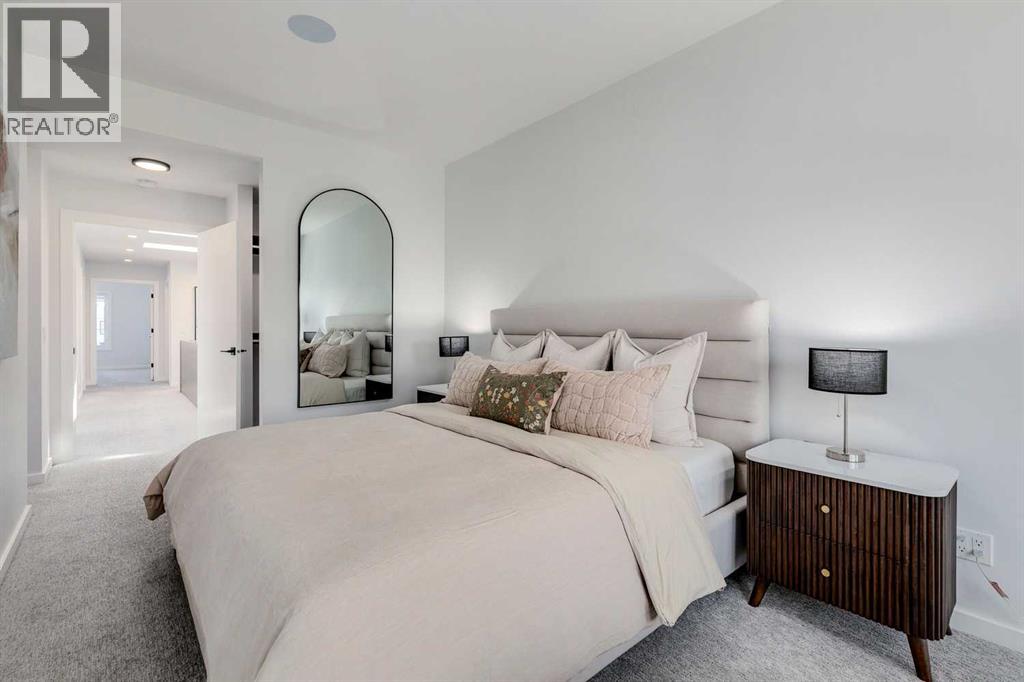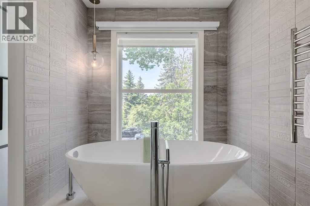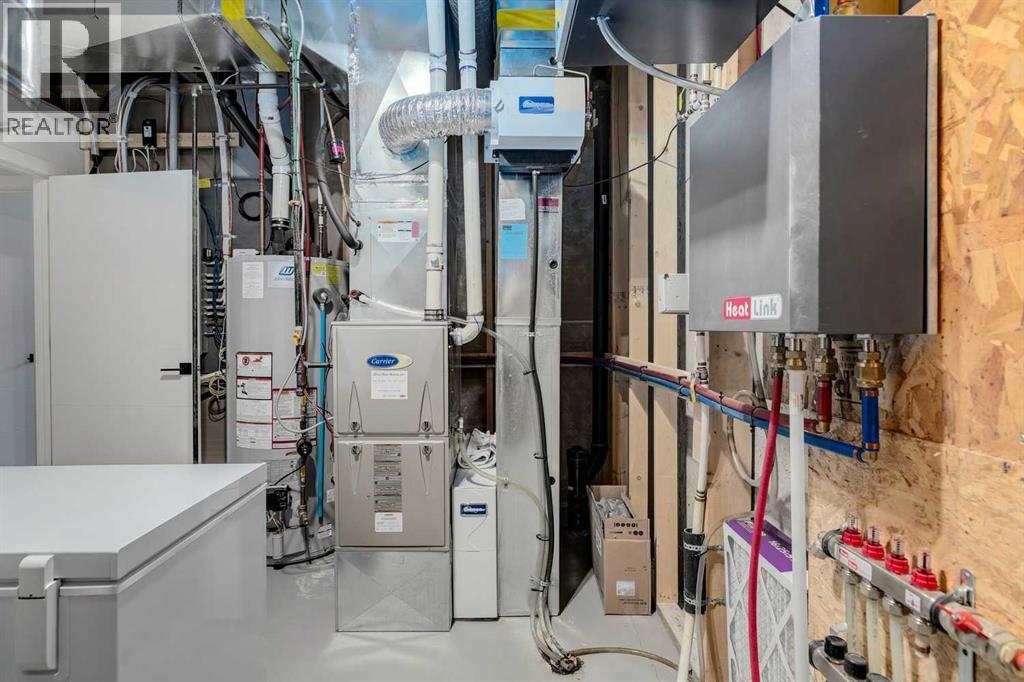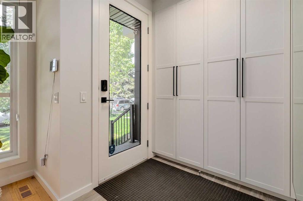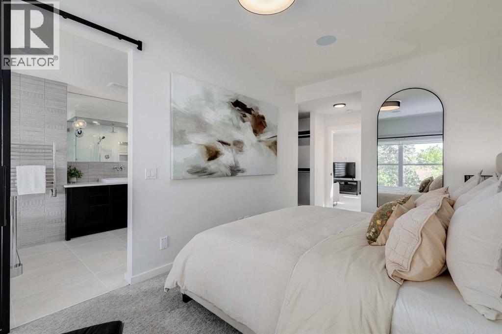 Modern Luxury in Killarney | 3 Bed | 5 Bath | High-End Finishes ThroughoutThis stunning Killarney duplex offers over 2,500 sq. ft. of beautifully finished living space, featuring 3 bedrooms, 5 bathrooms, and a layout designed for modern living and entertaining.The main level boasts 9-ft ceilings, wide-plank hardwood floors, and a striking open-riser staircase. The chef’s kitchen includes floor-to-ceiling cabinetry, built-in appliances, a massive island, and matte black finishes. A dedicated office nook, stylish powder room, and sunlit living room with tile-wrapped fireplace complete the space.Upstairs, the luxurious primary suite includes a spa-like ensuite with a soaker tub, glass shower, dual sinks, and a fully built-in walk-in closet. A spacious second bedroom, bonus room, full laundry, and main bath offer functionality and comfort.The fully developed basement features a large rec area, full wet bar, powder room, third bedroom with private ensuite, and in-floor heating plus second laundry hookup.Outside, enjoy a landscaped backyard with concrete patio and BBQ hookup, a rare drive-through double garage, and extra covered parking. Move-in ready, beautifully designed, and loaded with upgrades — this home is a must-see. Book your private tour today! (id:53676)