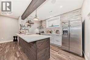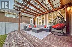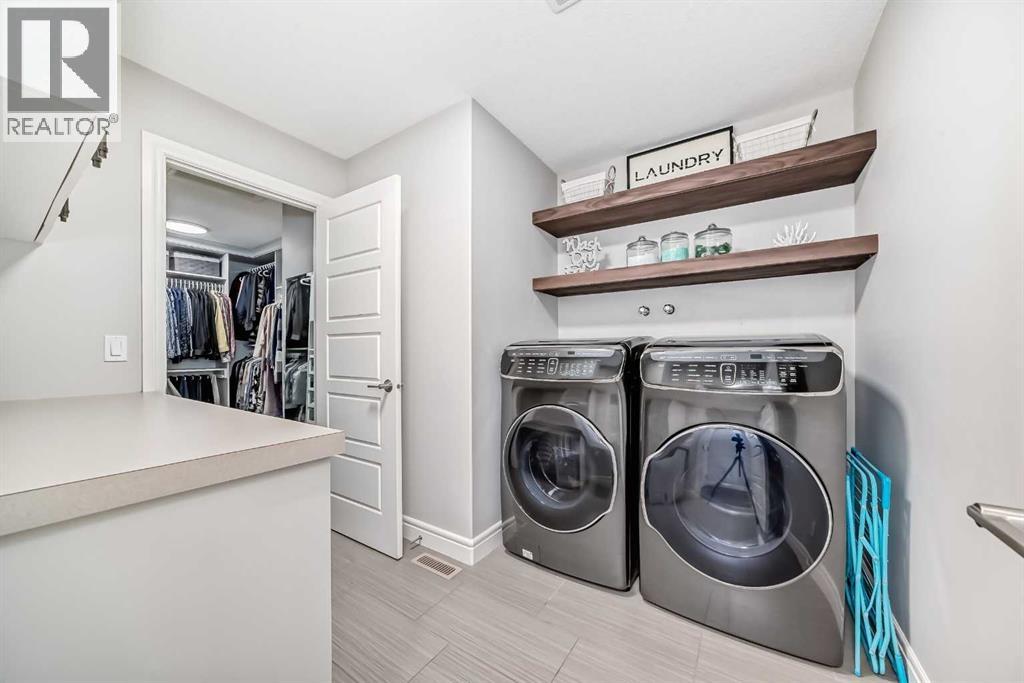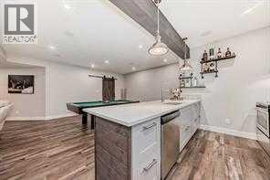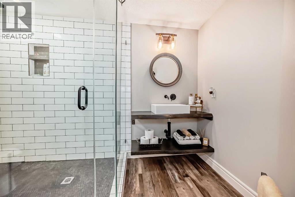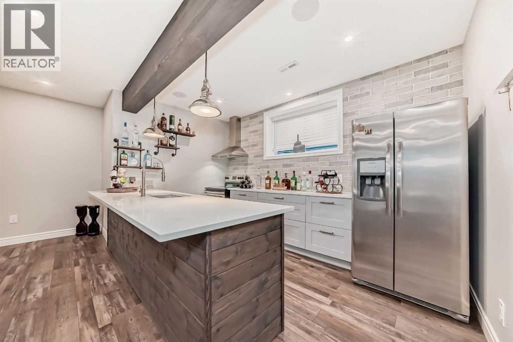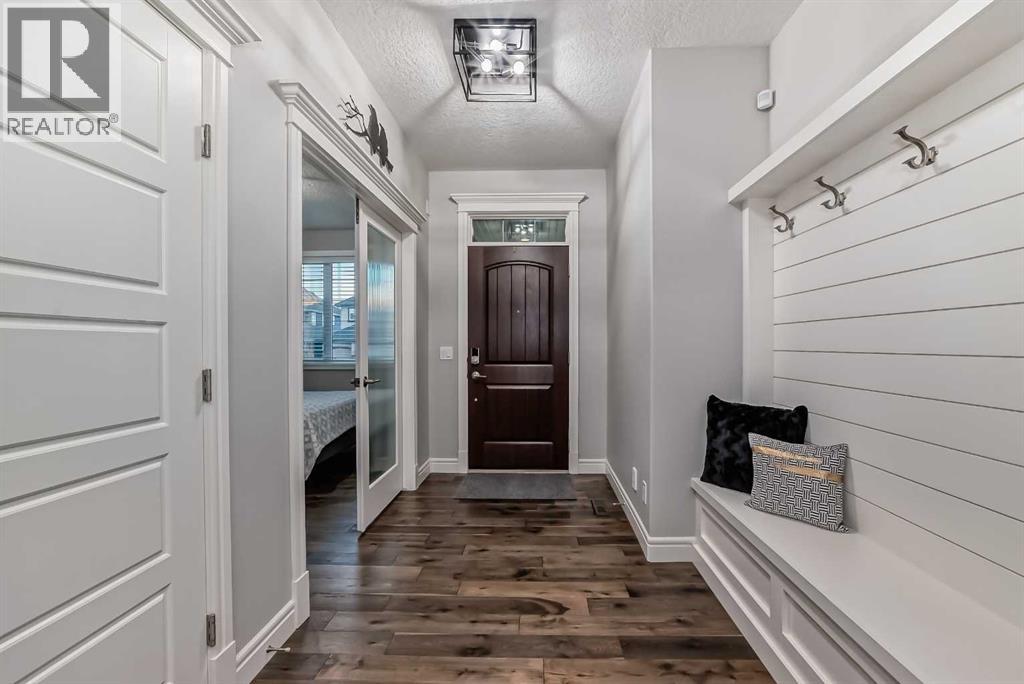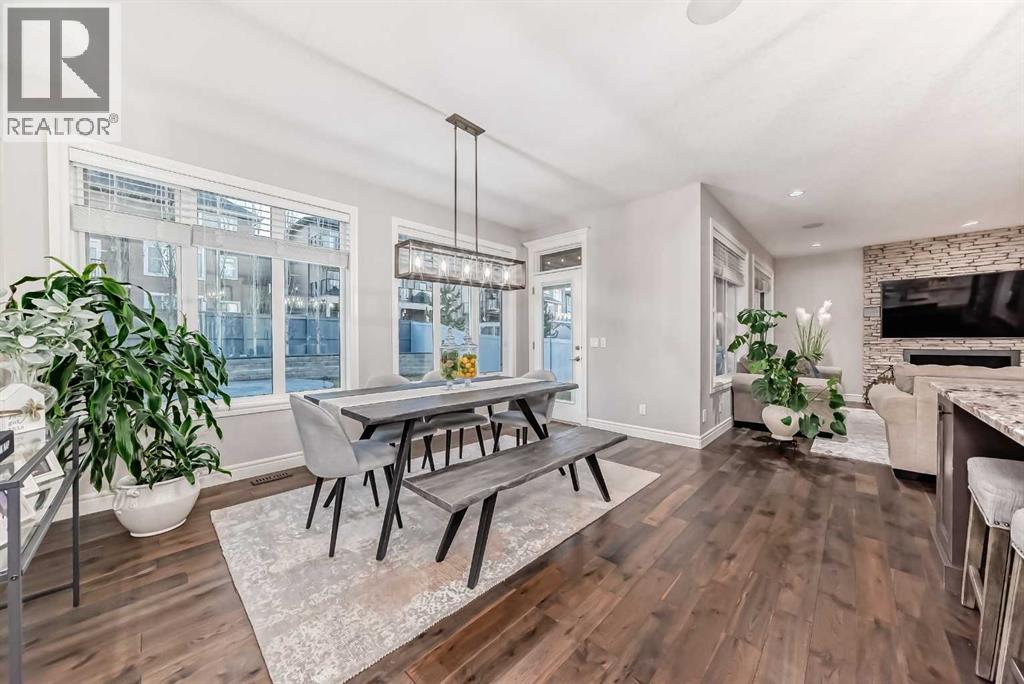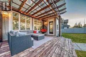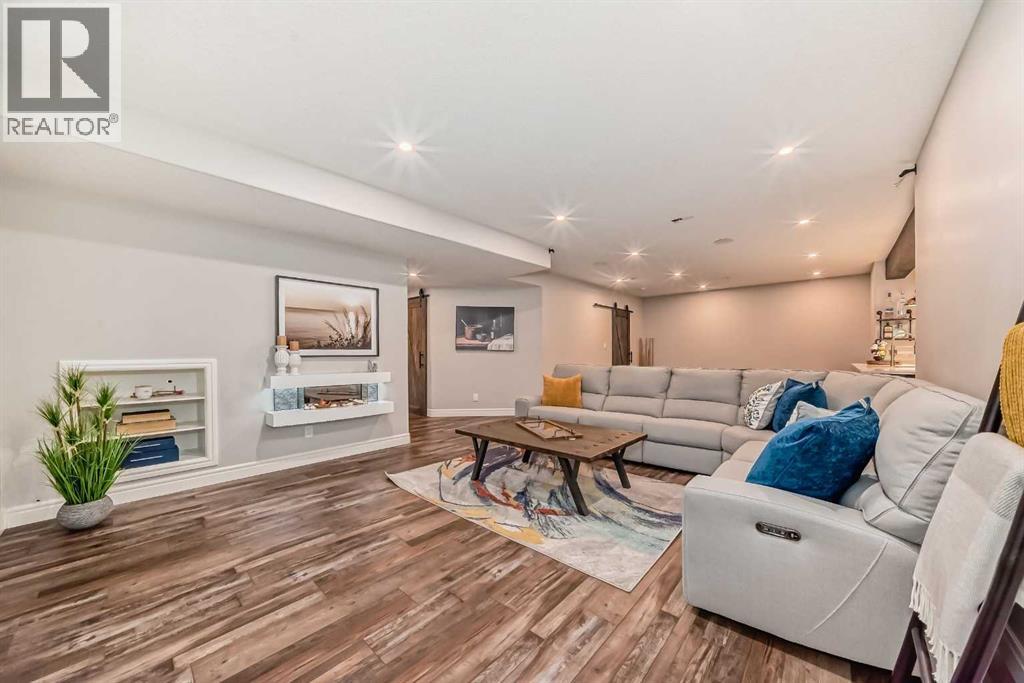 Welcome to this stunning executive home featuring a triple car garage and over 4,098 sq. ft. of beautifully designed living space. With 5 bedrooms, 4 bathrooms, and a main floor office, this residence is nestled on one of Chestermere’s most tranquil and sought-after streets. This home is loaded with high-end finishes and thoughtful upgrades, including new carpet, rich hardwood floors, granite countertops, upgraded and recessed lighting, and a chef’s kitchen outfitted with premium built-in Bosch stainless steel appliances. Additional features include two air conditioning units, central vacuum, built-in speakers, CCTV security cameras, a heated garage, and an exposed aggregate concrete driveway. As you step through the front door, you’re welcomed by a spacious foyer featuring a built-in bench and coat hooks. Just off the entry is a beautifully designed home office, perfectly placed for privacy and productivity. The main floor boasts an open-concept layout ideal for entertaining. The family room offers plenty of seating space and a cozy gas fireplace with a floor-to-ceiling stone surround. The chef’s kitchen is a dream, featuring Bosch built-in stainless-steel appliances, a gas cooktop with a custom hood fan canopy, granite counters, and a kitchen island with a built-in bar fridge for extra beverage storage. A walk-through butler’s pantry with a prep sink provides additional storage and connects seamlessly to the mudroom, which includes built-in cabinetry, a bench, and coat hooks. The dining area is located at the back of the home, filled with natural light from large windows and providing easy access to the backyard. A conveniently located 2-piece bathroom completes the main level. The backyard is a true outdoor retreat with a covered deck, a generous grassy area with mature trees, and a stamped concrete pathway leading to a separate patio with seating around a cozy fire pit — ideal for relaxing or entertaining guests. Upstairs, you'll find four generously sized bed rooms, each featuring custom-built walk-in closets. A bright and spacious bonus room with vaulted ceilings offers additional space for relaxation or play. The luxurious primary suite is the ultimate retreat with tray ceilings, a spa-inspired 5-piece ensuite that includes dual vanities, a freestanding soaker tub, a custom tile shower with bench, and a massive walk-in closet with custom built-ins. A full 4-piece bathroom and a well-placed laundry room complete the upper level. The fully finished basement is designed for entertaining, with 9-foot ceilings and a large open family and recreation area. A stylish wet bar includes an island with a fridge, stove, and dishwasher — perfect for hosting. The lower level also features a fifth bedroom and a modern 3-piece bathroom with a custom walk-in shower. (id:53676)