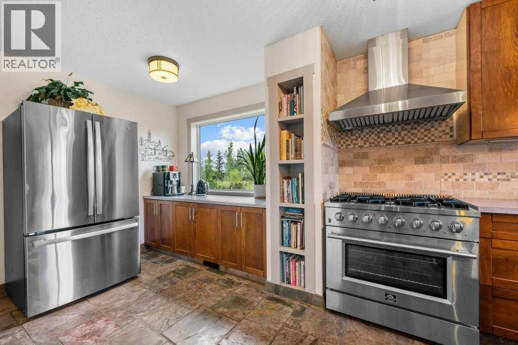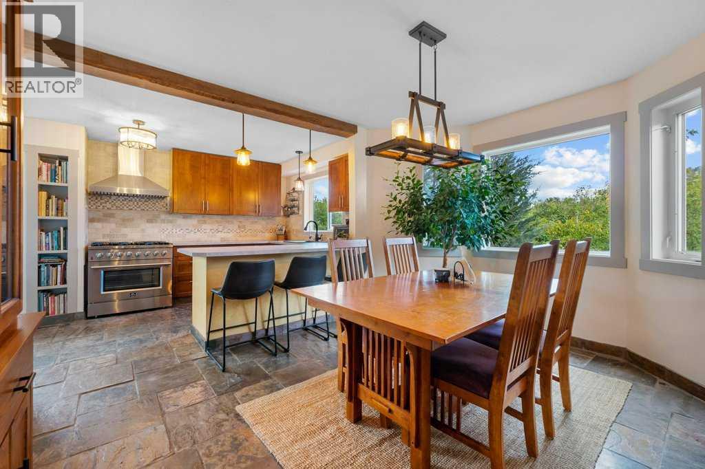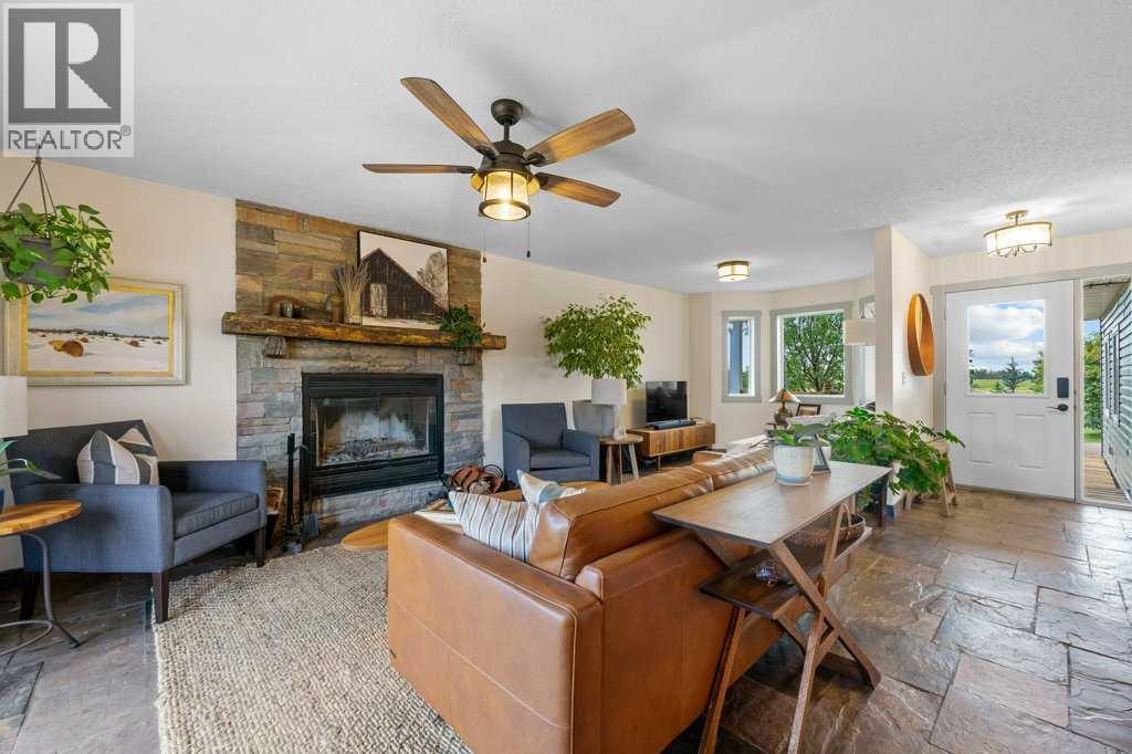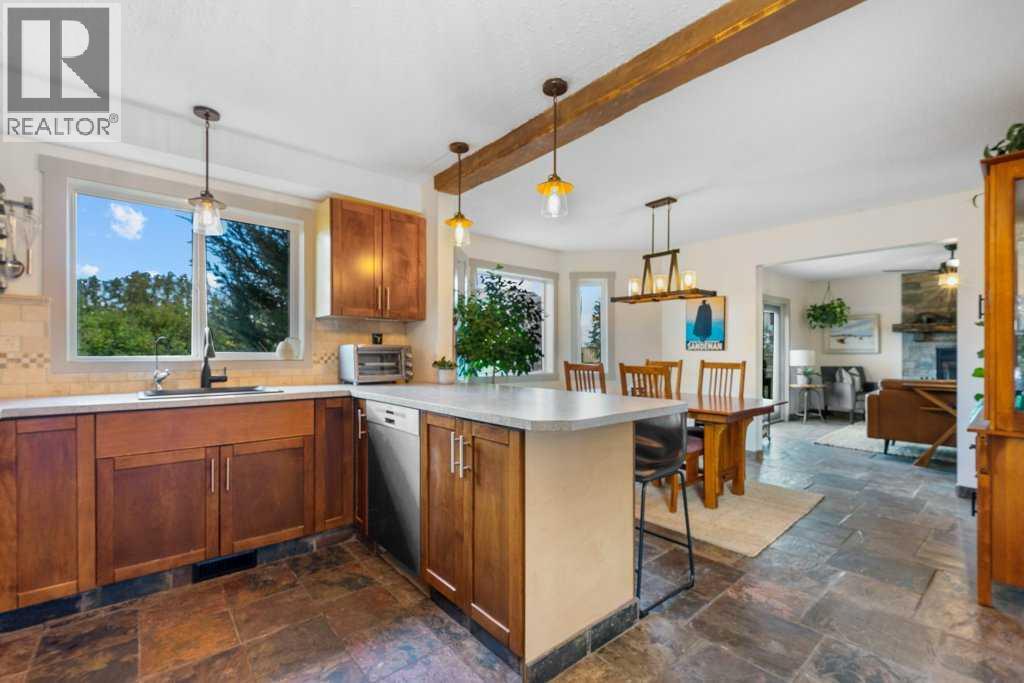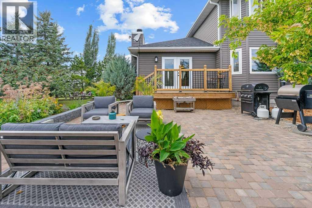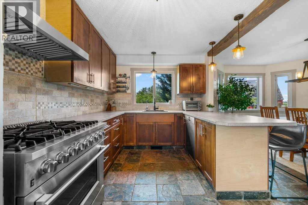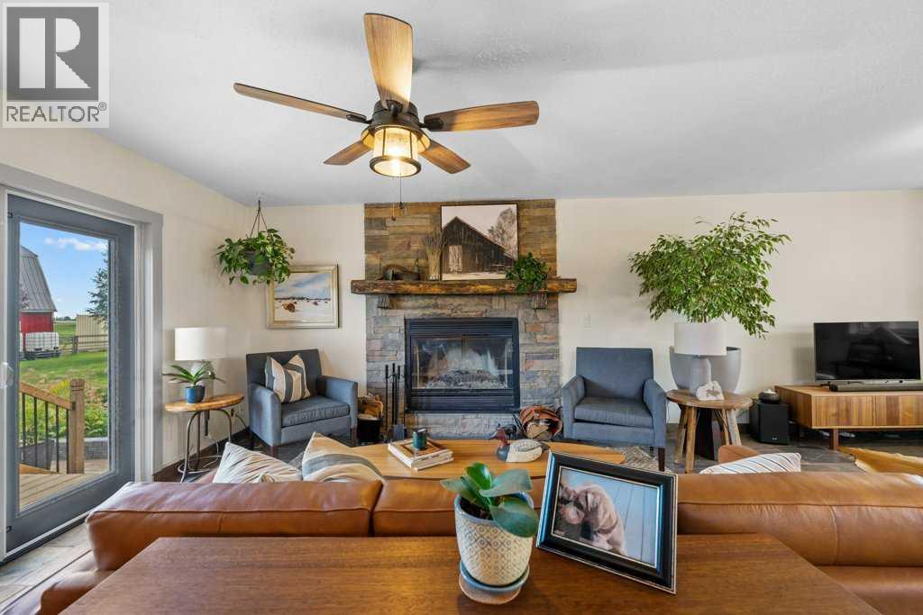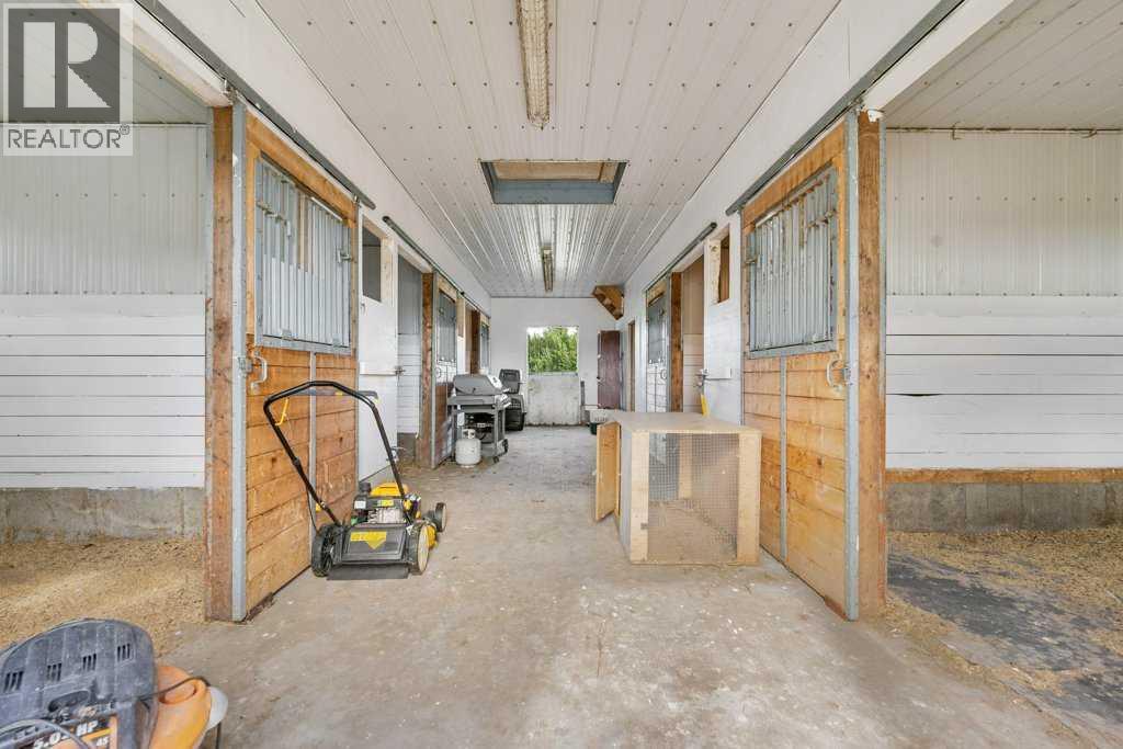 Welcome to this remarkable 24-acre hobby farm tucked away on a private road along the WID Canal, a property that perfectly blends country living with modern comfort and is ideal for horse enthusiasts, hobby farmers, or anyone seeking a lifestyle rich in space, privacy, and connection to the land; horse lovers will appreciate the 38 x 30 barn complete with power, five stalls, a tack/feed room with water hydrant, and a huge loft, plus a large equipment storage shed, while the land is thoughtfully divided into multiple paddocks with auto water and barbless wire, making it safe and functional for animals. The extensively renovated home is filled with natural light and designed for both comfort and style, featuring a spacious living room with fireplace, a large dining room, and a chef’s kitchen equipped with a six-burner gas stove, stainless steel appliances, eating bar, and pantry, with a convenient mudroom/laundry combination and two-piece bath completing the main level. Upstairs offers a retreat-like primary suite with ensuite bath, two additional bedrooms, a sitting area and a fully renovated main bathroom. The lower level adds even more lifestyle flexibility with a large recreation room, office, and generous storage. All is enhanced by updates including slate flooring on the main, luxury vinyl plank on upper and lower levels, new siding, and shingles (2017), plus an attached double garage; outside, step into your own private paradise on 1.5 landscaped acres where mature trees frame a stone patio, hot tub, and pergolas, creating an ideal setting for relaxing or entertaining, and don’t miss the insulated chicken palace that adds even more charm to this unique property offering the tranquility, space, and lifestyle of country living at its best. (id:53676)