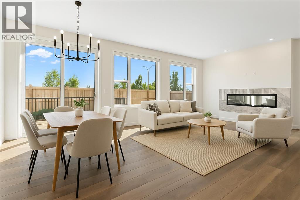 From the moment you step inside the Elbow by Cedarglen Homes, you feel it—this is a home designed for connection, comfort, and possibility. With over 2300 square feet of thoughtfully crafted living space, every detail balances style and function for the way modern families live today. The main floor welcomes you with an open flow that makes gathering effortless. At the heart of the home, the kitchen anchors the space with its striking two-toned cabinetry—bright white along the perimeter contrasted by a bold, dark island that doubles as a casual dining hub. Sleek black hardware, upgraded quartz countertops, and a central island invite conversation while meals are prepared. As the buyer of this home, you'll get to choose your own appliances at the builder's supplier with an allowance of $8954. Just beyond, the great room glows with the warmth of an upgraded fireplace tile feature, while the dining nook spills seamlessly onto the deck—perfect for summer nights spent entertaining under the stars. What sets this home apart is the versatility of a main-floor bedroom tucked just off the foyer. Whether for overnight guests, aging parents, or as a private home office, it offers comfort and convenience rarely found at this price point. A nearby powder room completes this welcoming main level, with the front-attached garage adding everyday practicality. Upstairs, the layout shines for family living. The primary suite is a retreat all its own, privately positioned at the back of the home with a spa-inspired ensuite featuring dual sinks, a walk-in shower, and a generous walk-in closet. Two additional bedrooms at the front share a full bathroom, while a central bonus room creates a flexible hub for movie nights, homework, or quiet reading. Laundry is also upstairs—exactly where you need it most. The basement is unfinished with a side entrance - waiting for your creative touch. Set in the prestigious community of West Grove Estates in Calgary’s West District, this home pairs timel ess design with an address that truly elevates your lifestyle. Tree-lined streets, nearby parks, and top-rated schools create a sense of community, while shopping, dining, and easy access to downtown or the mountains make every day more convenient—and more inspiring. With finishes like warm luxury vinyl plank on the main floor, cozy carpet upstairs, and designer accents throughout, the Elbow is built not just to live in, but to grow into—a place for milestones, memories, and everything in between. Don’t just imagine the lifestyle—come experience it. The Elbow at West Grove Estates is ready to welcome you home. *Some photos are virtually staged.* (id:53676)