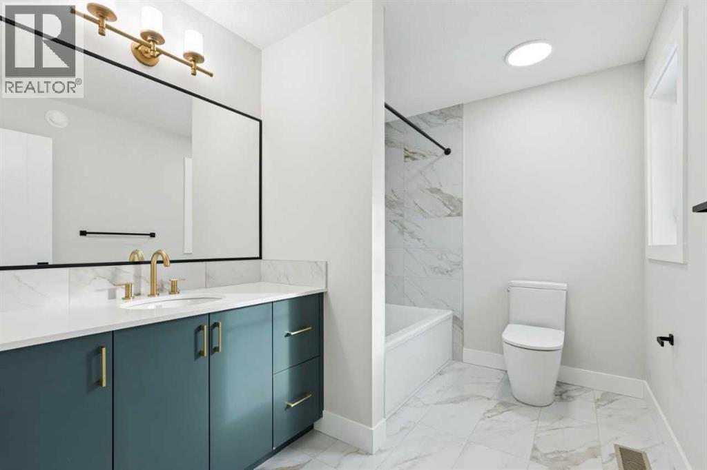 Welcome to The Emerald in Glacier Ridge, a move-in-ready quick possession by Shane Homes with thoughtful upgrades throughout. This custom build features a walkout basement, full deck, and oversized windows that bring in exceptional natural light.The main floor offers a gourmet kitchen with upgraded appliances, a separate spice kitchen, full bathroom, and a flex room ideal for a home office or guest space. The garage is roughed in for a potential future heater, adding everyday practicality.Upstairs, enjoy a vaulted bonus room with skylight, two well-sized bedrooms, and a private owner’s bedroom complete with a 5-piece ensuite and walk-in closet. Both secondary bedrooms include walk-in closets, and a dedicated laundry room completes the upper level.The walkout basement includes a separate entrance and rough-ins for potential future development, offering strong long-term flexibility for growing families.A well-designed home in a growing NW community, ready for immediate possession. Photos are representative. (id:53676)