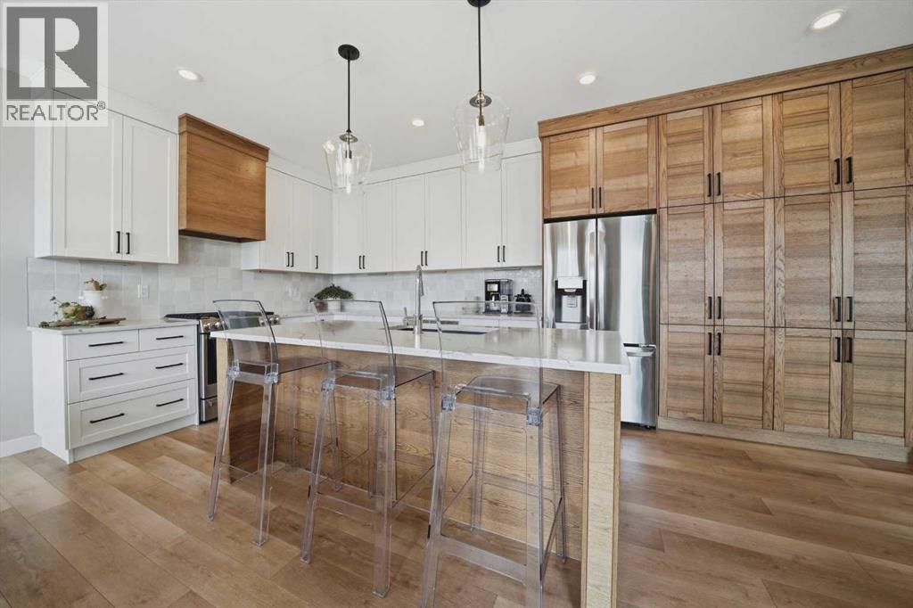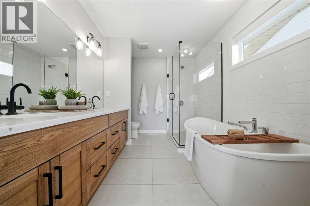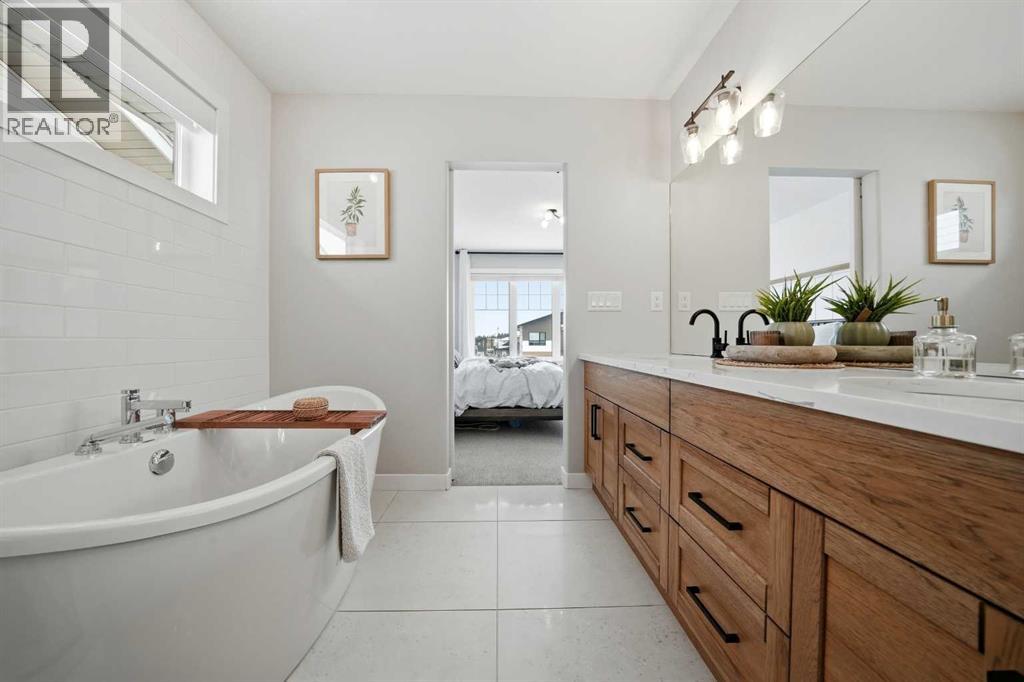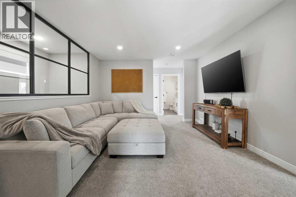 Step into this beautifully designed two-storey family home featuring a fresh, modern layout that blends comfort, style, and everyday practicality. Thoughtfully planned with spacious living areas and contemporary finishes, this home offers the perfect setting for growing families and effortless entertaining. A welcoming composite front porch leads into a spacious foyer complete with a walk-in closet for everyday convenience. The main floor features a bright, open-concept design highlighted by 9-foot ceilings and oversized triple-pane windows that fill the space with natural light. A sleek linear gas fireplace anchors the living area, creating a warm and inviting atmosphere. The kitchen is both elegant and practical, offering upgraded appliances including a gas range, quartz countertops, a built-in pantry, and a large central island—ideal for cooking, casual dining, or gathering with friends and family. Step outside to the impressive northwest-facing covered composite deck perfect for summer enjoyment. The fully fenced and landscaped yard offers plenty of space to relax and entertain, complete with a concrete pad for your BBQ and smoker station. Upstairs you’ll find four generously sized bedrooms, including a spacious primary retreat featuring a walk-in closet and a spa-inspired ensuite with a soaker tub, dual vanities, and a large shower. A convenient upper-level laundry room, three additional bedrooms, and a bonus room that provides flexible living space for the whole family. The basement is 90% complete and already includes a large recreation room, offering even more room to spread out. A bathroom has been framed and plumbed and is ready for finishing—an excellent opportunity to add value and customize to your needs. This home delivers modern comfort, thoughtful design, and plenty of space both inside and out—ready for your family to move in and enjoy. Garage is heated and this home also has A/C. (id:53676)
