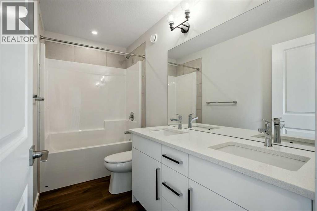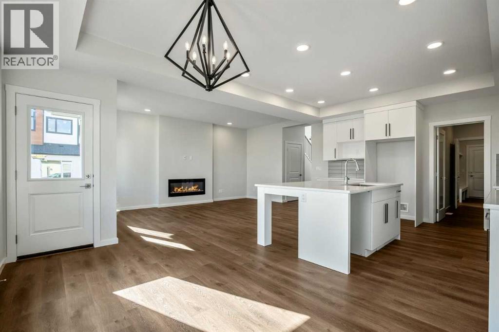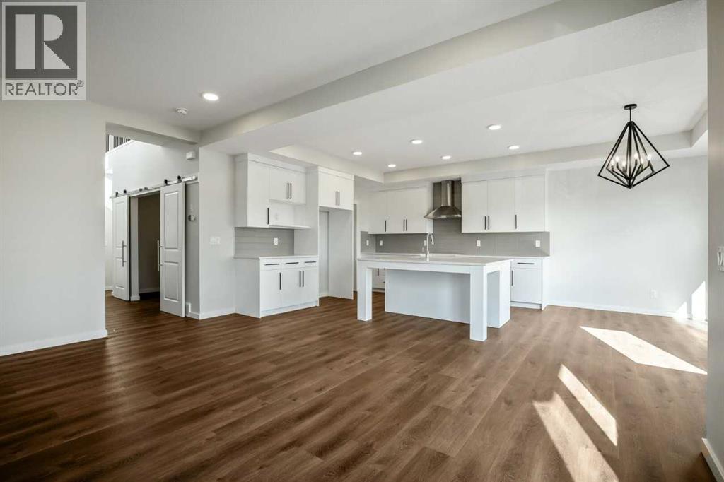 This Remi Model by Bedrock homes is situated on a beautiful corner lot with Mountain views! This model features a welcoming front foyer with open to above, a central flex room on the main floor, and a walk-through mudroom and pantry leading straight to the designer kitchen. The kitchen features coffered ceilings for an elegant feeling with a large island that opens up to the dining area and great room, great for a gathering space! The open to above staircase will lead you upstairs to find two secondary bedrooms with a full bathroom at the front of the home, a central bonus room, laundry, and a large primary suite. Last but not least primary bedroom features a spacious four-piece ensuite with a water closet, dual vanities, and a soaker tub, and conveniently leads straight to the large walk-in closet. Photos are representative. (id:53676)