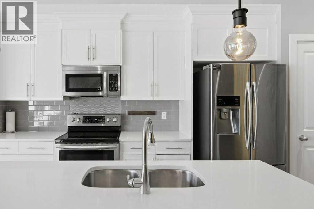 Introducing a stunning 2-storey townhome in the highly coveted community of Heritage Hills. This home exemplifies modern sophistication, convenience, thoughtful design, and a superb location, making it an extraordinary opportunity for discerning homeowners. Step inside and experience the elegance of this open-concept floor plan, featuring soaring 9-foot ceilings on the main level, complemented by luxury vinyl plank floors. The upgraded chef’s kitchen boasts premium stainless-steel appliances, quartz countertops, and striking cabinets, creating an inviting space for culinary creativity. The spacious family room seamlessly opens to the back yard which backs directly onto a green space, perfect for relaxation and entertaining. These sellers tell endless stories about all the mule deer that visit on a consistent basis – what an incredible location. On the upper level, you will find two children’s rooms, the main four piece bathroom, the upper laundry and the upper loft which is an absolutely perfect homework station for the kids. The oversized primary suite is nothing short of a retreat, offering a walk-in closet and a fully equipped ensuite featuring quartz counters and a huge shower for ultimate comfort. The unfinished basement could be easily developed and is ready to go with the large egress window and roughed in plumbing. This home also includes a fully drywalled single detached garage adding practicality and value. The front and back yards are designed for low-maintenance living with gorgeous landscaping out front and an entertainers dream deck off the back. Heritage Hills is renowned for its accessibility and vibrant community life. Residents enjoy a pathway system that not only surrounds this cul-de-sac but also weaves through Heritage Hills. This neighborhood offers everything you need within reach, including shopping, education, recreation and being on the west side you are way ahead of the traffic when headed to the mountains for a family getaway. Don’t miss the chance to make this spectacular home your own. Schedule your viewing today and discover the perfect blend of an Unbeatable Location, Contemporary Design and Move in Ready Convenience. (id:53676)