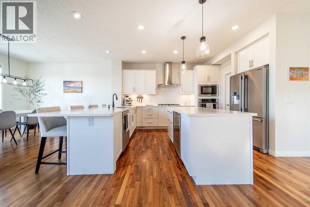 Discover unparalleled living in this stunning two-story fully finished walk out home, ideally situated on a west-facing lot with mountain views from every floor, in the highly sought-after community of Sunset Ridge, Cochrane. Boasting over 2500 square feet of meticulously designed living space, this residence offers breathtaking views of the majestic mountains and rolling foothills, promising a lifestyle of serenity and convenience. Step inside and be greeted by an updated gourmet kitchen, a culinary enthusiast's dream, featuring premium appliances, ample counter space, and stylish finishes perfect for entertaining. The expansive living room provides a welcoming atmosphere for family gatherings and relaxation, bathed in natural light. The second floor is a haven of comfort, offering three generously sized bedrooms, ensuring ample space for every family member. A versatile bonus room provides endless possibilities, from a home office to a media room or play area. The luxurious master ensuite is a true retreat, offering a spa-like experience with its spacious layout and modern amenities. The fully finished walk out basement adds significant value and functionality, the fully finished walk-out basement is an incredible asset. This versatile space includes a comfortable bedroom, a dedicated office for remote work or study, a spacious living room perfect for extended family or guests, a convenient three-piece bathroom, and a practical kitchenette and laundry hookups making it ideal for a multi-generational living, or a nanny suite. This home has been thoughtfully maintained and upgraded, ensuring peace of mind for the new owners. A fresh coat of paint throughout in 2024 gives the interior a contemporary feel. New toilets, a new hot water tank, and a brand-new air conditioning system, all installed in 2024, contribute to the home's efficiency and comfort. The west-facing backyard is a true highlight, offering unobstructed panoramic vie ws of the magnificent Rocky Mountains and the picturesque rolling hills. Imagine enjoying spectacular sunsets from your deck, perfect for outdoor dining, entertaining, or simply unwinding amidst nature's beauty. Sunset Ridge is a vibrant and family-friendly community known for its thoughtful design, extensive parks, multi-use trails, and convenient access to schools and local amenities. Enjoy the tranquility of small-town living with the convenience of being just a short drive from Cochrane's charming downtown and quick access to Calgary. The community also offers excellent recreational facilities and a strong sense of community.Don't miss the opportunity to make this dream home yours! (id:53676)
