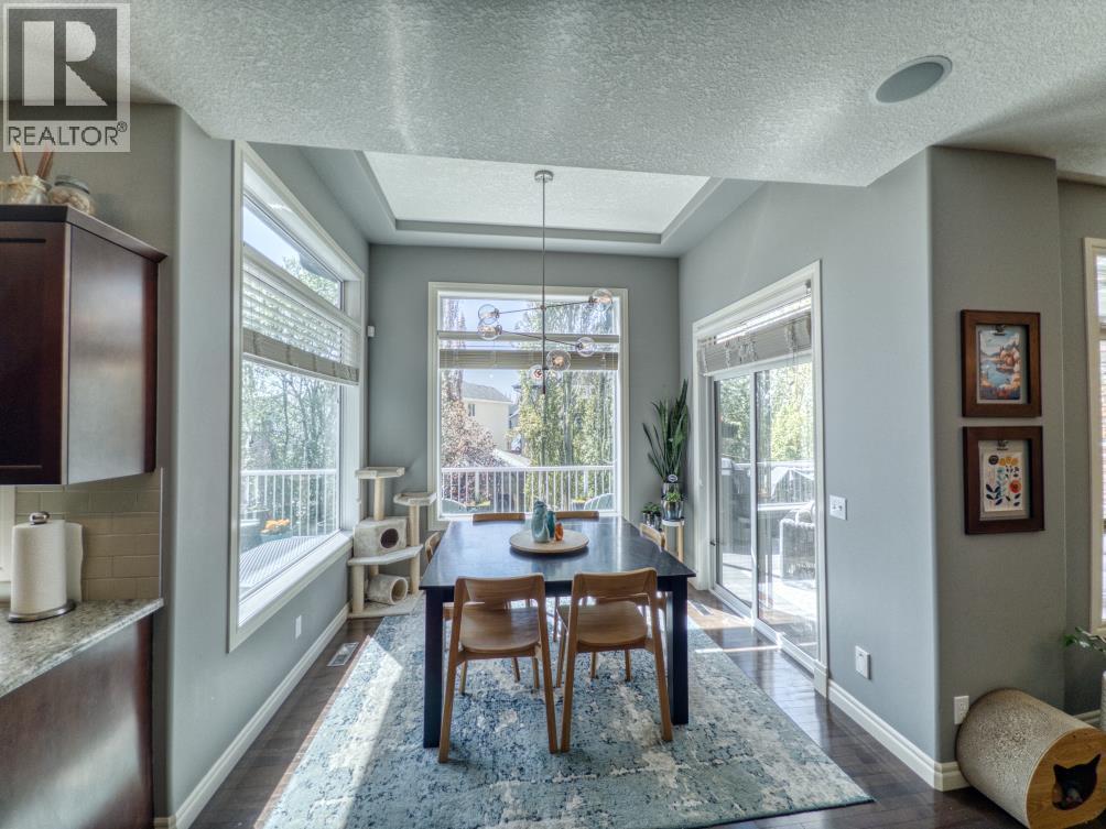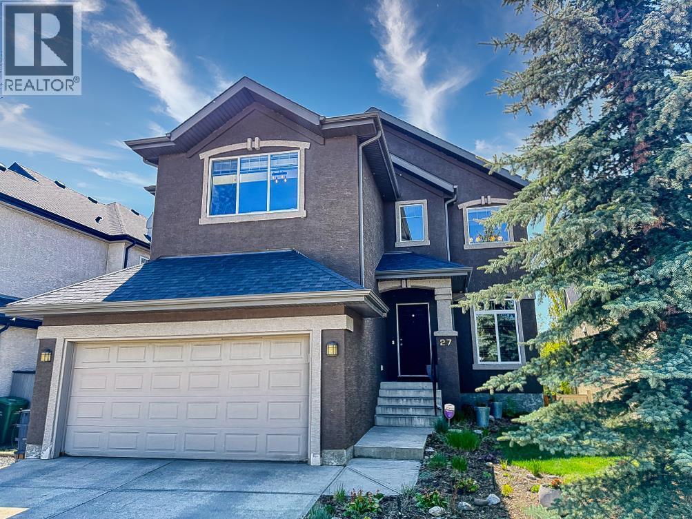Welcome to your dream home in Tuscany Estates-where every detail is designed for family living, effortless entertaining, and everyday luxury. With over 3,300 sq. ft. of beautifully finished space across three levels, this immaculate 4-bedroom walkout blends timeless elegance with thoughtful upgrades.Step inside and be greeted by rich hardwood floors, soaring 9' ceilings, and a flood of natural south- facing light. A grand central staircase anchors the main level, where a cozy front den offers the perfect space for a home office or playroom, warmed by a double-sided gas fireplace that flows into the bright, open living room. Next is the heart of the home, the spacious, well designed and appointed kitchen. Here, you'll find granite counters, dark-stained cabinetry, stainless steel appliances, a walk-through pantry, and a charming built-in desk area. The bright dining nook boasts 10' ceilings, oversized windows, and direct access to the expansive deck-ideal for morning coffee or sunset dinners under the pergola. The main floor laundry room offers cubbies for storage and leads into the double attached garage, which includes attic storage and a bike storage system. Upstairs, the primary suite is a private retreat, thoughtfully separated from the other bedrooms. It features a spacious walk-in closet, serene views, and a luxurious 5-piece ensuite that feels like your own personal spa. The sunny, skylit bonus room provides space for the whole family (and more), complete with two built-in desks. Two additional bedrooms, each with generous closet space, and a full bath complete the upper level. The fully finished walkout basement is made for family fun and weekend gatherings. It offers a large 4th bedroom with a walk-in closet, a stylish 3-piece bath, a spacious family room, and an incredible wet bar with built-ins and display cabinets. And just wait until you see the backyard-your own private playground oasis! Designed with both kids and relaxation in mind, it features a cu stom jungle gym-style obstacle course under the deck, a cozy patio seating area for shady lounging, and a family-sized Finnish sauna with heated rocks and warm cedar, complete with a foyer/changing area. The backyard is beautifully maintained and framed by mature trees, adding privacy and charm to the space. The property has an updated RPR with stamp of compliance. Located just a few minutes walk to Tuscany (French Immersion) and St. Basil elementary schools, playgrounds, and Tuscany's picturesque pathway system. In front of the house is easy access to the Tuscany LRT station from a direct local bus . This home truly has it all - spacious, stylish, and the kind of home a family can build years of memories. Don't miss this rare opportunity to get into the sought-after estate area of Tuscany! (id:53676)