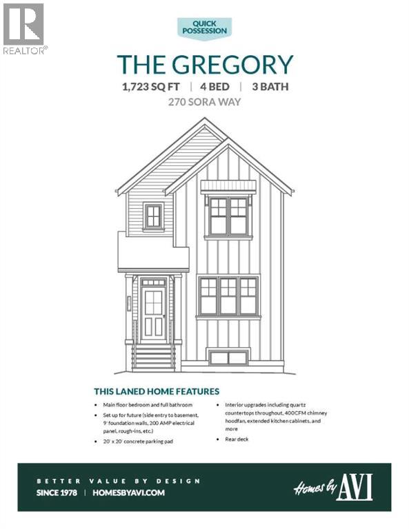 IF YOU’RE HOPING TO SETTLE IN BEFORE THE HOLIDAYS, THIS ONE MAKES IT SURPRISINGLY EASY. Immediate possession means the timeline isn’t theoretical—you can actually be living here while the rest of the city is still hunting for wrapping paper.The MAIN-FLOOR BEDROOM sets the tone for the entire home: thoughtful, flexible, and built for real life. With its own FULL BATHROOM just steps away, it works for visiting family, aging parents, or a dedicated office that doesn’t compete with the rest of the plan. From there, the main floor opens into a bright, grounded interior—9' CEILINGS, warm wood-tone vinyl plank, and a kitchen that gets the details right: full-height Oxford grey cabinetry, quartz countertops, a smoky stacked-subway backsplash, SILGRANIT UNDERMOUNT SINK, 400 CFM CHIMNEY HOOD FAN, and BUILT-IN MICROWAVE. The living room’s 50" ELECTRIC FIREPLACE feature wall gives the space a calm, modern anchor, and the open flow into the dining area makes both everyday routines and seasonal gatherings feel effortless.Upstairs, a CENTRAL BONUS ROOM creates separation between the master and the secondary bedrooms—so night owls, early risers, and winter-break sleepovers can peacefully coexist. The master steps things up with a RAISED CEILING HEIGHT, a bright walk-in closet, and an ensuite finished in soft, neutral tile. Laundry sits exactly where it should be—on the same floor as the clothes.A SEPARATE SIDE ENTRY, 9' foundation walls, a 200 AMP electrical panel, and thoughtful ROUGH-INS—FOR A BATHROOM, SECOND LAUNDRY, AND BAR/KITCHEN SINK—mean the basement isn’t just unfinished, it’s intentionally set up for the future. Whether that turns into multigenerational space, added living area, or long-term flexibility you can grow into, the groundwork is already done. Outside, the front yard is already sodded, and the 20' x 20' concrete parking pad is ready for a future garage while keeping parking simple now.Life in Sora puts you close to Stoney Trail, surrounded by new park s, playgrounds, and a growing list of amenities. It’s a community that’s still early in its story—making now a smart (and very convenient) time to arrive.And with possession available right now, you can be in—and settled—before the holidays even start. BOOK YOUR SHOWING TODAY! • PLEASE NOTE: Kitchen appliances are included, and will be installed prior to possession. Photos are of a DIFFERENT Spec Home of the same model – fit and finish may differ. Interior selections and floorplans shown in photos. (id:53676)
