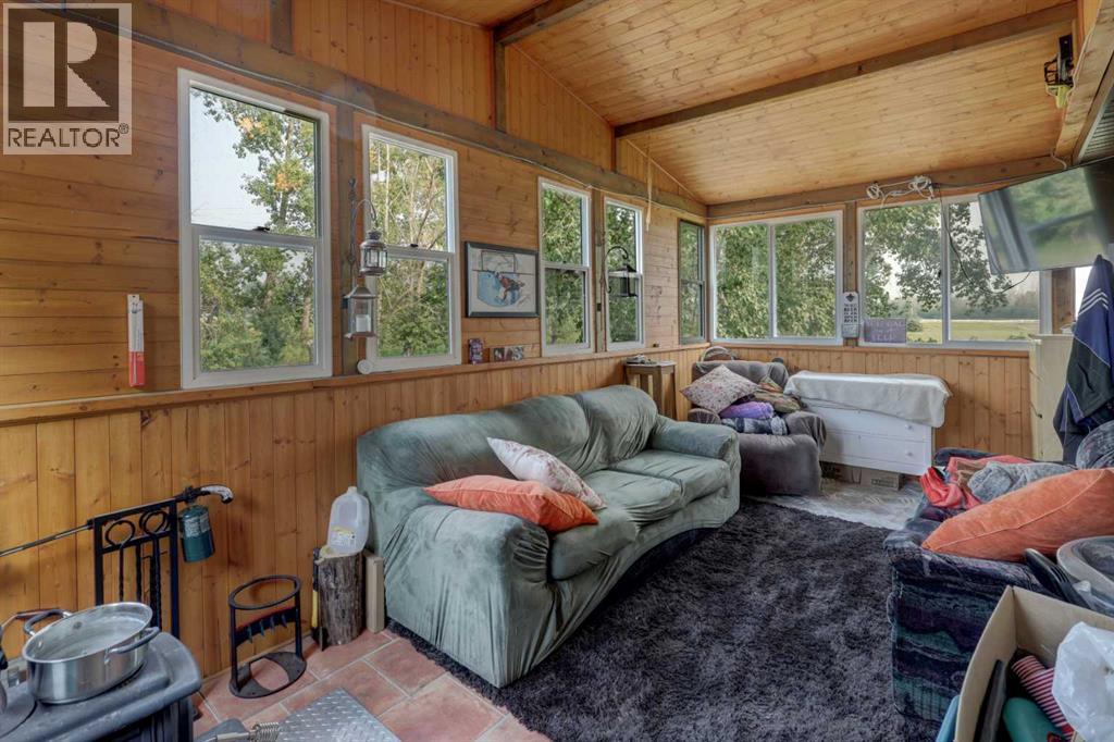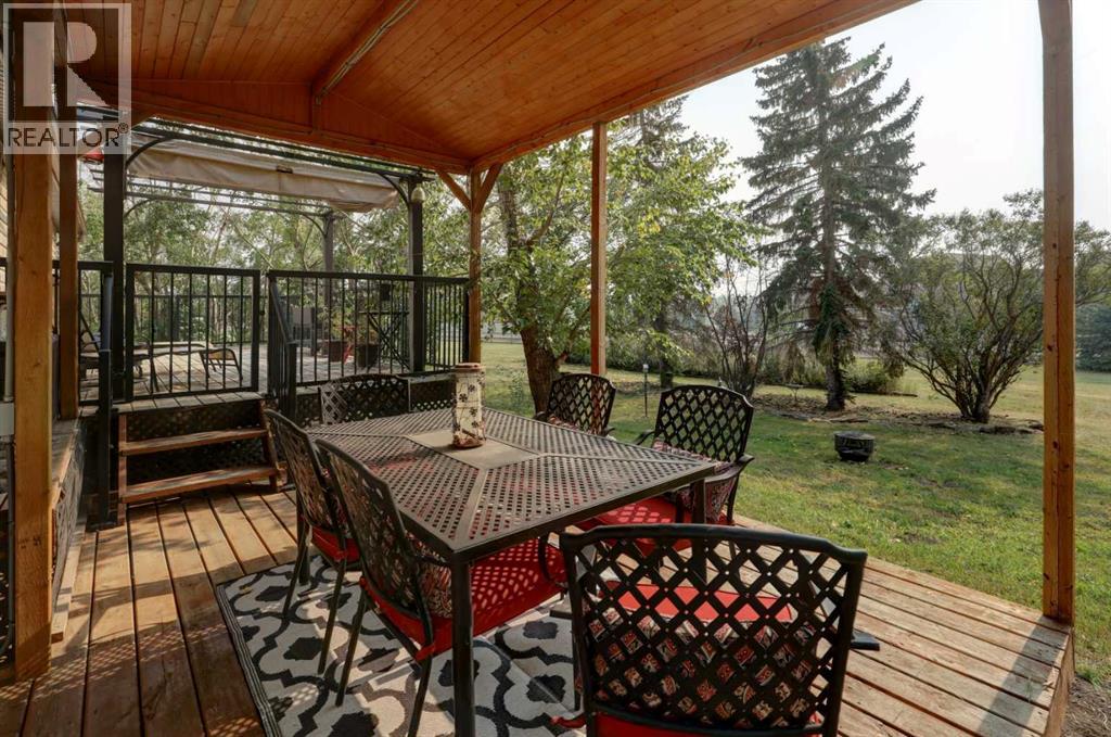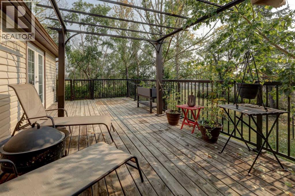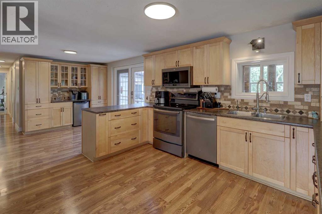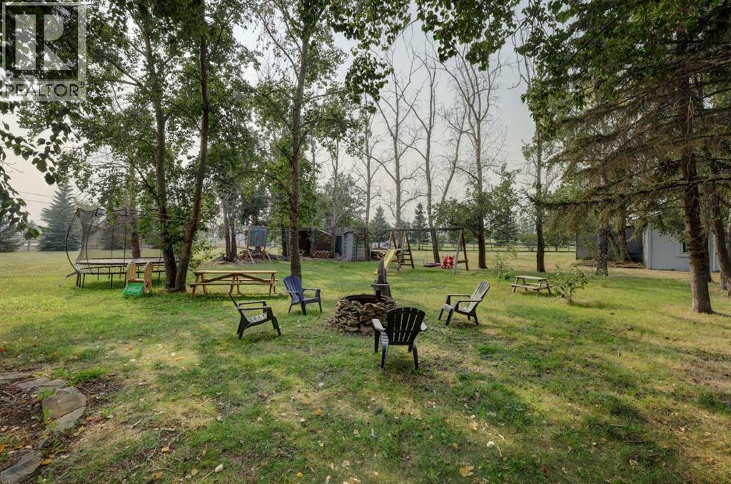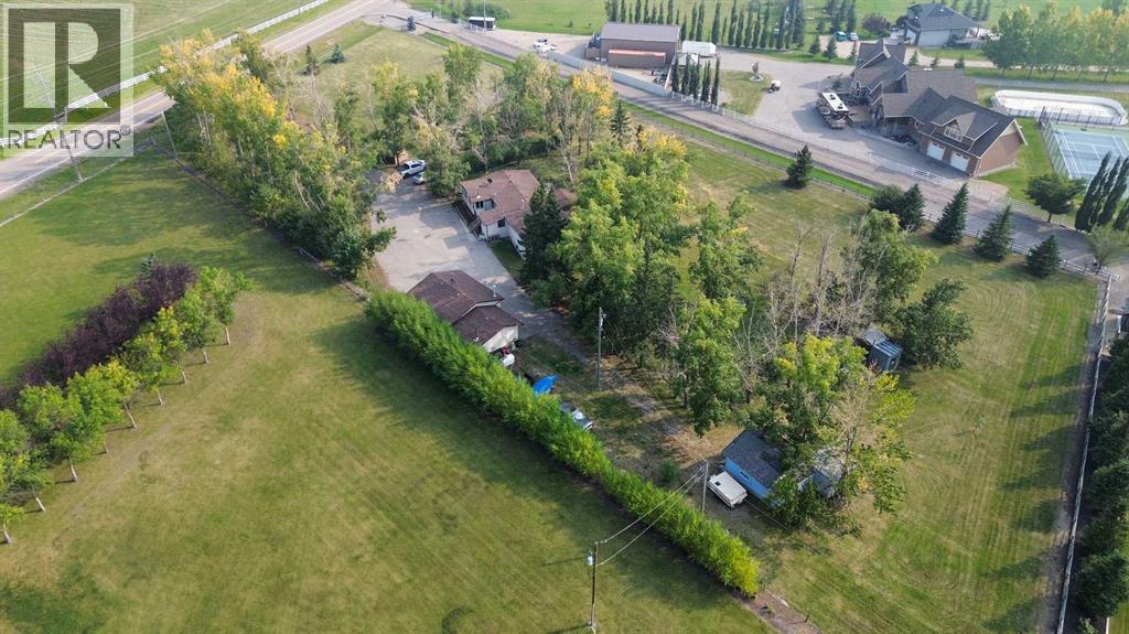 Bring your family to this 2.74 acre parcel - country living in the city w/ pavement to your door. This property is part of the city of Airdrie but is still taxed at the Rockyview County rate. You are quite literally a 3 minute drive to No Frills & the east side of Airdrie from this home. This home has had some renovations over the years & has a MASSIVE EAT IN KITCHEN, tons of BUILT INS inc desk/work area & CHINA CABINETS. Maple cabinets w/CROWN MOULDING & upgraded backsplash lend to the country feel. There are 3 large bedrooms upstairs (plenty of room for a queen sized bed in each of the secondary bedrooms) & a spacious primary suite w/ 3 pc ensuite. Plenty of light in the primary w/the south windows & a door off of the west side of the room. Plumbing & light fixtures have also been upgraded & durable laminate floors are kid and pet friendly. The main floor boasts 1546 sq ft w/another 187 sq ft sunroom complete w/WOOD BURNING FIREPLACE. The bsmt is fully finished w/a large rec rm space, guest room space (WINDOW DOES NOT MEET EGRESS), gaming space, gorgeous bath & storage. Outside the kids will be thrilled - SO MUCH SPACE TO PLAY! Numerous outbuildings provide lots of storage & the TRIPLE HEATED DETACHED GARAGE (940 sq ft) is perfect for parking & storage as well. The MASSIVE SOUTH FACING deck, NEWER SEPTIC TANK (2017) & NEWER WINDOWS add to the value & MATURE TREES make this the whole package. (id:53676)