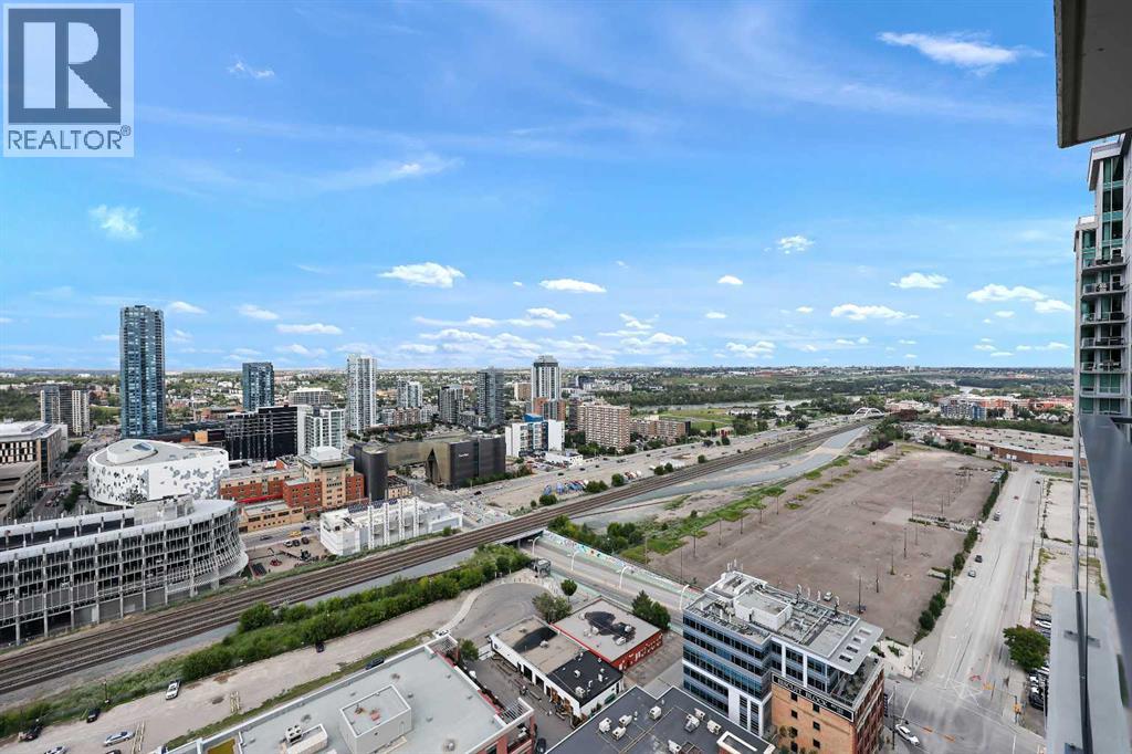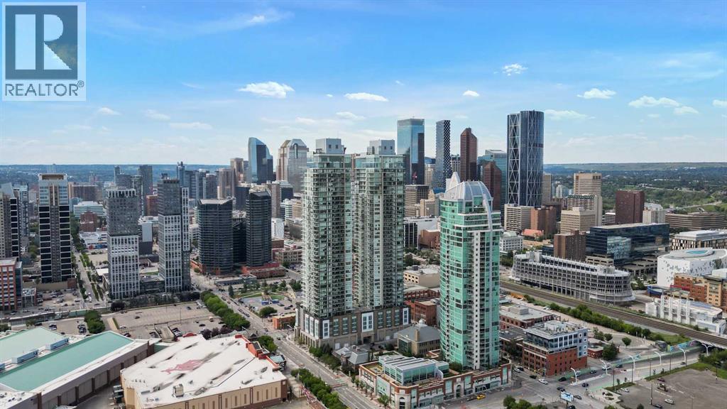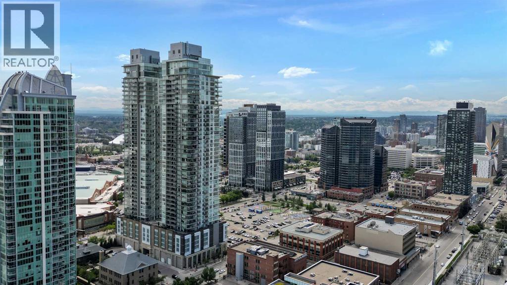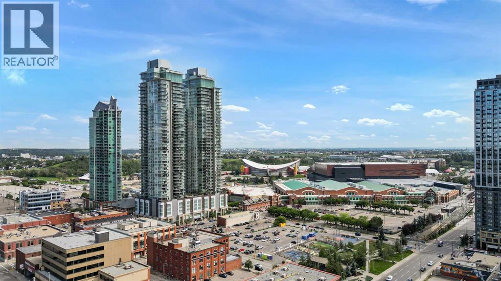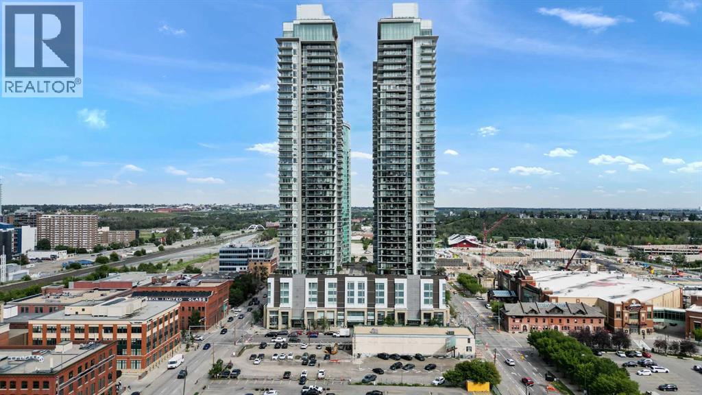 Experience elevated living in this spectacular 2-bedroom, 2-bathroom corner unit located on the 27th floor of The Guardian—Calgary’s tallest residential tower. Perfectly positioned in the vibrant and historic community of Victoria Park, you’re just steps from the Saddledome, Stampede Park, Studio Bell, the new Central Library, and the best of downtown living.This luxury condo offers unbeatable panoramic views of downtown Calgary, the Bow River, East Village, and Stampede Park through floor-to-ceiling windows that flood the space with natural light. The open-concept living and dining area is perfect for entertaining, while the custom Italian Armony Cucine kitchen showcases sleek quartz countertops, a full-height glass backsplash, and high-end stainless-steel appliances.The dreamy primary suite features custom-built-in closets, stunning city and river views, and a spa-like 4-piece ensuite. A scustom-built-in second spacious bedroom, full guest bathroom, and in-suite laundry complete the thoughtfully designed layout.Additional highlights include luxury finishings throughout, an oversized balcony, titled underground parking, and a separate storage locker. Residents enjoy access to exceptional amenities: a fully equipped fitness facility, yoga studio, social lounge with outdoor terrace, workshop, and the peace of mind of full-time concierge and security.Whether you're a professional, an investor, or someone who appreciates style and convenience, this is downtown Calgary living at its absolute finest. (id:53676)