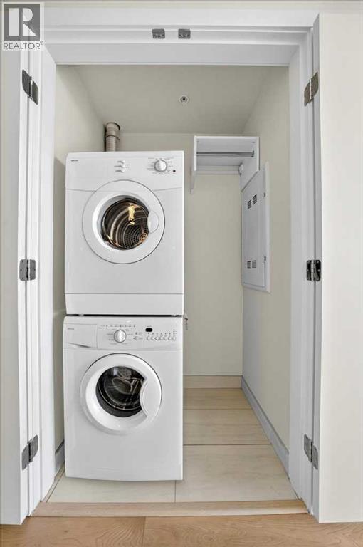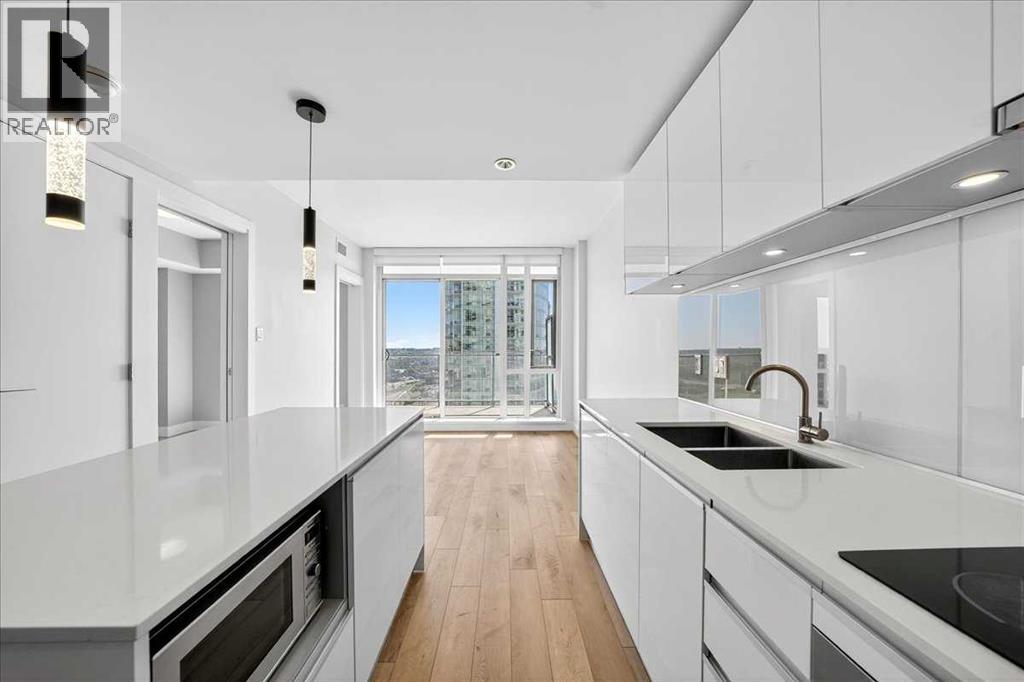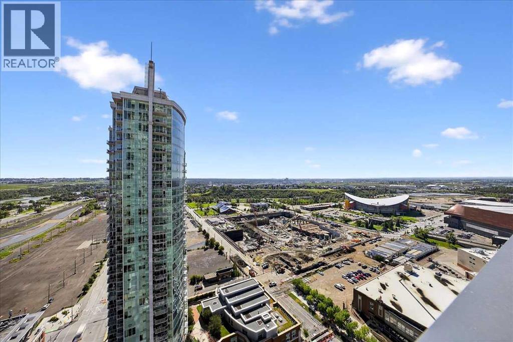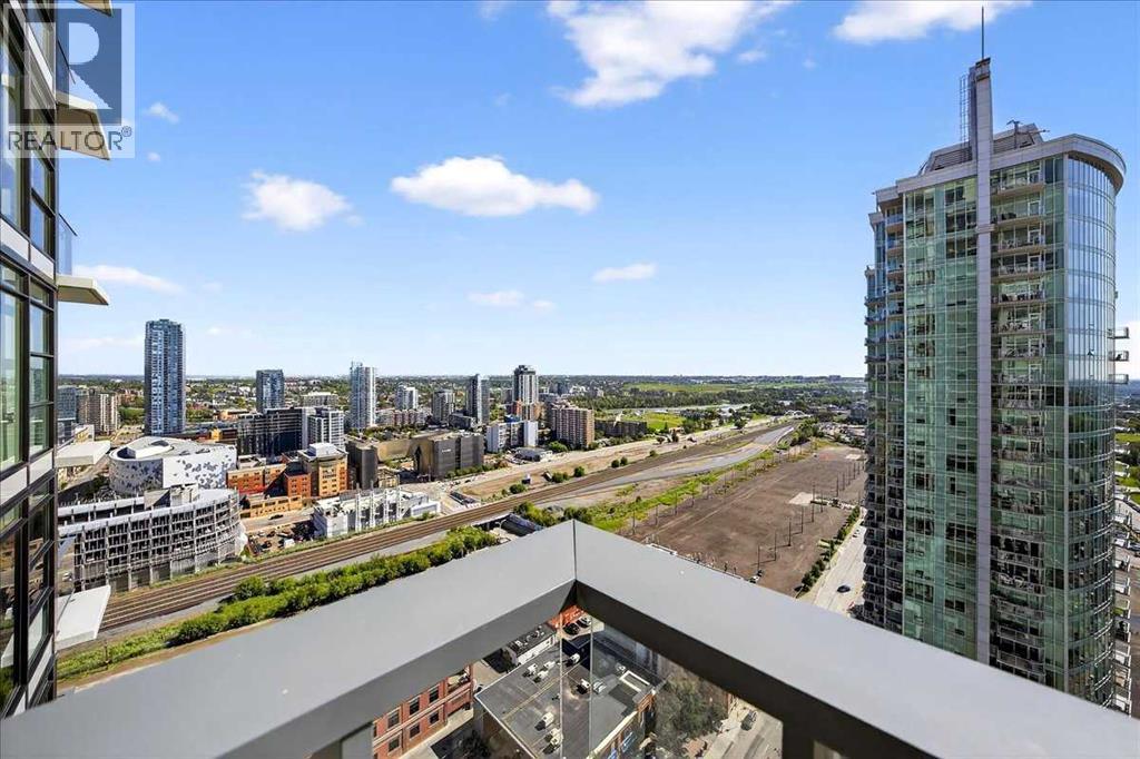 Welcome to The Guardian – Calgary’s tallest residential tower, located in the vibrant Beltline community. This 1-bed, 1-bath east-facing unit offers unobstructed morning sun and spectacular city views from the 27th floor through floor-to-ceiling windows.Recent upgrades include new luxury vinyl plank flooring throughout, fresh paint, and modern light fixtures, creating a bright and inviting atmosphere. The sleek Italian-designed kitchen features high-gloss cabinetry, quartz countertops, and a full suite of modern built-in appliances by Blomberg, Faber, and AEG.Enjoy coffee and sunrises on your private oversized balcony (150sqft), or wind down in the cozy living area that flows seamlessly from the kitchen. The spacious bedroom includes a walk-in closet with sliding doors for optimal light and space.Extras: In-suite laundry, 1 titled underground parking stall, and a separate storage locker.Building amenities include a fully-equipped gym, Residents' Lounge, and an outdoor terrace for group barbeques. The Guardian offers concierge and onsite security personnel overnight, professional management, and a low-maintenance lifestyle with condo fees covering water, sewer, snow removal, and more.Unbeatable location: Steps to Stampede Park, Saddledome, BMO Centre, Sunterra Market, Village Ice Cream, and some of Calgary’s best restaurants and cafes. Walk to Elbow River pathways, Central Memorial Park, or catch the C-Train at Victoria Park/Stampede Station (5 min walk) for easy downtown access. Quick access to Macleod Trail, 17th Ave, and Deerfoot Trail ensures effortless commuting.Whether you're a first-time buyer, investor, or looking for a stylish downtown pied-à-terre, this move-in-ready unit delivers value, convenience, and elevated urban living. (id:53676)