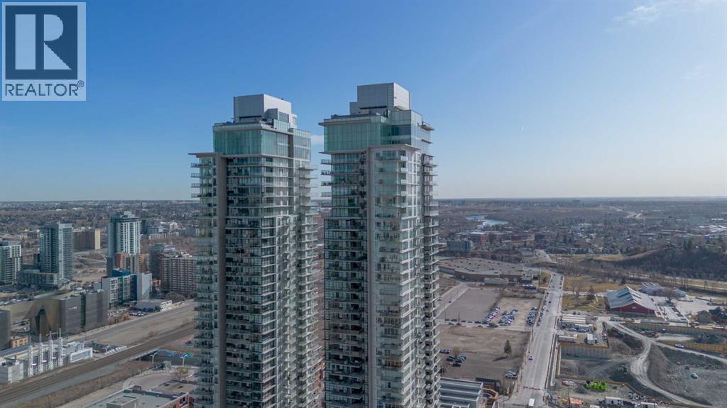 Step into the 27th floor of Calgary's iconic Guardian building and let the city energy fade into quiet luxury. Designed for the sleek, modern urbanite, this south-facing one-bedroom unit is flooded with natural light from floor-to-ceiling windows, highlighting crisp lines and a vibrant, airy atmosphere. While the southern exposure brings in incredible sunshine, central air conditioning ensures your high-rise sanctuary remains an oasis of cool comfort. You also get the distinct advantage of premium concrete soundproofing, keeping the space incredibly peaceful despite being right in the center of the action.The daily rhythm here revolves around the balcony. It is the perfect spot for your morning coffee, offering distant mountain views and a front-row seat to both sunrises and sunsets for the majority of the year. Inside, the highly efficient 504-square-foot footprint is intentionally designed to minimize upkeep and maximize your free time. The streamlined living and workspace areas encourage you to step outside and use the building’s massive suite of amenities as your extended lounge, or simply enjoy the ultimate lock-and-leave lifestyle. With a 24/7 security presence, peace of mind is a constant.When you are ready to explore, the best of the city is waiting right outside your lobby. You are highly connected, with seamless walkability to the nearby C-Train making commutes or trips to places like Heritage Park effortless. Spend your weekends walking along the Bow River pathways, grabbing everyday essentials at the nearby Superstore, or catching an event at the BMO Centre and the new arena district. This is high-elevation living anchored by Calgary's most dynamic cultural hubs. (id:53676)