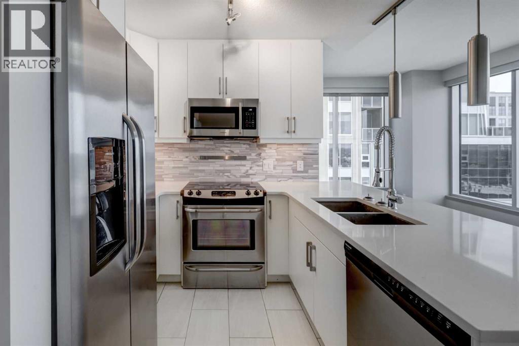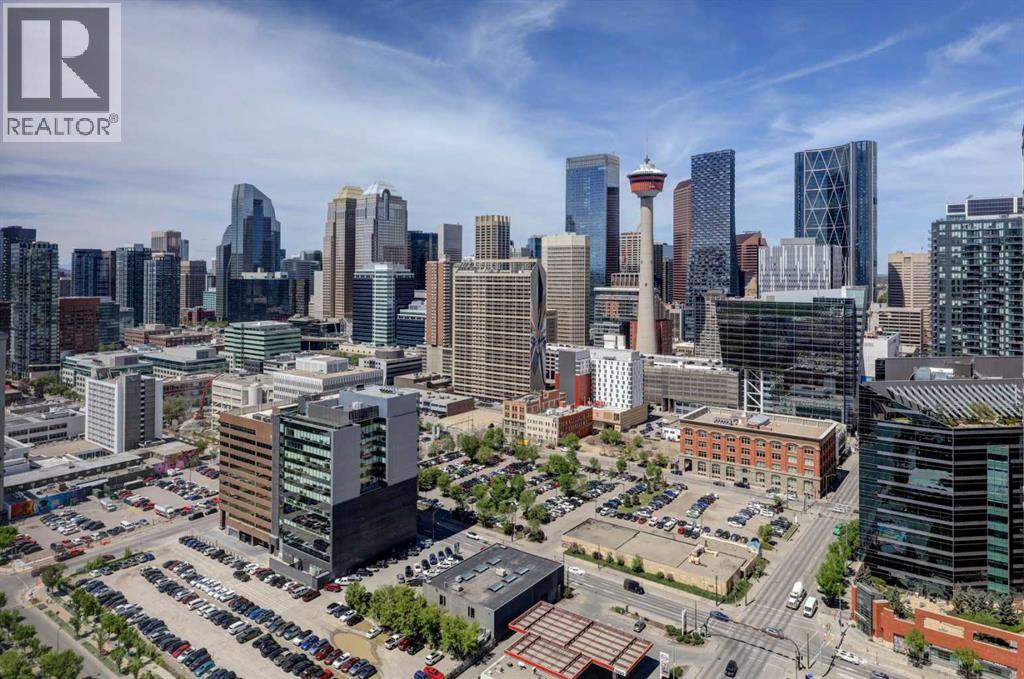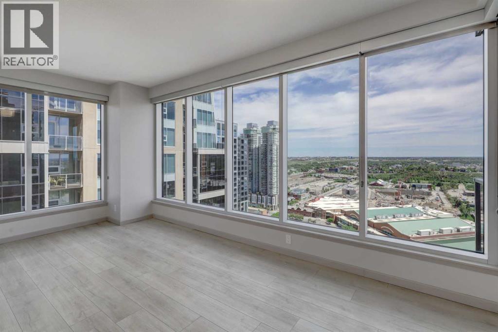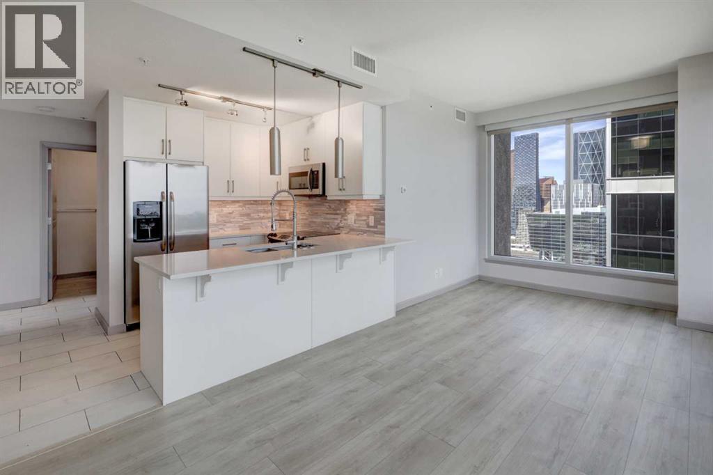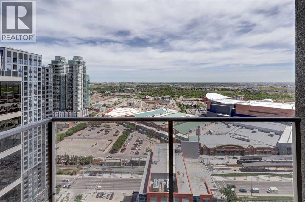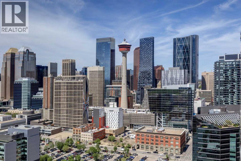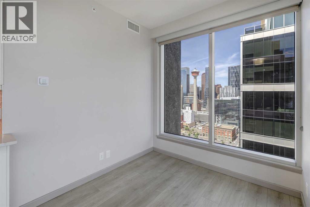 Experience Elevated Urban Living. 27 Floors Above the Heart of Downtown Calgary. Welcome to your sky-high sanctuary in one of Calgary’s most sought-after downtown addresses. Perched on the 27th floor, this 2-bedroom, 2-bathroom condo offers breathtaking panoramic views of the city skyline through floor-to-ceiling windows—an ever-changing backdrop of urban energy and stunning sunsets. Designed for comfort and sophistication, the windows are professionally tinted for added privacy and temperature control, while custom blackout blinds ensure restful nights whenever you need them. The sleek, modern interior features wide plank vinyl flooring, a spacious comfortable layout, and refined finishes throughout, creating a stylish canvas to suit your lifestyle. The kitchen flows effortlessly into the living area, perfect for entertaining or relaxing with a view. Each bedroom offers its own retreat, with the primary suite including a private ensuite and walk in closet. The second full bathroom is equally well-appointed and ideal for guests or roommates. Enjoy the convenience of in-suite laundry, secure building access, and everything you need just steps from your front door. Live where the city comes alive—restaurants, nightlife, cafes, the river path, and office towers are all within walking distance. Whether you're a young professional seeking the ultimate work-live-play location or simply craving an elevated urban lifestyle, this residence delivers luxury, convenience, and unmatched skyline views from sunrise to nightfall. This is more than a condo—it’s your window to the best of Calgary. (id:53676)
