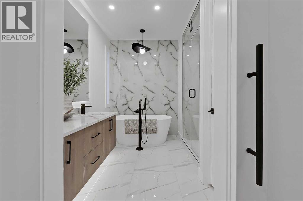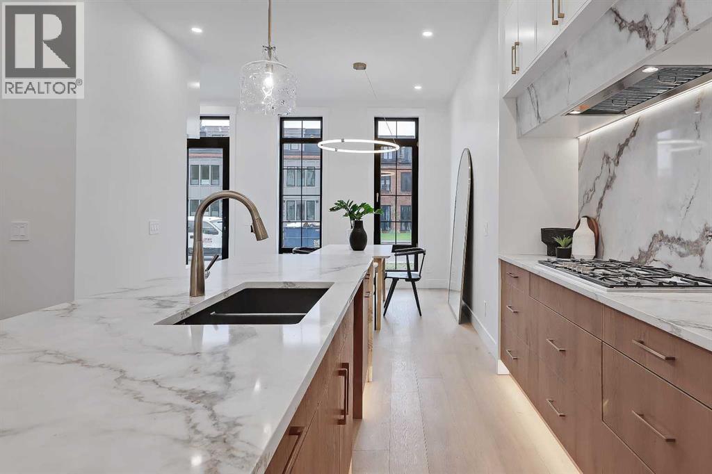 Welcome to a home where sophistication meets functionality in one of Calgary’s most sought-after inner-city communities – West Hillhurst! Set on a SOUTH-FACING lot, this stunning NEW BUILD is designed to impress with its modern architecture, thoughtful layout, & high-end finishes. Step inside & experience a bright, open-concept main floor that feels both inviting & luxurious. The heart of the home is the designer kitchen – a true showpiece featuring a massive waterfall island w/ bar seating, extensive custom millwork, quartz countertops, a built-in pantry, & premium appliances, including a gas cooktop & built-in wall oven. A full-height backsplash, stylish pendant lighting, & sleek soft-close cabinetry complete the space. The nearby dining area is perfect for hosting, w/ room for a large table to gather friends & family. The living room is designed for both relaxation & entertaining, centred around a striking gas fireplace w/ a floor-to-ceiling surround that creates a bold statement next to the modern built-in media wall. Large sliding doors flood the space w/ natural light & open onto the rear deck, seamlessly blending indoor & outdoor living. A functional mudroom on the side of the home is equipped w/ a built-in bench, & an upscale powder room completes the main floor. Upstairs, the primary retreat is a sanctuary w/ soaring vaulted ceilings & not only an expansive walk-in closet but a stylish built-in wardrobe & shelving in the main area for additional convenience. The spa-inspired ensuite features a STEAM SHOWER, a freestanding soaker tub, dual vanities, & heated floors. Two additional JUNIOR SUITES are well-sized, & each has a beautifully finished ENSUITE w/ walk-in showers, while a full-size laundry room w/ built-in cabinetry & sink adds everyday convenience. The lower level offers incredible flexibility w/ a fully self-contained 2-BED LOWER LEGAL SUITE (Approved & subject to final inspection by the city), complete w/ a modern kitchen, spacious living area, ded icated laundry, & a private entrance. Whether you use it for revenue generation, a mother-in-law suite, or a nanny suite, this space offers endless possibilities! Or, it can function as an extension of the home, providing a fantastic rec room, home gym, or media space. West Hillhurst is one of Calgary’s most desirable inner-city neighbourhoods, offering a vibrant community feel w/ unbeatable access to amenities. You’re just minutes from downtown, Kensington’s boutique shops & restaurants, & the beautiful Bow River pathways. Enjoy morning coffee at Vintage Caffeine Co., brunch at Dairy Lane Café, or take a quick stroll to nearby parks, green space & recreation facilities – like the Helicopter Park that’s just at the end of the street! Top-rated schools, SAIT, the University of Calgary, & Foothills & Children’s Hospitals are all close by, w/ easy access to major roadways for a seamless commute. Call your favourite agent today! (id:53676)