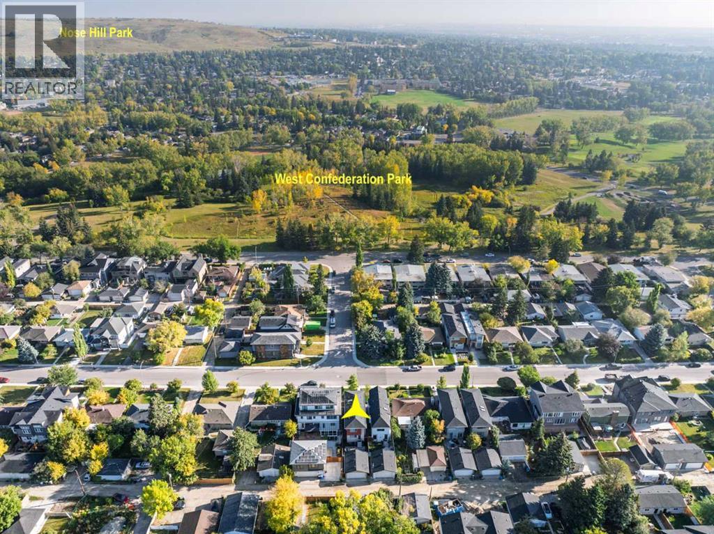 This beautifully maintained detached family home is perfectly situated in the highly desirable community of Banff Trail, just steps away from the year-round amenities of West Confederation Park. With access to scenic biking and walking paths, a golf course, tennis courts, splash park, pump track, natural playground, and seasonal activities like tobogganing and cross-country skiing, the location offers something for everyone. Thoughtfully designed for both comfort and function, this spacious two-storey residence features bright and inviting living spaces throughout. The main level showcases an open-concept layout filled with natural light from floor-to-ceiling windows, anchored by a double-sided fireplace that adds warmth and separation between the expansive living room and the elegant dining area. The kitchen boasts quartz countertops, stainless steel appliances including a one-year-old induction range, a large island, and a window overlooking the south facing backyard. A modern two-piece powder room completes the main floor. Upstairs, the primary suite is a true retreat, offering a large walk-in closet, a four-piece ensuite with double sinks and walk-in shower, and stunning park views through an oversized window. Two additional bedrooms share a stylish four-piece bathroom, while a convenient upstairs laundry room adds to the thoughtful layout. The fully developed basement extends the living space with a spacious recreation room, a generous fourth bedroom, and a three-piece bathroom—ideal for guests or extended family. Step outside to enjoy the sunny, south-facing backyard complete with a private patio perfect for outdoor dining and relaxation. An oversized double detached garage provides plenty of storage and parking. With nothing left to do but move in, this exceptional inner-city home offers unbeatable access to downtown, the University of Calgary, SAIT, Foothills and Children's Hospitals, all levels of schooling, and a wealth of community amenities. (id:53676)