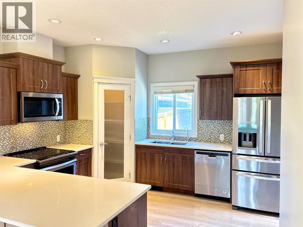 Welcome to this wonderful family home in the friendly community of Ravenswood, ideally located just across the street from Heloise Lorimer School and only minutes from major shopping. From the moment you enter, a spacious foyer opens to an inviting main floor where the bright living room fills with natural light and flows into a comfortable dining area and a beautiful kitchen featuring a large island and corner pantry. It’s the perfect setting for everyday living and family gatherings plus half bathroom. Upstairs offers three bedrooms, including a cozy master retreat with its own full ensuite and walk-in closet, along with two perfectly sized bedrooms, another full bathroom, and the convenience of upper-floor laundry. The finished basement expands your living space with a warm family room, an additional bedroom, and another full bathroom, providing plenty of room for everyone. Step outside to enjoy a sunny deck for summer evenings and a double garage for added comfort and ease. This home truly combines warmth, space, and location—an ideal place for your family to grow. (id:53676)