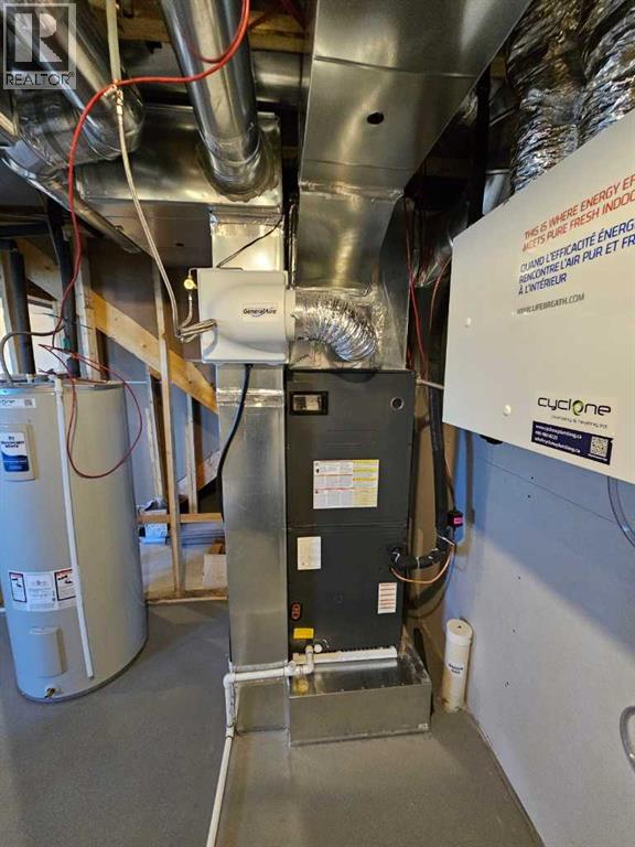 NET-Energuide ZERO Home in Airdrie's Bayside Estates, now for sale. This 2313 ft2 two story home is loaded with energy efficiency essentials, and rear attached garage. Blower Door Tested at just 0.74 Air Changes/Hour! 2" Rigid foam insulation from footing to the floor above on the foundation wall, 2x6" basement walls with R-22 batt insulation. Spray foam insulation under the concrete basement floor, and 2.0lb in between all joist ends. All walls above grade are double 2x4" walls, almost 9" thick of insulation! Attic insulation is R-60, with high heel trusses, to get that insulating value right out over the walls. Low flow plumbing ensure the least amount of water use possible. 200Amp panel with EV rough-in. 9.48KW, 24 Solar Panels generating power to the grid, and lessening the amount of power required from the grid. Two Electric furnaces controlled by two Amana Smart Thermostats attached to two separate heat pumps, and Heat Recovery ventilator. Great location, great home, low energy use. Seller may consider a rent to own. (id:53676)