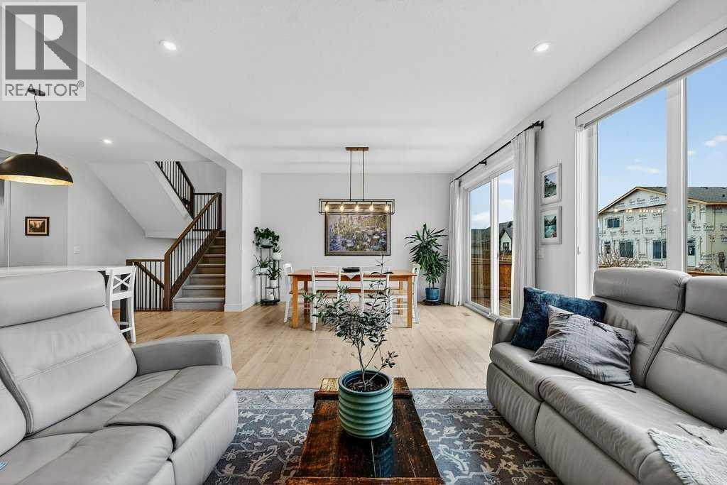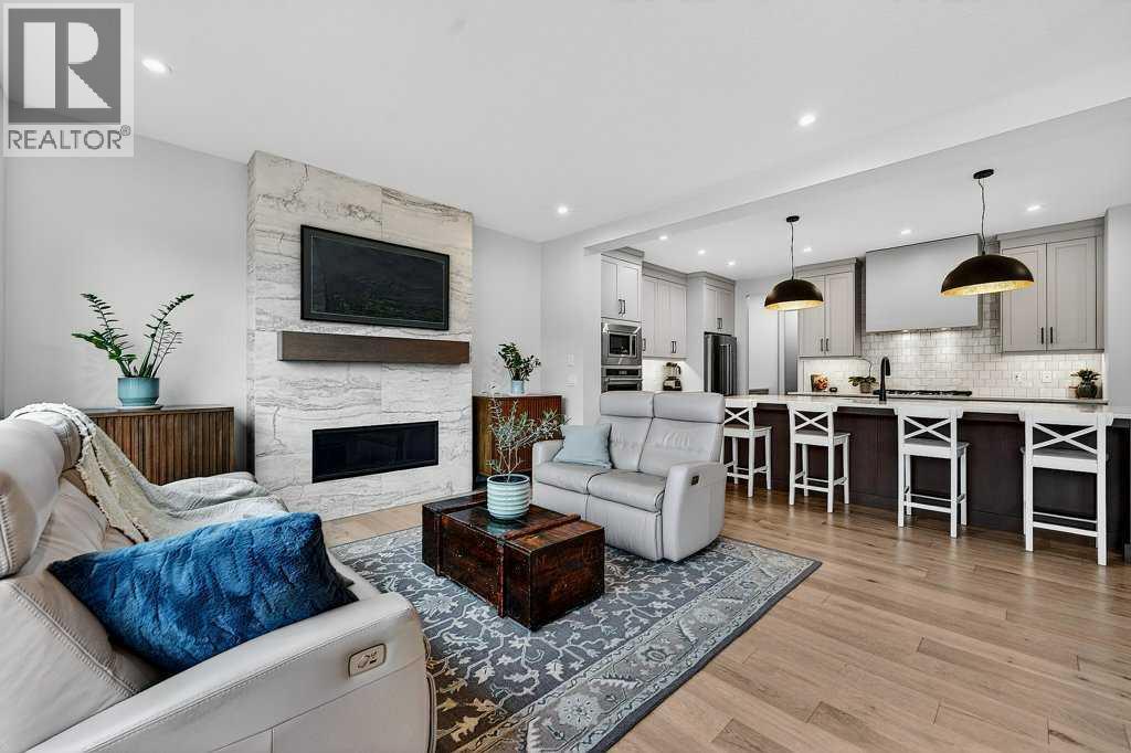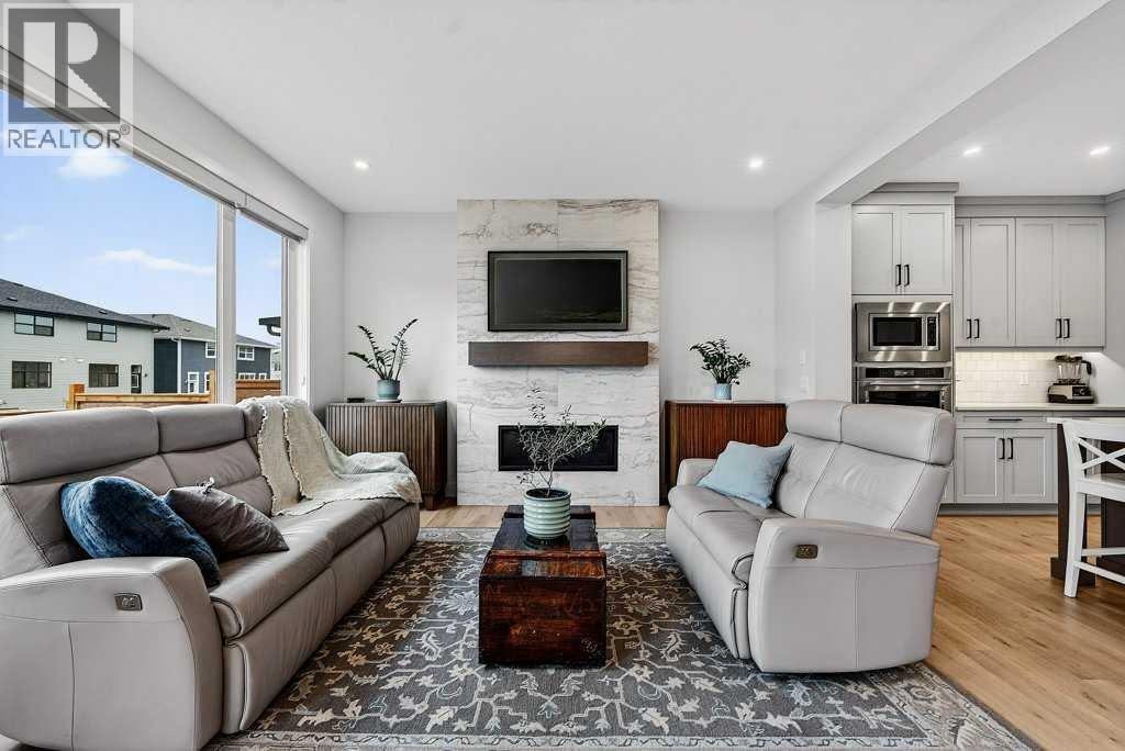 Welcome to this exceptional family home in one of Calgary’s most sought-after lake communities! Your new home is in an exclusive phase of Mahogany right across the street from a greenbelt with paved pathway leading to your own semi-private dock! The original owners offer this Quince model by award winning Baywest Homes built in 2023. Great opportunity to own in an estate community with both a triple attached garage & rear laneway for more privacy & potential R.V. parking. Inside you’ll discover a bright, open plan filled with natural light with engineered hardwood flooring on main level. The concept kitchen is a true showpiece, featuring loads of cabinetry, multi burner gas stove, built-in microwave, & ample space for gathering around the island. Direct access from the garage thru a butler’s pantry makes for the ideal access when bringing home the groceries. The kitchen is open to the dining area flowing seamlessly into the stunning family room, where a cozy fireplace creates an inviting atmosphere for entertaining friends & relaxing with the family. A den area is situated in a private corner on the way upstairs creating the perfect place to study, read or use as a home office. Upstairs, you’ll enjoy nine-foot ceilings, a thoughtfully designed layout that includes a generous bonus room & convenient laundry room. The primary bedroom is your personal retreat, complete with a spa-inspired ensuite boasting a tiled shower and a walk-in closet. Three additional bedrooms share a large main bathroom, providing plenty of space for a growing family. The builder finished basement adds two good-sized bedrooms, a full bathroom, & a large rec room perfect for movie nights, fitness equipment & kids’ play area. A massive storage room with 2 story vaulted area ensures you’ll never run out of space for storing seasonal items & gear. The triple car heated garage has an EV plug in, provides all the space you need for vehicles, bikes, lake toys & more. The fenced backyard offers privacy and features an underground irrigation system in both the front and back yards, making maintenance easy and keeping everything ready for your dream landscape. Easy access to community amenities, YMCA, Mahogany’s main beach, top-rated schools, parks, shopping & restaurants. Offered below replacement value without the long wait to build new! (id:53676)