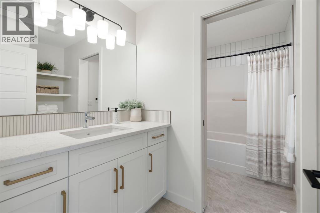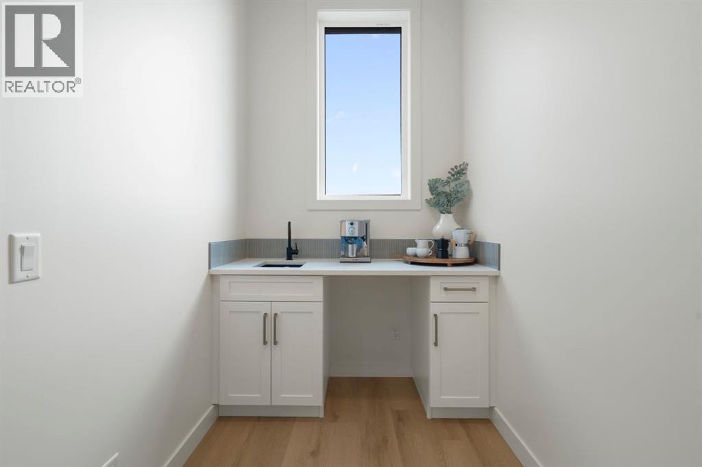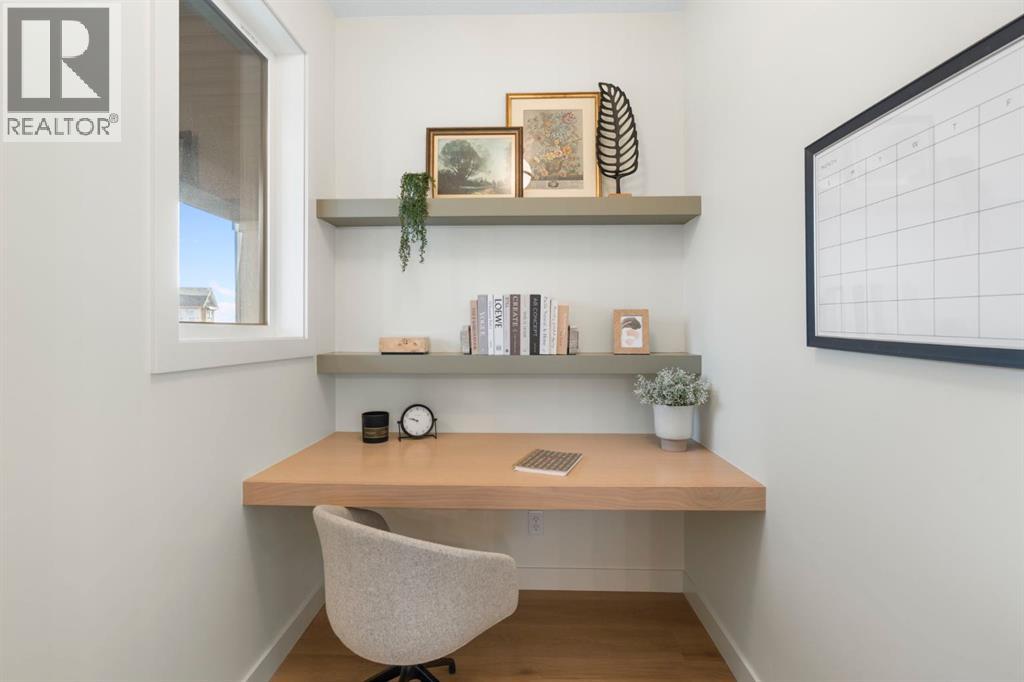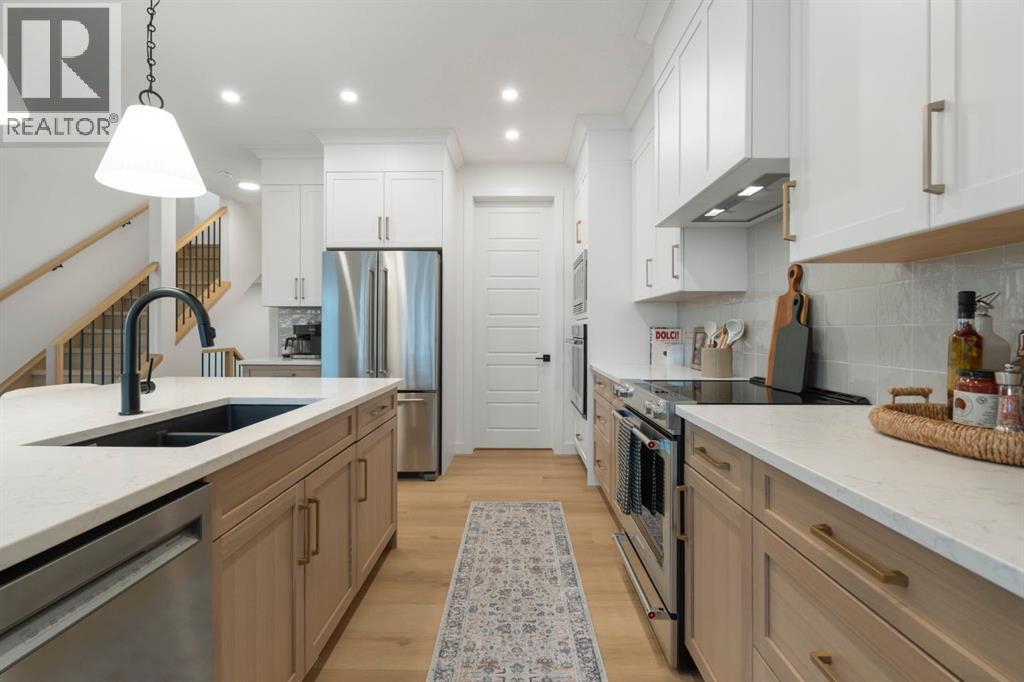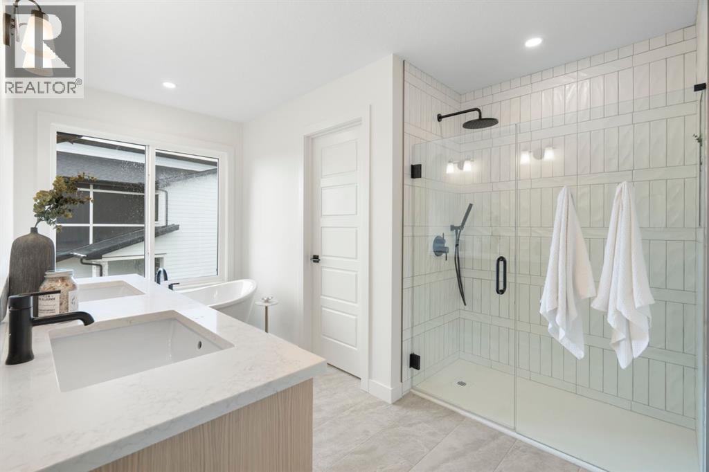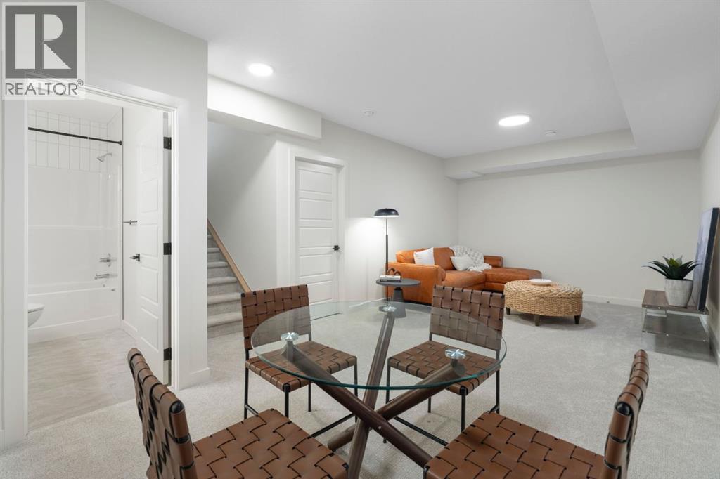 Discover your new home located in the exclusive community of Pinnacle Estates at Sunset Ridge in Cochrane. Introducing the MIA model by Aspen Creek Designer Homes, voted Cochrane Builder of the Year two years in a row. With over 3,100 sq. ft. of developed living space, this corner-lot home is designed for both function and style.A wraparound front porch sets the tone, offering incredible views from all angles. Inside, the spacious entryway flows into a built-in mudroom with coat racks and bench, along with a convenient powder bath. The main floor showcases an open-concept design filled with natural light from oversized windows. The kitchen is a true standout with custom cabinetry, stainless steal appliances, quartz counters, double ovens, and a walk-in pantry with built-in shelving. A tucked-away work space is ideal for those needing a home office. The living room centers around a cozy electric fireplace, while patio doors off the dining area open to the covered porch that is perfect for entertaining or unwinding.Upstairs, the primary suite is privately set apart and features wainscoting detail, a large walk-in closet with custom shelving, and a spa-inspired ensuite with a soaker tub and glass shower. Just outside, the coffee bar on the landing adds a thoughtful touch. Two additional bedrooms with large closets, a generous sun filled bonus room, a 4 piece bathroom with ample counter space and storage for all the linens with a laundry room that completes the upper level.The fully finished lower level includes a spacious rec room, additional bedroom, full bathroom and plenty of storage. The outside yard has been fully covered with sod and is yours to personalize with space for a trampoline, garden or fire pit to spend those summer nights. All of this located one block from RanchView School (K-8), parks, and new pathways leading to the historic Cochrane Ranchehouse. Book your showing today! (id:53676)