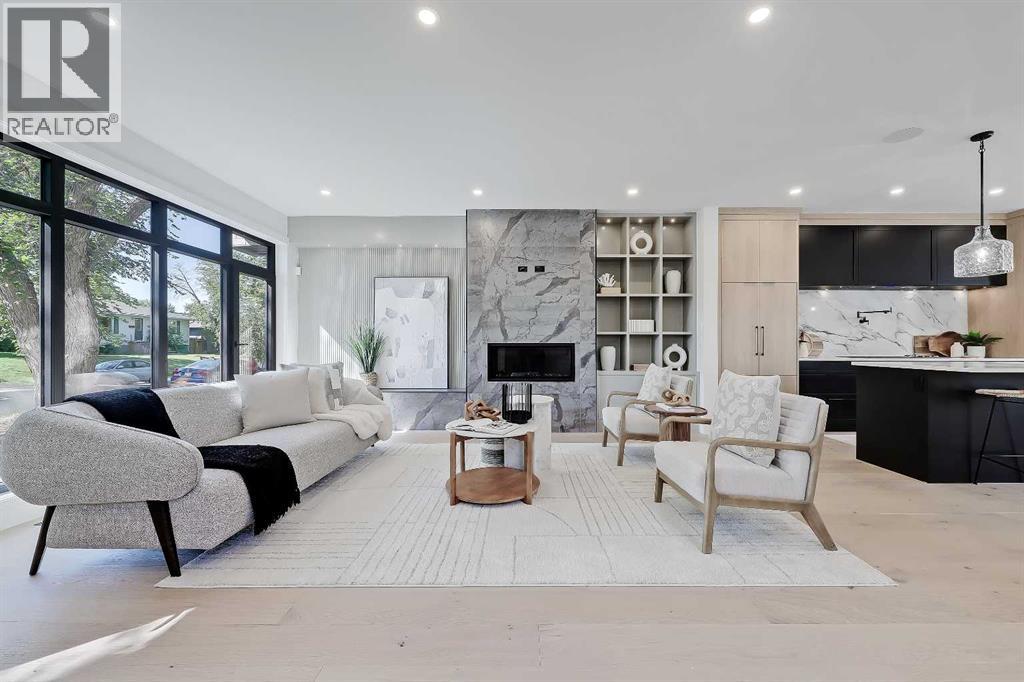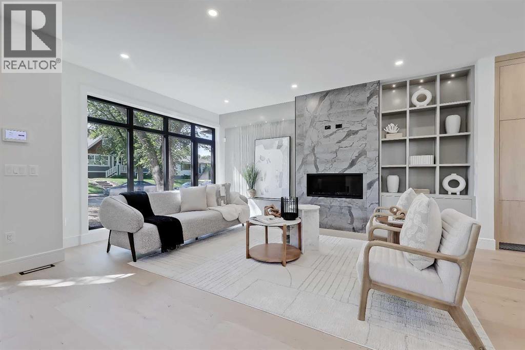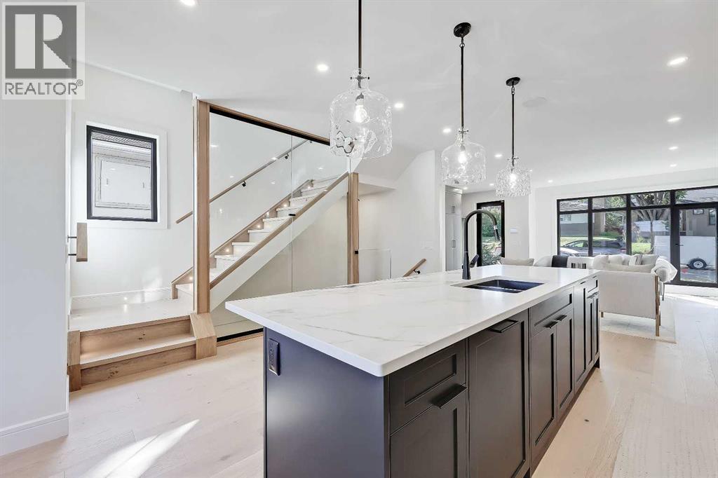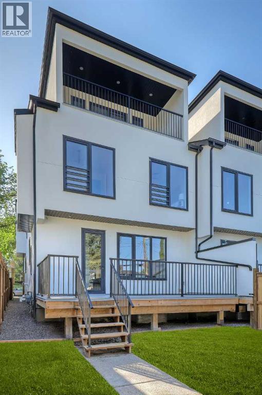Tile detailing, modern finishes, designer lighting package, upgraded German-made KULU windows & doors…it’s everything you’re looking for in a luxury 3-STOREY SEMI-DETACHED INFILL! Now MOVE-IN READY, this designer home is located just off 26th Ave in the heart of Killarney – the ideal location for your new family home! The main floor opens into a welcoming foyer w/ built-in closet & bench, offering views into the spacious living room w/ a gas fireplace w/ full-height tile, as well as a stunning wood-panelled feature wall. Beautiful oak hardwood flooring leads you into the open-concept kitchen – fully equipped w/ an oversized island w/ quartz countertop, timeless shaker-style cabinetry w/ numerous lower drawers, & a contemporary flat-panel built-in cabinetry pantry. The designer kitchen is nicely finished w/ a full stainless steel appliance package, complete w/ a panelled French door refrigerator, a built-in wall oven & microwave, a gas cooktop w/ pot filler, & a built-in dishwasher. The custom built-ins continue into the dedicated dining room, w/ open shelving & lower cabinets w/ quartz counter for everyday convenience. Step out onto the back deck through the rear mudroom, complete w/ a built-in bench, coat cabinet, & tile flooring. Before you head upstairs, the stylish powder room is tucked away w/ a beautiful skirted vanity & vessel sink.Up the bright stairwell w/ glass wall awaits the primary suite – as sleek & modern as the rest of the home, w/ oversized windows, a private balcony w/ KULU door, & an extra-large walk-in closet! The chic ensuite features a dual vanity w/ a quartz countertop & a bank of lower drawers, a freestanding soaker tub, & a stand-up shower w/ full glass walls, rain showerhead, & bench. Two secondary bedrooms share the main 4-pc bath & the laundry room features a sink, upper cabinetry, hanging rod, tile backsplash, & a folding counter.A luxury home isn’t complete without a THIRD FLOOR LOFT, & this space has not been overlooked. More ove rsized windows bring in lots of natural light, shining across a spacious rec area w/ gas fireplace, full wet bar w/ extended quartz countertop, bar sink, & statement open shelving. A lovely sitting area w/ built-in desk overlooks the COVERED BALCONY & of course, there’s a full bath w/ fully tiled shower, too.The living space continues into the basement, w/ a full wet bar w/ quartz island, dual basin sink, & a designer tile floor, w/ a large family room, built-in media centre, a glass walled home gym w/ sports flooring, a 4th bedroom, & a full 4-pc bath. Killarney offers the perfect balance of community & convenience. From here, you’re within walking distance to Glendale School, Killarney School, & Bishop Carroll High. Westbrook Mall & the CTrain are only 5 minutes away, making downtown access effortless. The Killarney Aquatic & Recreation Centre, Optimist Athletic Park, & Shaganappi Golf Course are all nearby. Call to view today! (id:53676)