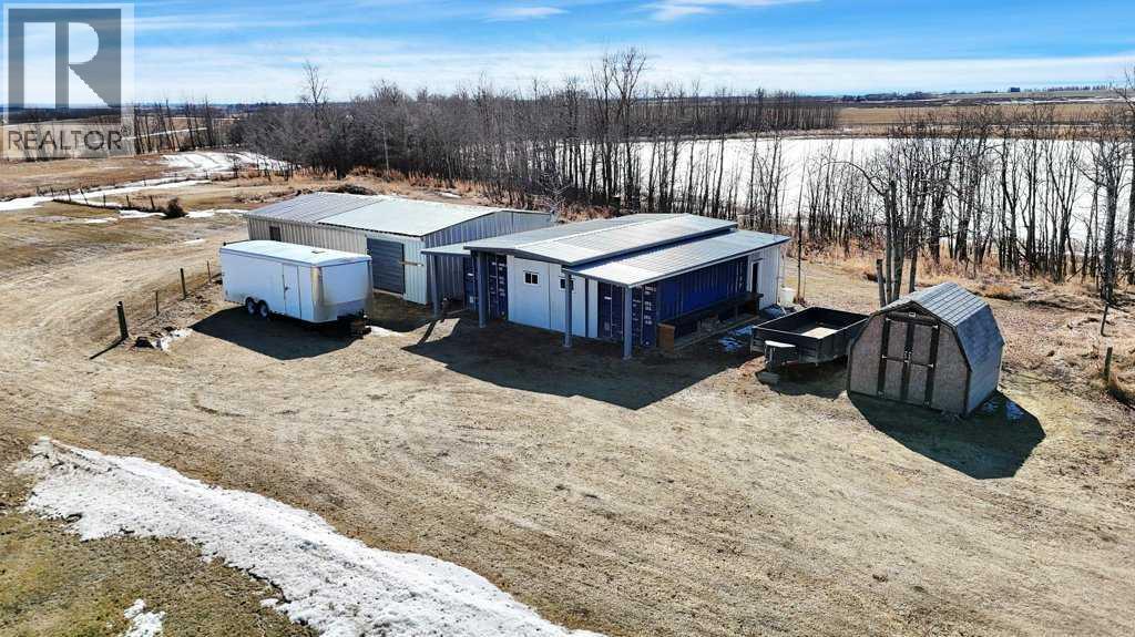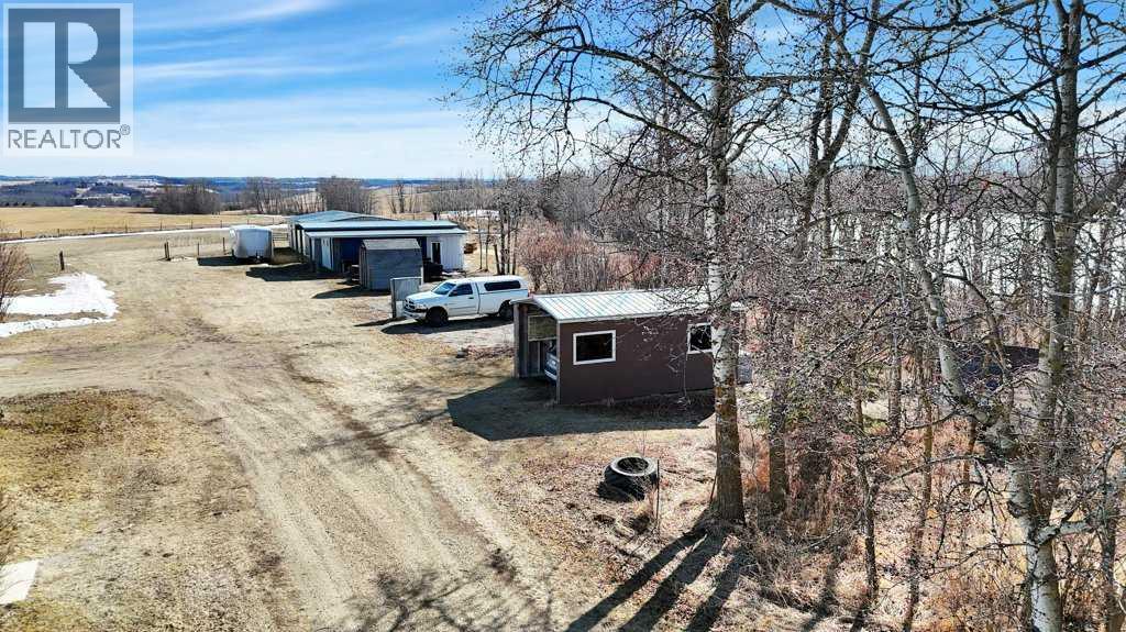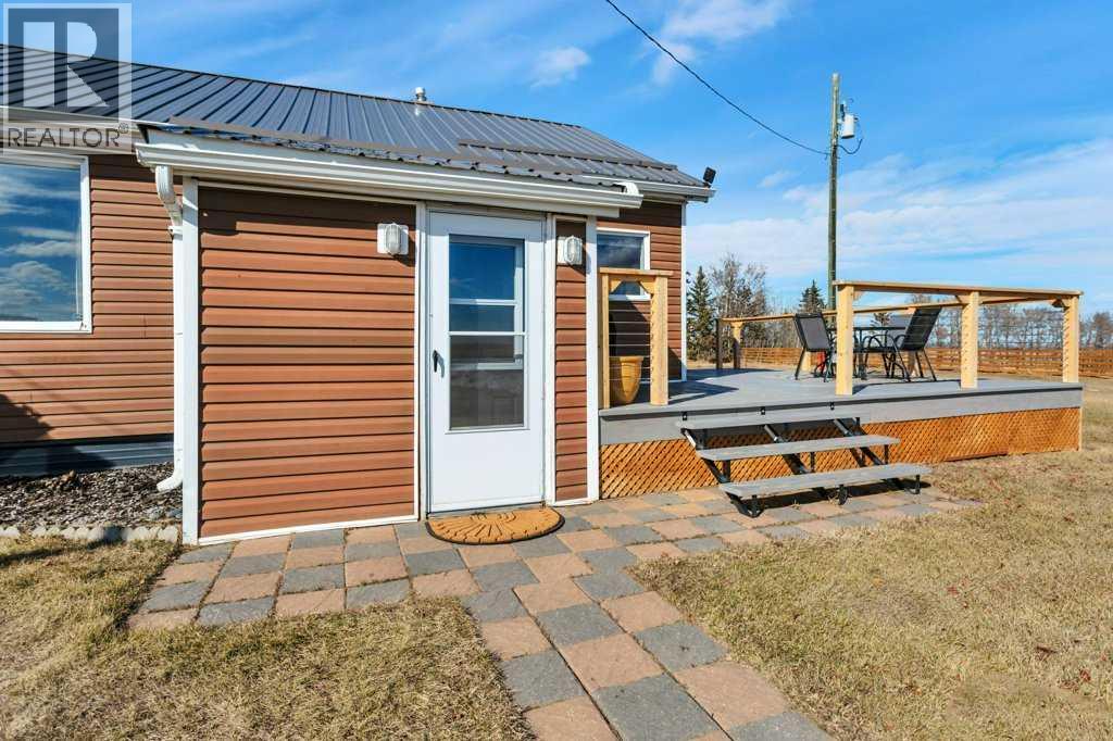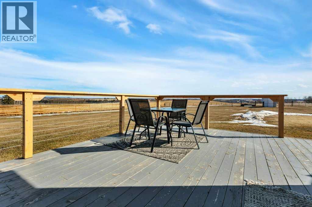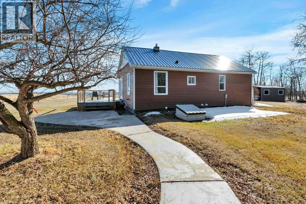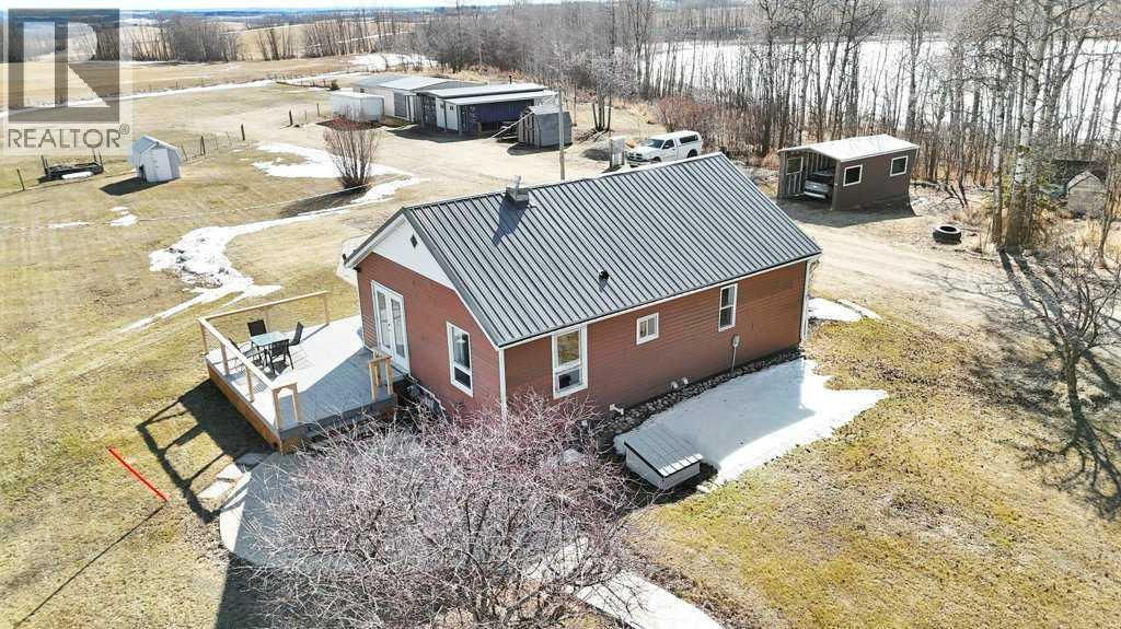 Looking for that perfect little getaway just minutes southwest of Red Deer? Check out this 3.1 acre piece of heaven with sensational views of the rolling country side all from the southeast facing large deck. Very private and quiet. Let your imagination run wild with the possibilities of this property. Super cool garage with work shop space and 220 power lots room for storage for your outdoor toys. Should you wish to build your dream shop power is in place! Good sized animal shelter/barn ready for a couple of horses or other uses. This unique county home is truly move in ready with all the upgrades taken care of including tin roof, vinyl windows, vinyl siding, newer kitchen cabinets, hot water tank, furnace, and flooring. This little gem features good sized living room. Good sized kitchen with tons of storage and great cabinets. The home has wonderful south east window locations making it feel delightfully open and bright. Both bedrooms are good size separated between with an updated 4 pce bathroom. Super clean full basement awaits your development ideas. Should you be just getting started with acreage living, downsizing to a small more manageable acreage or have ideas of a larger operation this property gives you all those options in one. (id:53676)