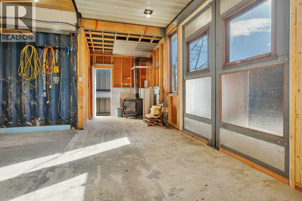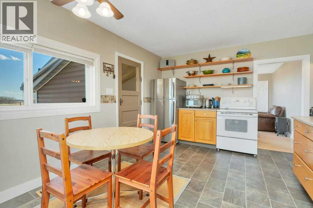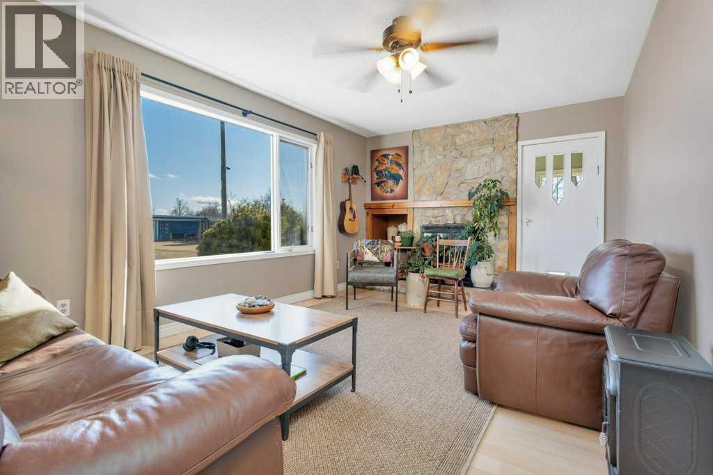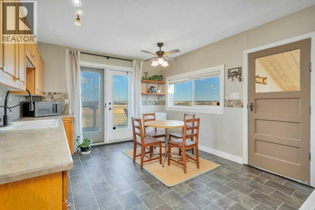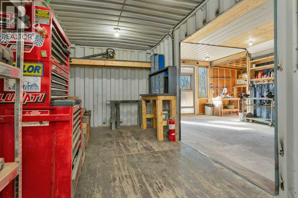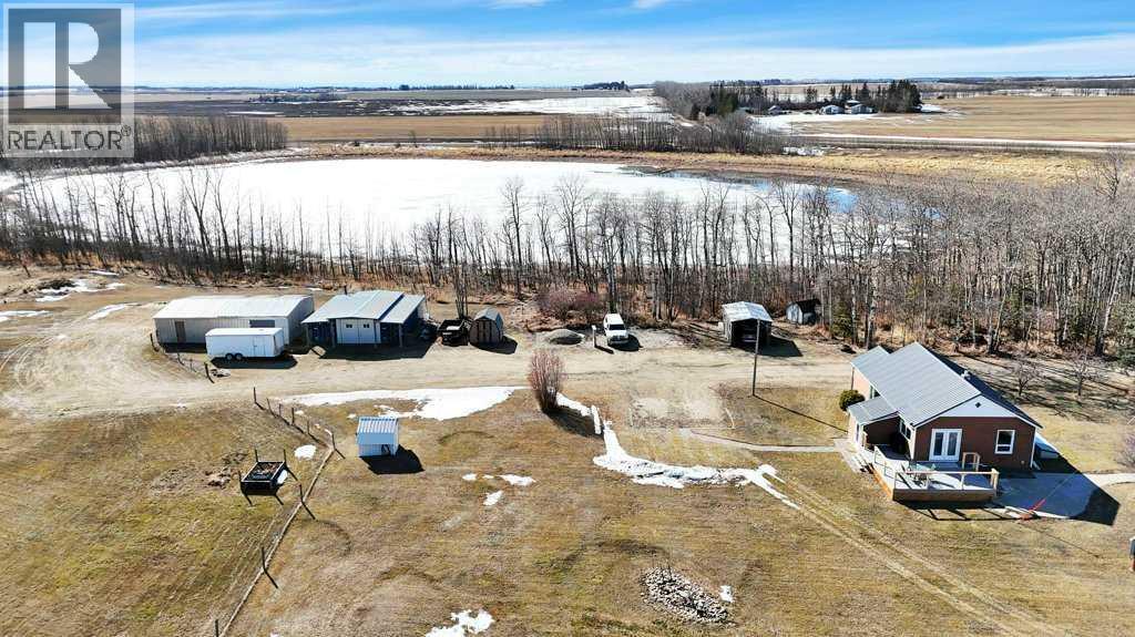 Looking for that perfect little getaway just minutes southwest of Red Deer? Check out this 3.1 acre piece of heaven with sensational views of the rolling country side all from the southeast facing large deck. Very private and quiet. Let your imagination run wild with the possibilities of this property. Super cool garage with work shop space and 220 power lots room for storage for your outdoor toys. Should you wish to build your dream shop power is in place! Good sized animal shelter/barn ready for a couple of horses or other uses. This unique county home is truly move in ready with all the upgrades taken care of including tin roof, vinyl windows, vinyl siding, newer kitchen cabinets, hot water tank, furnace, and flooring. This little gem features good sized living room. Good sized kitchen with tons of storage and great cabinets. The home has wonderful south east window locations making it feel delightfully open and bright. Both bedrooms are good size separated between with an updated 4 pce bathroom. Super clean full basement awaits your development ideas. Should you be just getting started with acreage living, downsizing to a small more manageable acreage or have ideas of a larger operation this property gives you all those options in one. (id:53676)