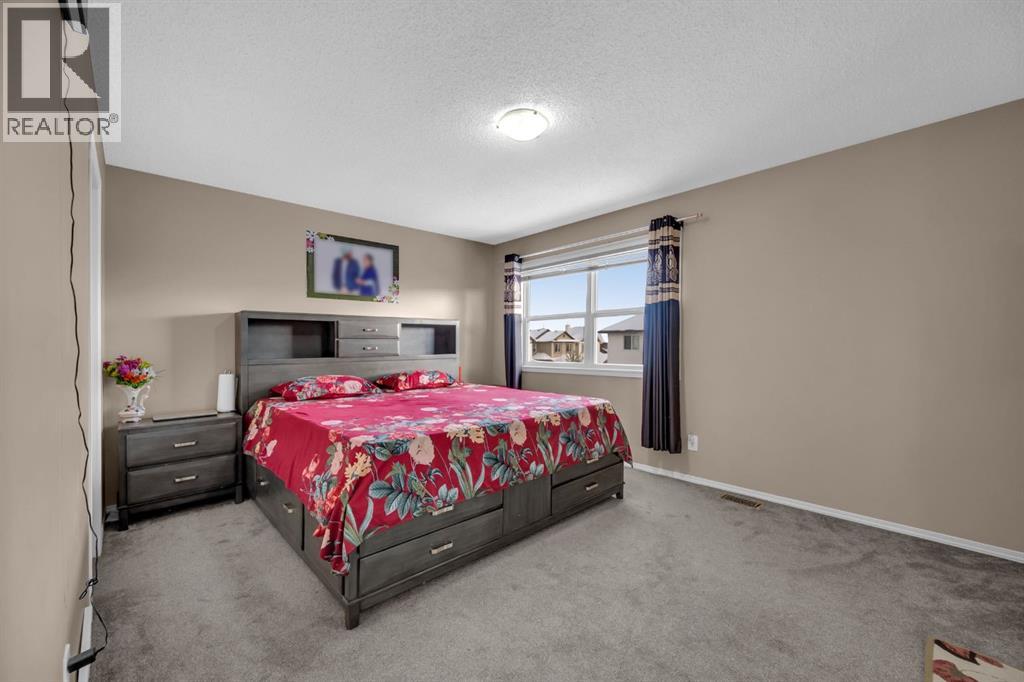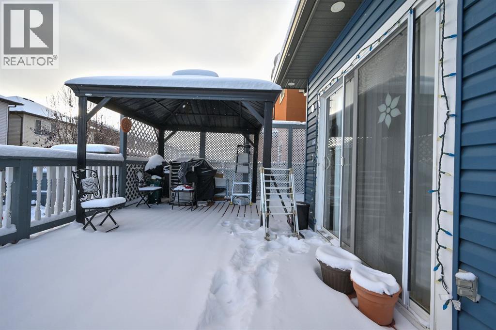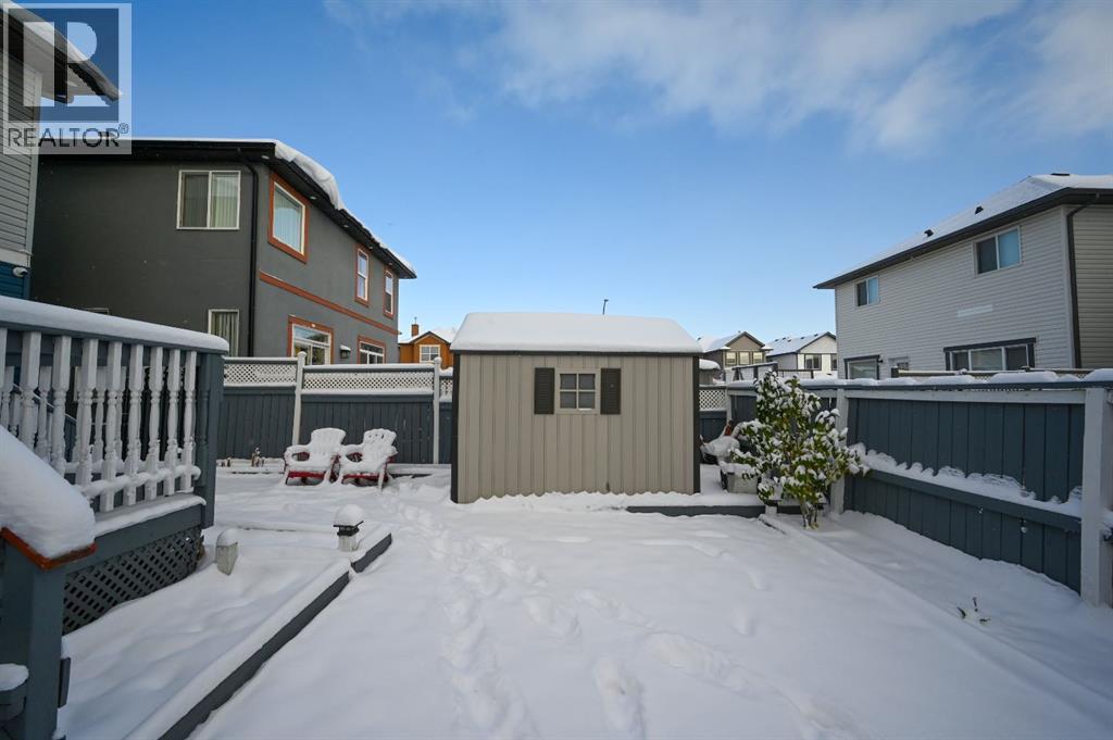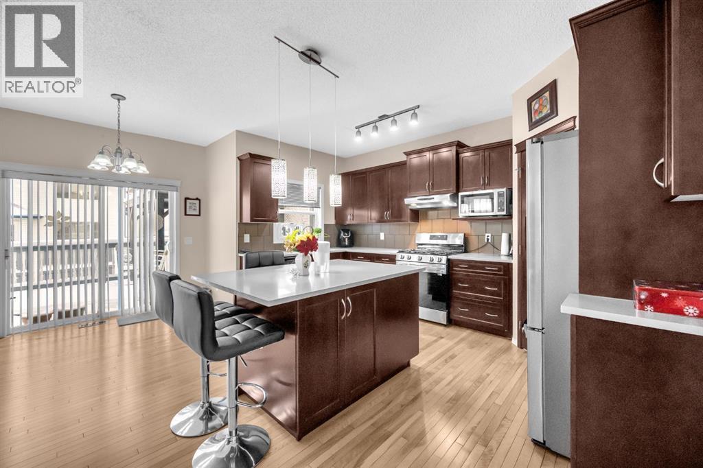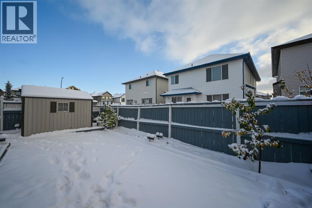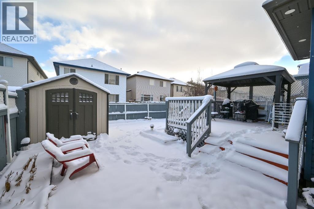 Great place to call Home in the heart of NE Saddlecrest Community. The living room and formal dining space create an inviting atmosphere for formal dinners and entertaining. The open concept living area, including the kitchen, family room, and breakfast nook, provides a spacious and connected feel.A cozy fireplace with a raised hearth adds a touch of elegance to the family room. The kitchen is well-appointed with stainless steel appliances, a large center island, quartz countertops, a corner pantry, and solid wood cabinets. There's a sizeable den on the main level, which can serve as a home office or a playroom for kids. The powder room and laundry facilities are conveniently located on the main level.The well-sized deck with a pergola is perfect for outdoor entertaining.Garden enthusiasts will appreciate the planters and garden shed for their tools.The primary bedroom is spacious and features a 4pc ensuite with a separate shower and soaker tub, as well as a walk-in closet. Three additional well-sized bedrooms are located on the upper level, along with a 4pc bathroom.A spacious bonus room on the upper level offers extra living space for the family.The basement is unfinished, allowing for customization and potential future expansion.The home has a new gas stove installed in 2023 and a new two-door refrigerator installed in 2022. New Roof Shingles and siding(2024). It appears to be a well-maintained and versatile family home with modern amenities and potential for customization in the basement. (id:53676)