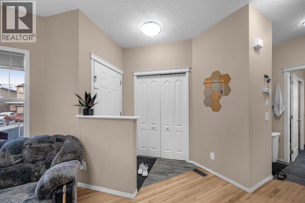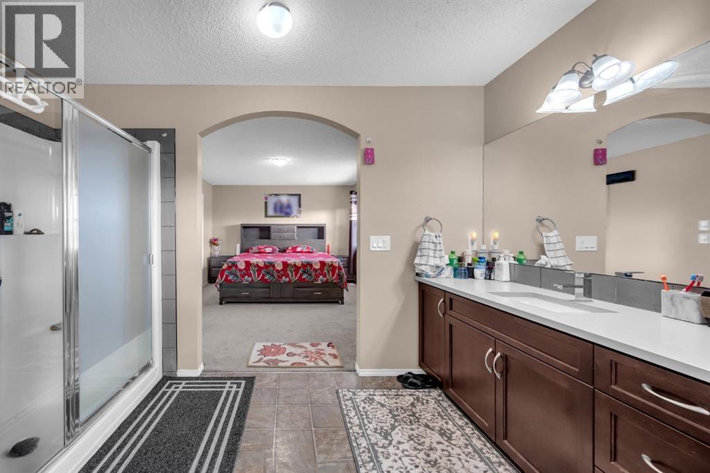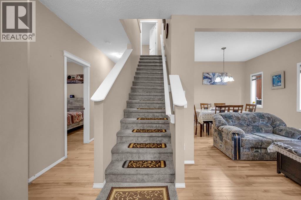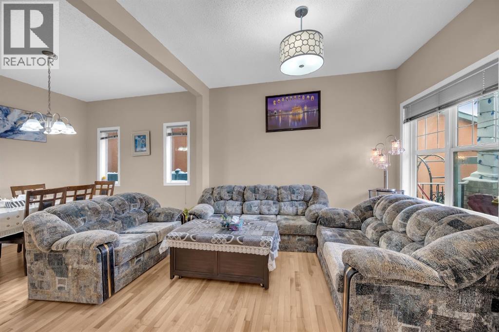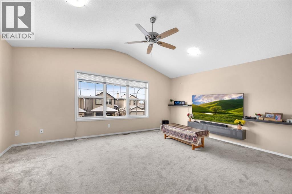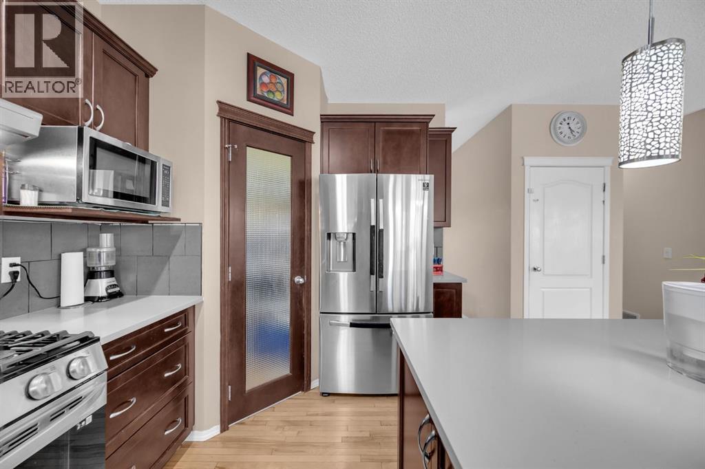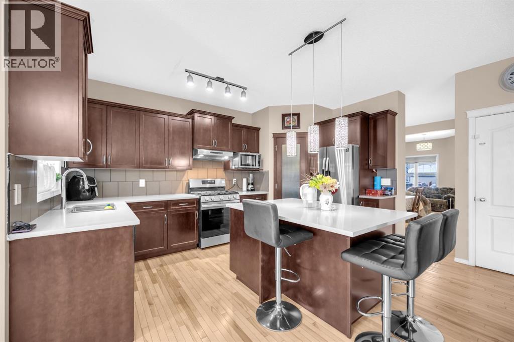 Great place to call Home in the heart of NE Saddlecrest Community. The living room and formal dining space create an inviting atmosphere for formal dinners and entertaining. The open concept living area, including the kitchen, family room, and breakfast nook, provides a spacious and connected feel.A cozy fireplace with a raised hearth adds a touch of elegance to the family room. The kitchen is well-appointed with stainless steel appliances, a large center island, quartz countertops, a corner pantry, and solid wood cabinets. There's a sizeable den on the main level, which can serve as a home office or a playroom for kids. The powder room and laundry facilities are conveniently located on the main level.The well-sized deck with a pergola is perfect for outdoor entertaining.Garden enthusiasts will appreciate the planters and garden shed for their tools.The primary bedroom is spacious and features a 4pc ensuite with a separate shower and soaker tub, as well as a walk-in closet. Three additional well-sized bedrooms are located on the upper level, along with a 4pc bathroom.A spacious bonus room on the upper level offers extra living space for the family.The basement is unfinished, allowing for customization and potential future expansion.The home has a new gas stove installed in 2023 and a new two-door refrigerator installed in 2022. New Roof Shingles and siding(2024). It appears to be a well-maintained and versatile family home with modern amenities and potential for customization in the basement. (id:53676)
