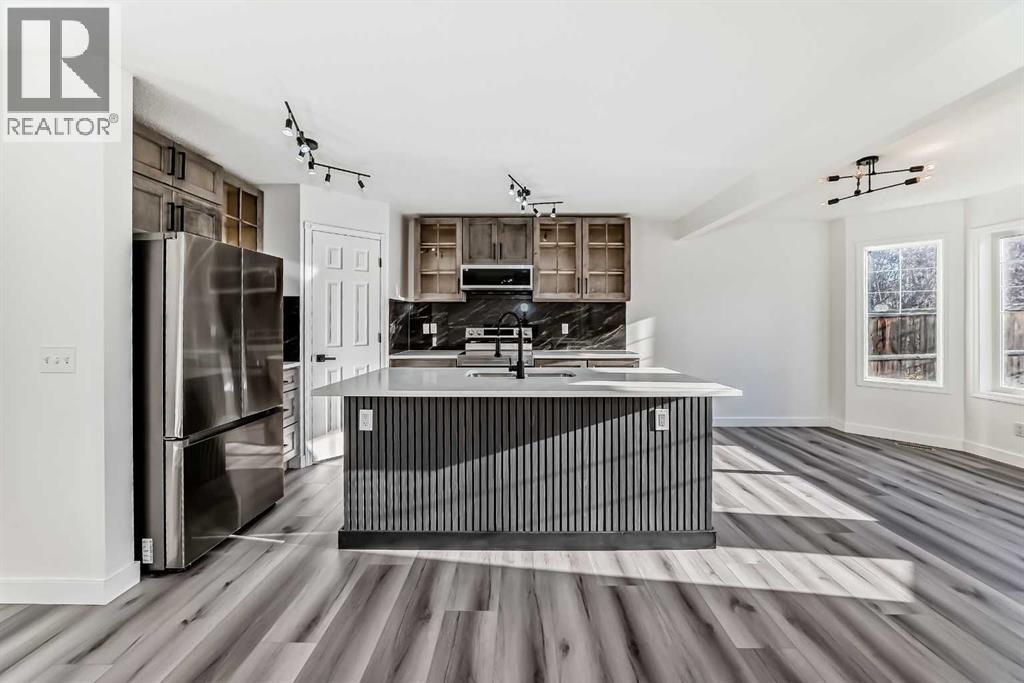 Pride of ownership exudes from this former Crestview Show Home located in the highly sought after community of the "Canals". Extensive renovations have just been completed including new flooring and fresh paint through-out. The kitchen has undergone a full remodel featuring new S/S appliances, cabinets, hardware plus a large center island with quartz counter-tops and tiled backsplashes. Off the kitchen is a good sized breakfast nook that grants access to a large East facing back deck that overlooks a park. Completing the main floor is a huge family room with a cozy gas fireplace plus a formal dining area, front living room, office, 2pc bath and laundry area. Upstairs you will find a massive primary bedroom with a walk-in closet, 4 pc ensuite (jetted soaker tub and separate shower) plus access to a West facing balcony. Completing the upper level are 3 additional bedrooms and another 4pc bath. The basement offers high ceilings, large windows and awaits your finishing touches. Additional bonuses include: new baseboards, toilets, LED fixtures, hot water tank plus the furnace has been recently serviced and the ducts cleaned. The double attached garage comes with a gas heater, freshly painted floors plus a front driveway great for additional parking. This home backs onto a park with no neighbors behind and is located close to schools, shopping, walking paths and easy access to main roadways. (id:53676)