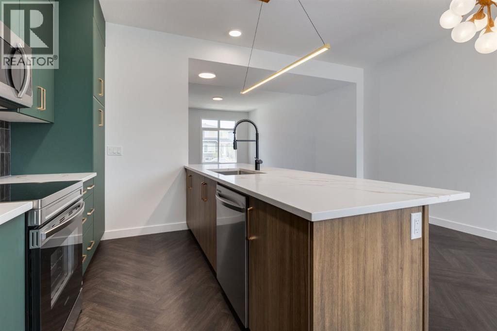 Brand new the No condo fee 'TALO' town floorplan by Rohit Homes, with unmatched design interiors and striking exteriors to create elevated living. Featuring 1500 sq ft, 3 bed/2.5 bath + Bonus. Note: This unit has not yet started construction. All Perfectly located In SE Calgary's 'Sora in Hotchkiss', close to a park, featuring a pond, paths, easy access to major highways and more. Step inside to an expansive open floor plan that seamlessly connects living/dining and kitchen. KITCHEN FEATURES: SS appliances, quartz counters, large island (with place for bar stools), desginer cabinets, boutique lighting - a perfect place to gather and create masterful meals. Off the kitchen is the dining, mid room and half bath. The TALO plan offers large windows across the back and front, and with the high ceilings as well as open floor plan, it leaves the home feeling bright and inviting. Upstairs, find 3 good size bedrooms, bonus room, laundry, 2 full baths. The primary retreat includes a walk in closet, and spa like retreat full en-suite. Ensuite features: Single vanity, window, bath/shower combo, quartz counters and beautiful tile work. The lot features alley access in the back to a concrete parking pad. Located just outside the ring-road, east of Stoney Trail, offering quick access to highways and other amenities on the southeast side of Calgary. All pictures and 3D tours are of the 'TALO' floorpan that is completed, your unit may have different (colors/finishings/spec upgrades/design interior/elevation) depending on Lot - confirm with builder. At Rohit Homes, we know it’s not just about having a functional floor plan, it’s about having a space that you’re proud to show off. Each of our homes features a distinct look that is inspired by you - our customers. Built by a 4-time Home Builder of the Year with Peace-of-mind 1-2-5-10 year new home warranty. Unparalleled level to townhome living awaits. Note: The listed price includes GST - The First-Time Home Buyers' GST Rebate could save you up to $50,000 on a new home! You must be 18+, a Canadian citizen or permanent resident, and haven't owned or lived in a home you or your spouse/common-law partner owned in the last four years. Terms and conditions are subject to the Government of Canada/CRA rules and guidelines. *Visit show home at 318 sora way SE Calgary mon-thurs 4-7pm, sat/sunday 2-5pm. Self guided tours available outside those times! (id:53676)
