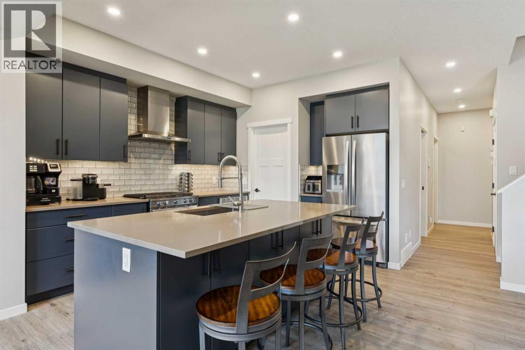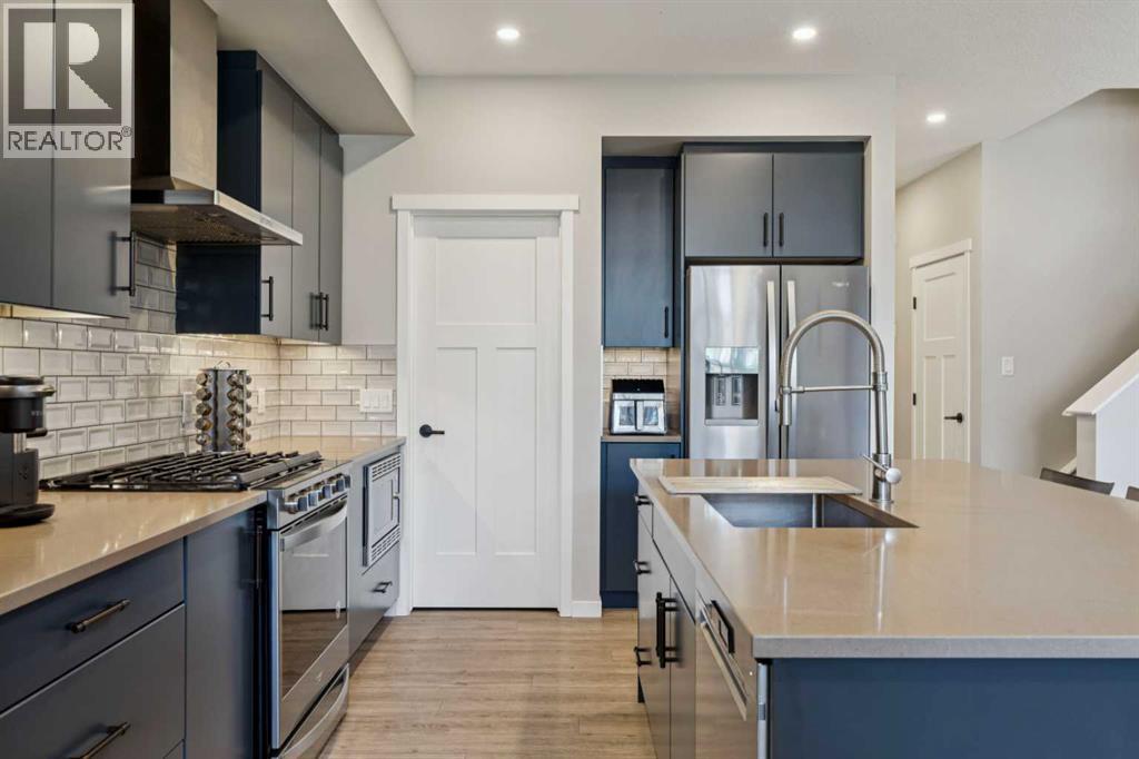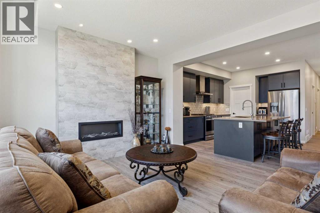Lake living in Mahogany ~ Welcome to this beautifully maintained FORMER SHOW HOME offering over 2,160 sq ft above grade, thoughtful upgrades throughout, and an exceptional location just a short walk to Mahogany’s main beach, parks, pathways, and amenities. Designed with both comfort and functionality in mind, this move-in ready home delivers the ideal blend of style, space, and everyday convenience.Open-concept main floor with designer finishes features a spacious living area anchored by a cozy gas fireplace, oversized windows, and seamless flow into the dining space and central kitchen. The kitchen is well-appointed with quartz countertops, stainless steel appliances, gas range, pantry, upgraded cabinetry, and plenty of prep and storage space. A fully upgraded mudroom, powder room, and front attached double garage complete the main level.Upper bonus room + 3 bedroom layout offers ideal separation for families, with a generous second-floor bonus room perfect for movie nights, play space, or even to be converted into an additional bedroom. At the top of the stairs is a perfect spot for a desk area, useful for an office, or craft space; whatever you like! The spacious primary retreat includes a walk-in closet and spa-inspired 5-piece ensuite, while both secondary bedrooms are well-sized and feature walk-in closets. Convenient upper-floor laundry adds everyday practicality. Premium comfort upgrades include central A/C, dual-zone climate control, water softener, built-in humidifier, motorized blinds, smart security system with cameras, leak detection system, and LAN wiring throughout the home for fast, reliable connectivity.Fully finished backyard with privacy and function is ready for summer enjoyment with a deck featuring gas hookup, fencing, shed, rear lane access, and added privacy. Morning sunlight at the front with a warm west-facing afternoon backyard creates a bright and inviting outdoor experience throughout the day.Walking distance to beach, schools, parks, and everyday amenities makes this an outstanding opportunity to own a turnkey home in one of Calgary’s most sought-after lake communities. (id:53676)