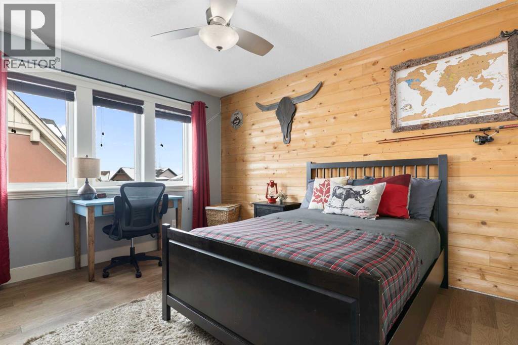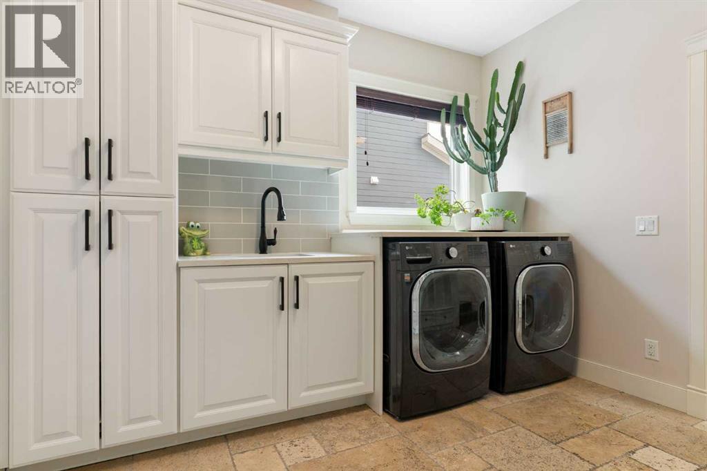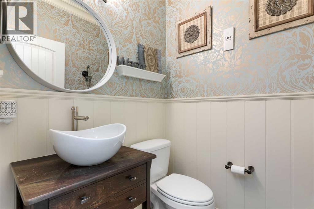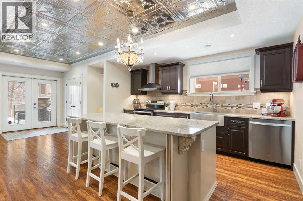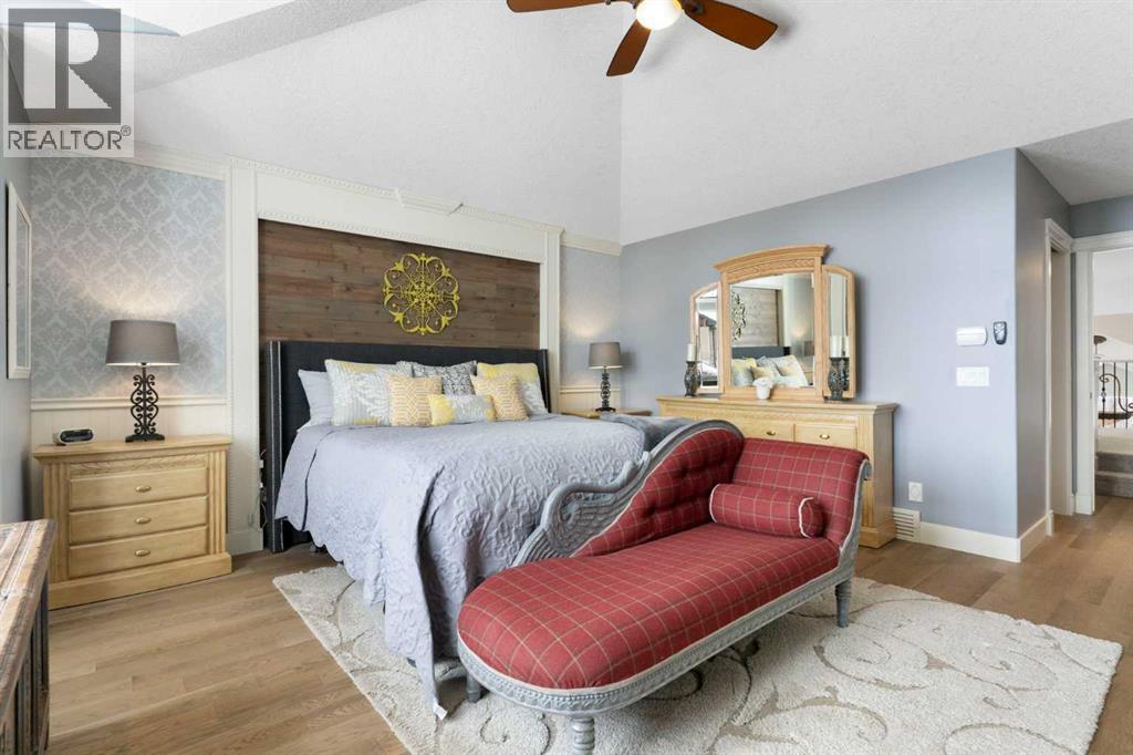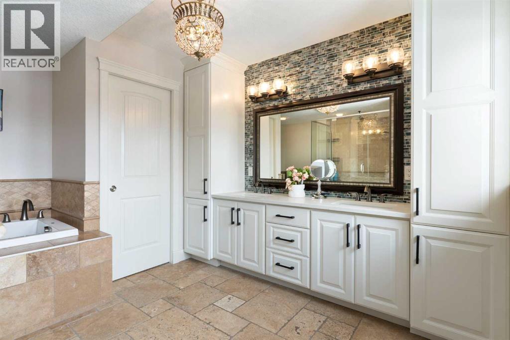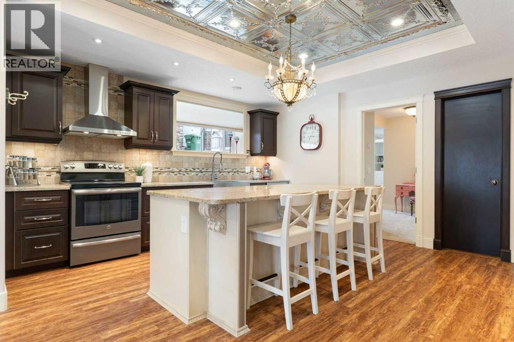 Hello, Gorgeous! Welcome to this beautifully renovated executive walkout home in the highly sought-after community of Coopers Crossing in Airdrie. Offering over 2,500sq ft. above grade plus a fully developed walkout basement, this home blends impressive architectural spaces with thoughtful custom finishes throughout. Step inside to a stunning entry featuring stacked stone accents, rustic beams, and an inviting sense of craftsmanship that continues throughout the home. The main floor includes a private office with glass French doors, perfect for working from home or flexible use as a dining space or additional bedroom. At the heart of the home is the dramatic great room with soaring 14-foot vaulted ceilings, arched windows, and a beautiful fireplace feature wall that fills the space with natural light from the west-facing backyard.The chef-inspired kitchen is designed for both everyday living and entertaining, featuring a large island, quartz countertops, professionally painted two-tone cabinetry, custom organizers, and a striking solid walnut hood fan. Premium appliances include KitchenAid, Bosch, Thermador, and MasterChef, along with a gas range, wall oven, beverage cooler, and walk-in pantry. Upstairs, a welcoming loft creates an additional living space for relaxing or family time. Two spacious bedrooms share a well-appointed bathroom, while the impressive primary retreat offers vaulted ceilings, custom wall detailing, and a luxurious ensuite with heated floors, double vanity, soaker tub & separate water closet. The fully developed walkout basement adds incredible flexibility with a gorgeous second full kitchen, large recreation area, full bathroom, wine/cool room, and a spacious additional bedroom or versatile flex room with built-in Murphy bed. With its high-end finishes and thoughtful layout, this level is ideal for entertaining or multi-generational living. Outdoor living is just as impressive with a west-facing backyard, a 300sq ft. Duradek balcony with glas s railing, natural gas line for BBQ, and a walkout patio below with additional gas connections and hot tub rough-in, plus two storage sheds. The beautifully landscaped yard features custom concrete work, mature trees and shrubs, and a 7-zone irrigation system. Completing the home is a triple attached garage plus shop area, with epoxy floors, forced-air heating, workshop wiring, EV/welder outlets, and extensive built-in storage. Located in one of Airdrie’s most desirable communities, close to parks, pathways, schools, and amenities, this exceptional home offers the perfect combination of space, luxury, and functionality. (id:53676)