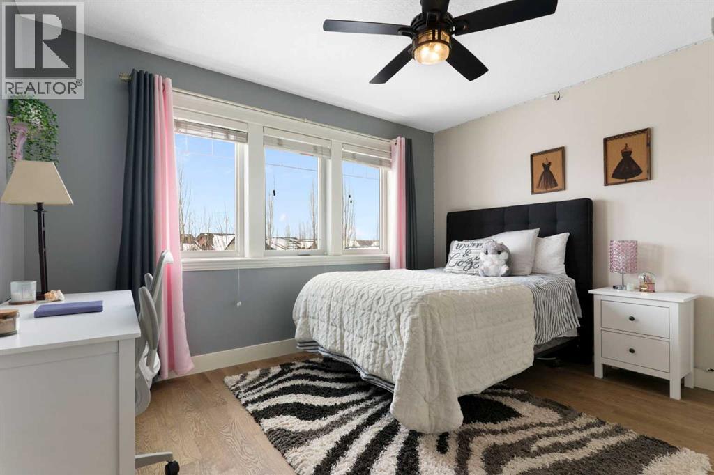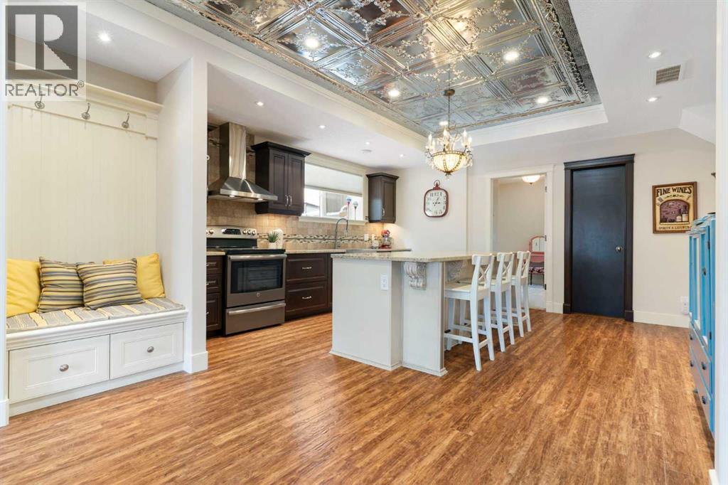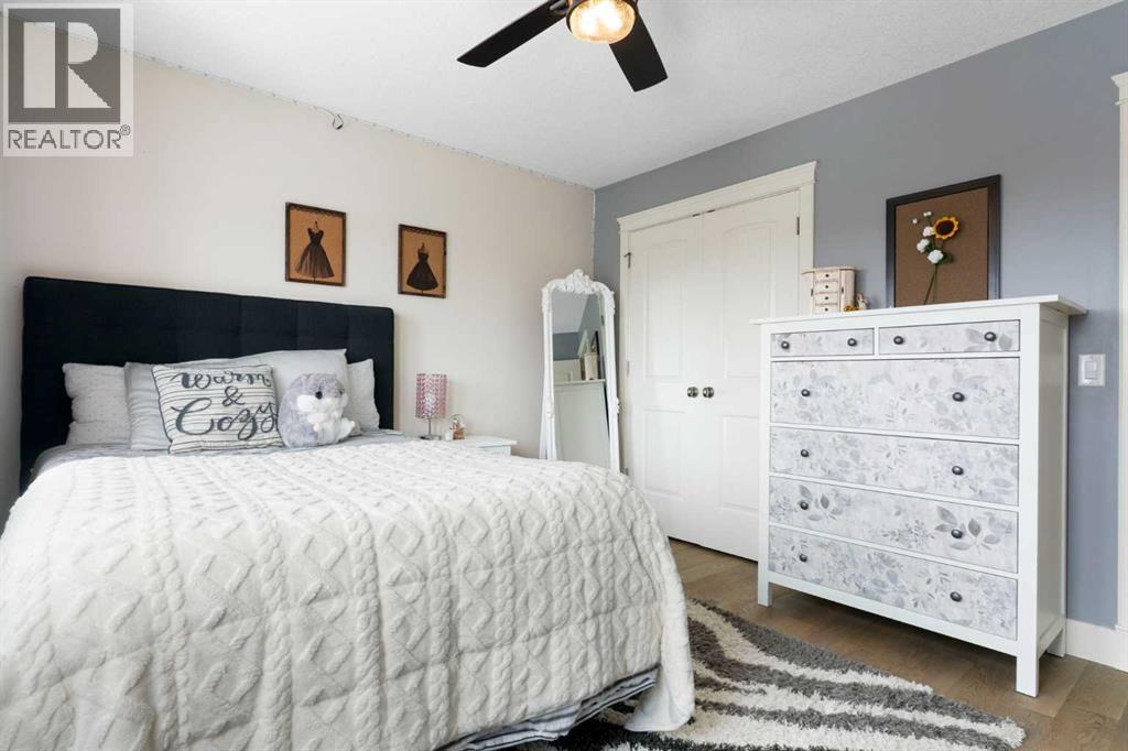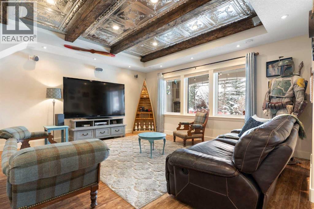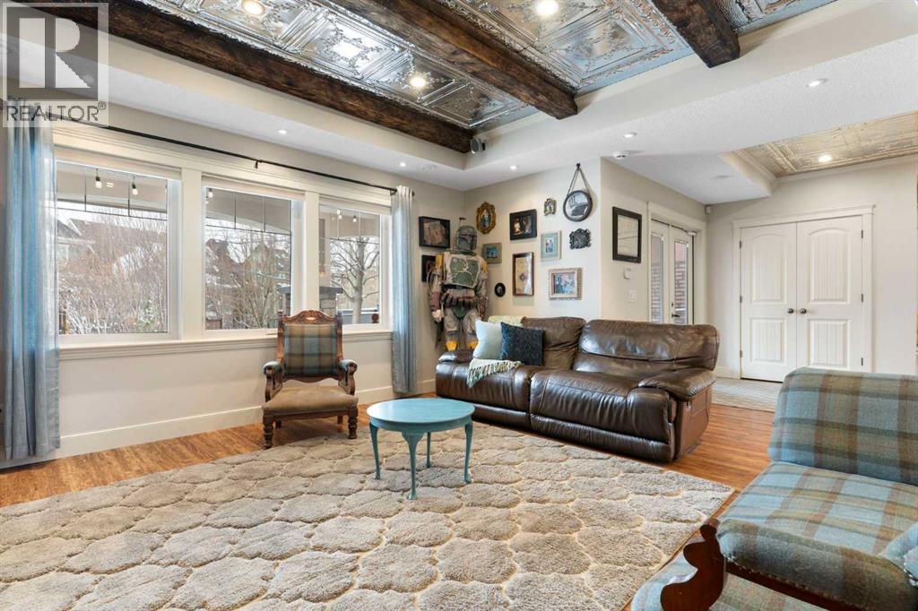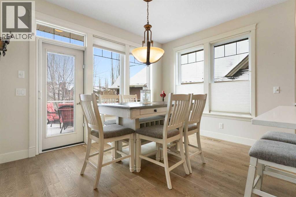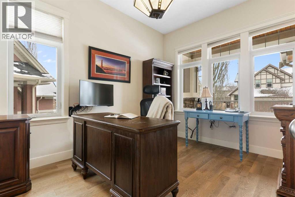 Hello, Gorgeous! Welcome to this beautifully renovated executive walkout home in the highly sought-after community of Coopers Crossing in Airdrie. Offering over 2,500sq ft. above grade plus a fully developed walkout basement, this home blends impressive architectural spaces with thoughtful custom finishes throughout. Step inside to a stunning entry featuring stacked stone accents, rustic beams, and an inviting sense of craftsmanship that continues throughout the home. The main floor includes a private office with glass French doors, perfect for working from home or flexible use as a dining space or additional bedroom. At the heart of the home is the dramatic great room with soaring 14-foot vaulted ceilings, arched windows, and a beautiful fireplace feature wall that fills the space with natural light from the west-facing backyard.The chef-inspired kitchen is designed for both everyday living and entertaining, featuring a large island, quartz countertops, professionally painted two-tone cabinetry, custom organizers, and a striking solid walnut hood fan. Premium appliances include KitchenAid, Bosch, Thermador, and MasterChef, along with a gas range, wall oven, beverage cooler, and walk-in pantry. Upstairs, a welcoming loft creates an additional living space for relaxing or family time. Two spacious bedrooms share a well-appointed bathroom, while the impressive primary retreat offers vaulted ceilings, custom wall detailing, and a luxurious ensuite with heated floors, double vanity, soaker tub & separate water closet. The fully developed walkout basement adds incredible flexibility with a gorgeous second full kitchen, large recreation area, full bathroom, wine/cool room, and a spacious additional bedroom or versatile flex room with built-in Murphy bed. With its high-end finishes and thoughtful layout, this level is ideal for entertaining or multi-generational living. Outdoor living is just as impressive with a west-facing backyard, a 300sq ft. Duradek balcony with glas s railing, natural gas line for BBQ, and a walkout patio below with additional gas connections and hot tub rough-in, plus two storage sheds. The beautifully landscaped yard features custom concrete work, mature trees and shrubs, and a 7-zone irrigation system. Completing the home is a triple attached garage plus shop area, with epoxy floors, forced-air heating, workshop wiring, EV/welder outlets, and extensive built-in storage. Located in one of Airdrie’s most desirable communities, close to parks, pathways, schools, and amenities, this exceptional home offers the perfect combination of space, luxury, and functionality. (id:53676)