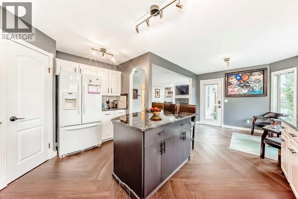 Welcome to this beautifully upgraded 4-bedroom, 4-bathroom home in the highly sought-after community of Lakeside Greens in Chestermere. This thoughtfully renovated property offers comfort, function, and style with a long list of recent updates. The heart of the home is the stunning renovated kitchen (2022) featuring professionally painted cabinets, a large island with granite countertops, marble backsplash, updated hardware, and an induction stove. The main floor boasts gorgeous herringbone-patterned tile flooring with a hardwood look, a refreshed fireplace surround, new baseboards, and a custom closet in the powder room (2024). Enjoy year-round comfort with a new furnace, A/C, and thermostat installed in 2024, as well as a new hot water heater (2023). The finished basement features a fully renovated bathroom (2025), new carpet, updated flooring in the bar area, and upgraded laundry (2020). Step outside to an entertainer’s dream backyard, complete with an extended composite deck, waterproof storage underneath, a hot tub, barnboard privacy wall (2023), and beautifully landscaped gardens (2021). The exterior upgrades continue with updated front landscaping and concrete (2025) and new roof in 2013. Backing onto a walking path and playground and just a short walk to parks, schools, the beach, rec centre, and shopping, this home truly has it all! (id:53676)