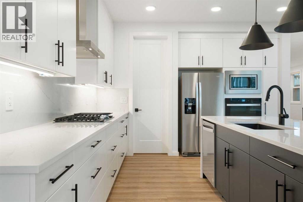 Timeless Comfort in Aspen Spring Estates | 4+1 Bedrooms | 3.5 Bathrooms | 2,380+ Sq Ft Above Grade Welcome to this beautifully upgraded home in the prestigious Aspen Spring Estates of Springbank Hill—where refined design, everyday functionality, and an unbeatable location come together effortlessly. With over 2,380 sq. ft. above grade and a fully finished basement, this home offers the perfect blend of style and space for today’s modern family.From the moment you step inside, you’re greeted by a bright, open-concept floor plan highlighted by soaring ceilings, expansive windows, and sleek contemporary finishes. The main level includes a stylish glass-enclosed home office—perfect for remote work or homework—and a spacious great room anchored by a dramatic two-storey black marble feature wall. Luxury vinyl plank flooring adds both beauty and durability throughout.The chef-inspired kitchen is a true showstopper, featuring a large waterfall island with quartz counters, a built-in wall oven and microwave, gas cooktop, designer lighting, and ample two-tone cabinetry. The seamless flow between the kitchen, dining, and living spaces makes entertaining and everyday living effortless.Upstairs, discover four spacious bedrooms, including a luxurious primary suite with a walk-in closet and spa-style ensuite complete with dual vanities and a modern soaker tub. A generous laundry room and an additional full bathroom provide extra convenience.The fully developed basement offers even more living space, with a large rec room, fifth bedroom, full bathroom, and ample storage—ideal for extended family, guests, or rental potential.Step outside into your private backyard featuring a large deck with elegant glass railings—perfect for summer gatherings or quiet evenings. Additional highlights include a double attached garage and a mudroom with custom built-ins for daily practicality.Located steps from scenic walking paths, lush green spaces, and just minutes from top-rated scho ols, the LRT, Westside Rec Centre, and upscale shopping and dining—this home truly has it all.Don’t miss your chance to own this move-in-ready designer home in one of Calgary’s most coveted communities. Book your private tour today—opportunities like this are rare. (id:53676)
