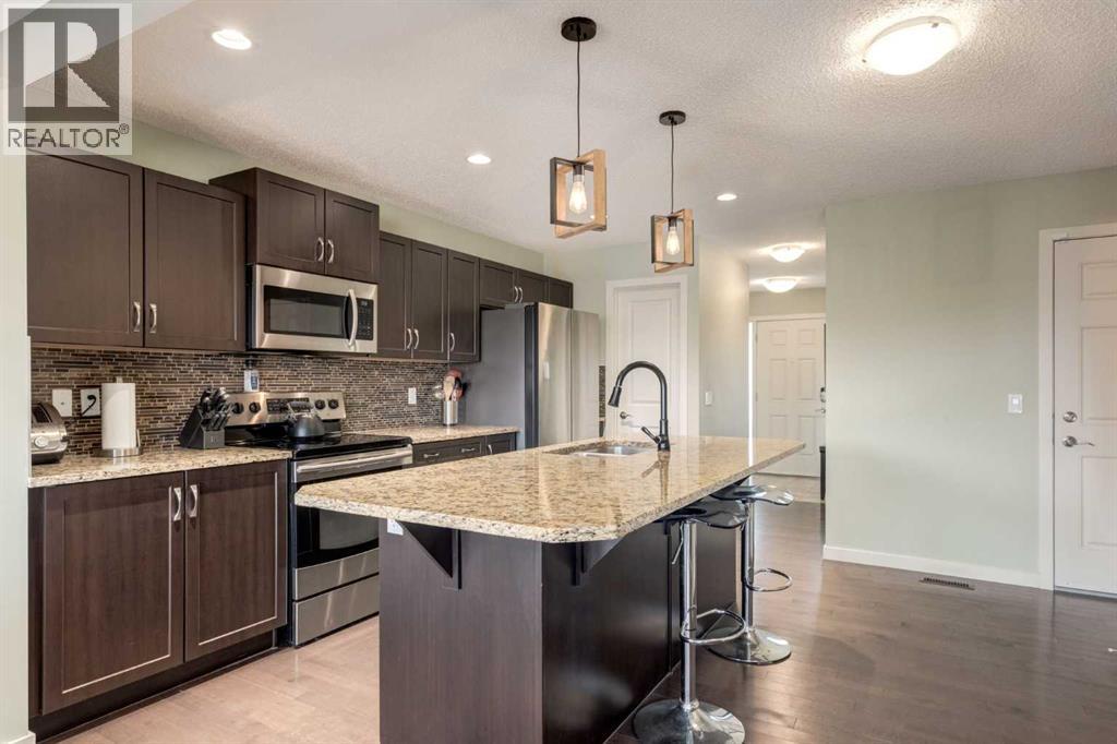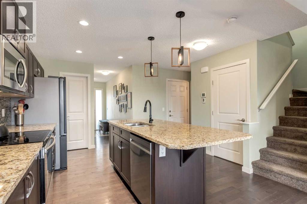 Beautiful semi-detached home situated in the sought after community of River Heights offering 1,896 SF of developed living space with 3+2 bedrooms, 2.5 bathrooms plus a bonus room. The bright and open main floor greets you into a large tiled foyer with seamless transition into the main living area with hardwood flooring throughout and a well equipped kitchen featuring quartz countertops, center island with eating bar, stainless steel appliances and a walk-in pantry. The dining area gives access to the SOUTH facing deck and living room enjoys backyard views. A powder room completes this level. Upstairs you will find a generously scaled bonus room, primary suite with a walk-in closet and 4 piece bathroom and 2 additional guest rooms which share a 4 piece bathroom. The basement expands your living space with 2 more bedrooms (or home office), laundry room and an abundance of storage. Don't overlook the OVER-SIZED attached single garage (24'x13') and spacious, fully fenced backyard. Ideally located within walking distance to parks, schools and minutes to an array of amenities. Nothing to do but move in! (id:53676)