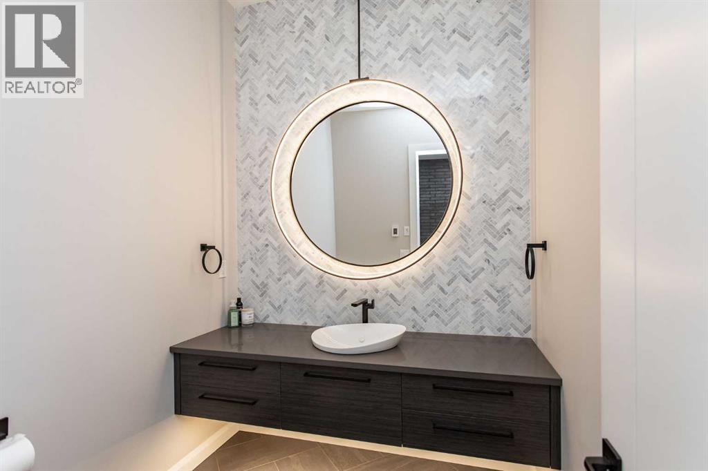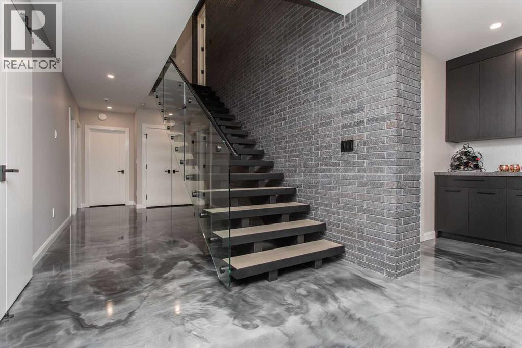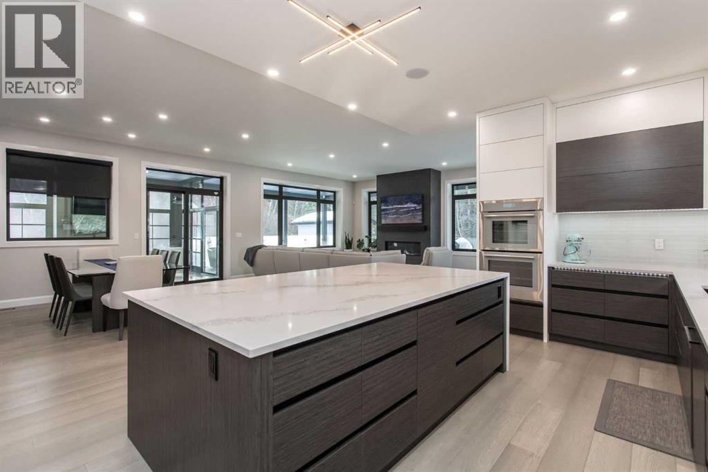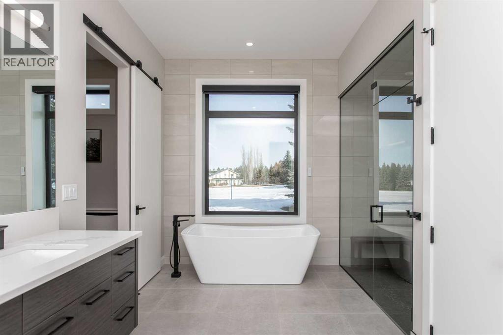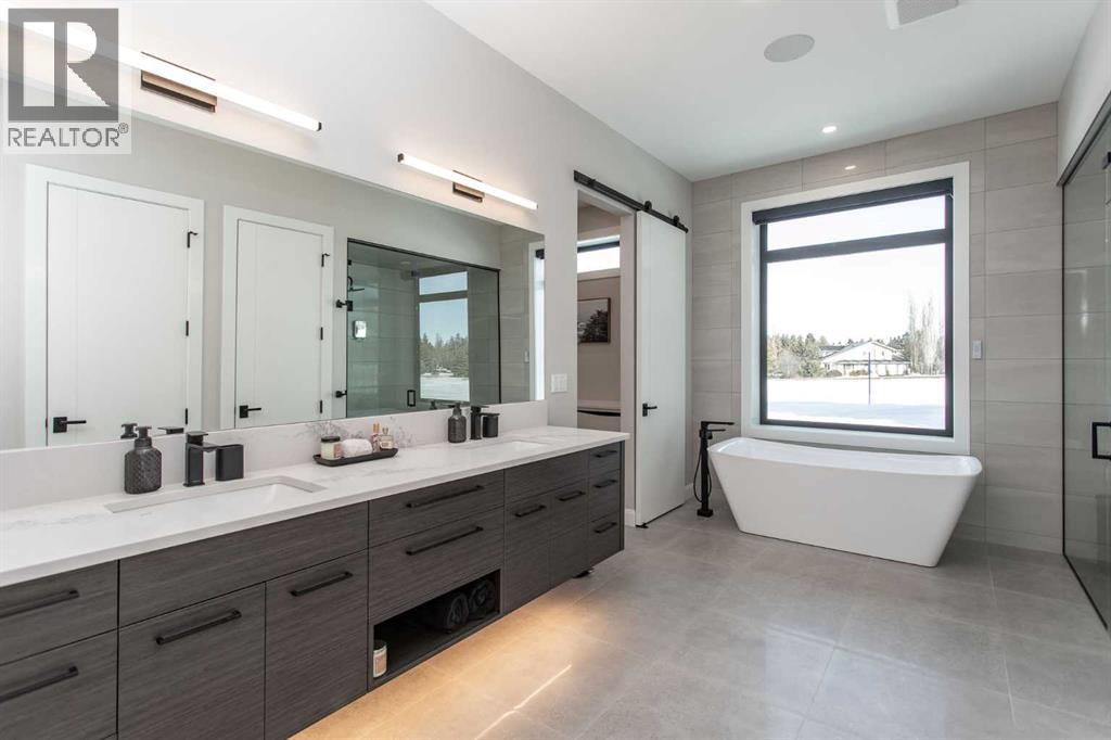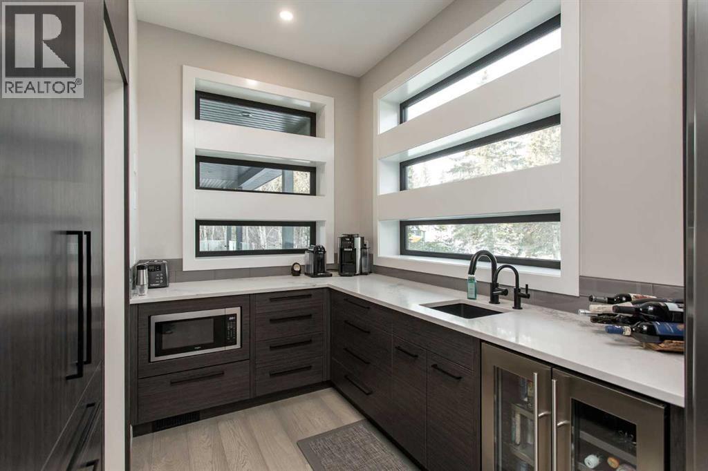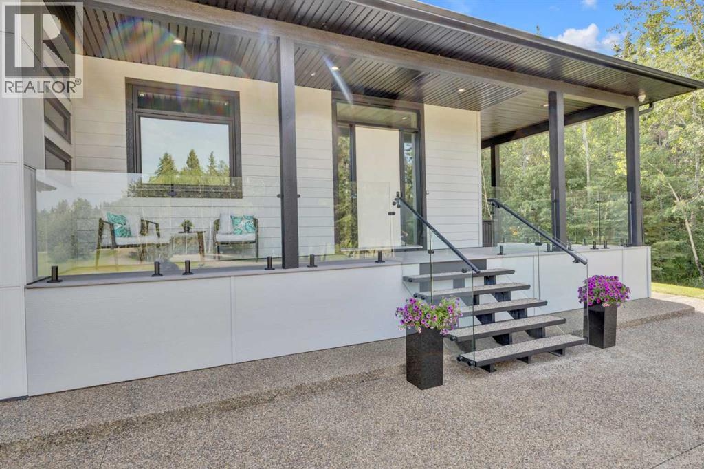 Introducing an exquisite modern retreat, situated on 1.02 acre, only minutes to the Red Deer College, the Red Deer Hospital, and the vibrant pulse of the city, this residence represents the pinnacle of luxurious living. The 2021 masterpiece has been meticulously designed to blend luxury, elegance, and comfort across its expansive 5 bedrooms and 6 bathrooms. Upon entering this stunning residence, you are greeted by exquisite details throughout. The exceptional kitchen is a chef’s dream adorned with high-end Wolf and Sub-Zero appliances and an oversized quartz waterfall island. The entire home is enriched by Cervo custom cabinetry & quartz countertops, featuring extensive storage throughout the home. The kitchen seamlessly flows into the dining area boasting a custom brick feature wall, complete with a Butler pantry for added convenience. The custom Butler pantry boasts a freezer, sink, wine fridge, and office area leading to custom coat and shoe storage upon entering the garage. The dining room leads to a three-season sunroom, featuring a fireplace, TV, and floor-to-ceiling windows all under the comfort of epoxy flooring, built-in speakers, and ceiling fan, ensuring year-round enjoyment. The primary suite serves as a sanctuary, offering a 5pc ensuite with a steam shower, power blinds, soaker tub, dual sink, leading into a massive walk-in closet with convenient laundry room access. The additional bedrooms are no less impressive, showcasing custom wardrobes, built-in nightstands, and innovative lighting solutions. The lower level invites endless entertainment possibilities, accompanied by a wet bar featuring a magnetic backsplash, dishwasher, wine fridge, wine room closet, and carpeted theatre room with 85-inch TV and surround sound system. The downstairs is complemented by a dedicated gym, easily convertible to fit any hobby or games, alongside an attached storage room. The garage, a haven for any car enthusiast or craftsman, with 12ft and 14ft ceilings, 10x16 and 10x 8 sunshine doors, heated epoxy flooring, floor drain and modern conveniences like air conditioning and a 2pc bathroom. For the outdoor enthusiasts this peaceful acreage is situated near an outdoor skating rink, community park and green space. It boasts extensive landscaping with 5000 feet of exposed aggregate concrete, custom concrete lawn edging, underground sprinklers, lilacs, black mulch, outdoor pizza oven, wrap around deck and a 14x25 covered deck with glass panels. No detail was spared in the design of this home with the highest standards for luxurious living including a 10 yr home warranty, ICF construction, 35 yr shingles, upgraded water system, 2 HRV systems, Lennox hi-efficiency furnace, glycol boiler, extra insulation in flooring and walls, custom stairs to lower level with maple stringers and hardwood inlays featuring glass rail, solid wood doors, fireplace, triple pane windows, powered window coverings, premier flooring and fixtures. (id:53676)
