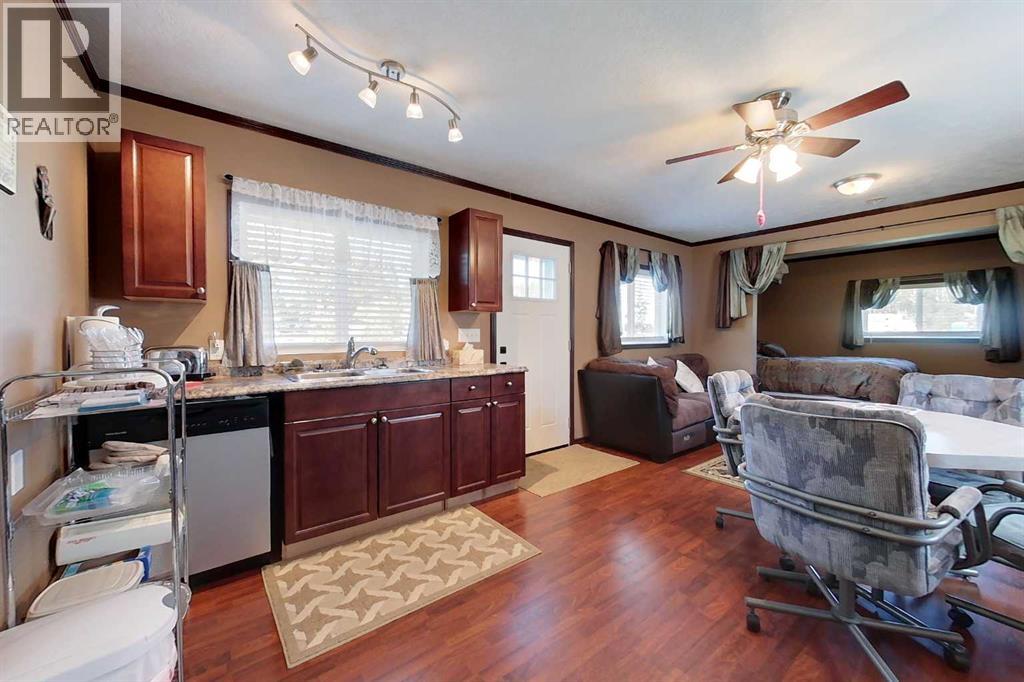 Cute and Cozy Recreational property located just minutes from Spruce Point Park Marina on one of Alberta's nicest lakes where you can enjoy boating, fishing and watching some of the best sunsets!! Inside the cabin, you will find a cozy open concept living space kitchen/dining, bedroom and a 4-pc bathroom with hook ups for washer and dryer. This gem is well maintained and move in ready, complete with all household furnishings. Outdoors has a front deck, a large storage shed featuring overhead door for lots of storage area. Underground cistern is 1000 gallons and septic tank is 1000 gallons. The large lot is nicely landscaped with plenty of space for company to park RV's for the family camp outs!!! (id:53676)