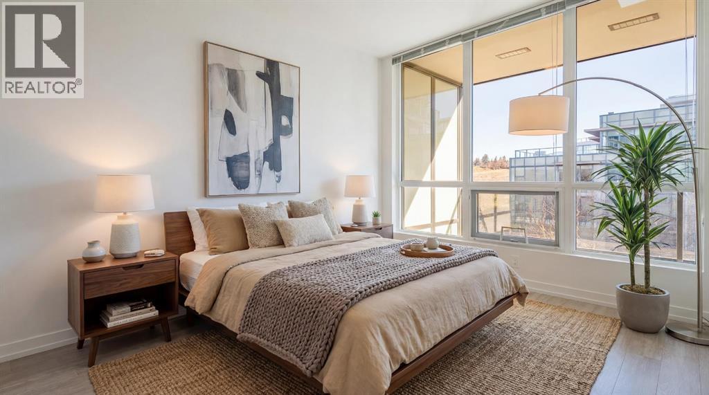 Experience riverside downtown living at its best in this quiet, courtyard-facing 1-bedroom suite at the Outlook at Waterfront. Positioned on the third floor, the unit overlooks a landscaped and secured inner courtyard with pleasant views toward Crescent Heights, giving you daylight and privacy while remaining steps from the Bow River pathway and downtown amenities. Inside, the suite offers an efficient, open floor plan with natural light and a calm outlook. Large windows frame the courtyard view and bring in consistent daylight. The living area flows to a practical kitchen (with luxury built-in appliances, quartz counters, clean lines) and a kitchen island ideal for weekday breakfasts or hosting friends. In-suite laundry and secure storage complete the functional conveniences you want in downtown living.The building elevates everyday life with a full amenity roster: fully equipped gym and yoga room, hot tub and sauna for post-run recovery, a large owners’ lounge for gatherings or remote work, and 24/7 concierge for deliveries and guest access. One assigned secured, heated underground parking stall is included, plus secure bike storage and visitor parking for guests.Location is a standout – launch runs, bike expeditions, or leisurely walks on the Bow River pathway, grab coffee and dining in Eau Claire, walk to the Core Shopping, or hop on transit for easy access across the city. The building also sits beside the planned Eau Claire redevelopment (although you are not facing it), a major long-term enhancement that will add retail, green space and connectivity to the riverfront. Right at the doorsteps to Prince's Island Park, Chinatown, Superstore, East Village, LRT access and across the newly minted Eau Claire Athletic Club.Ideal for downtown professionals, investors, or anyone seeking a low-maintenance urban home with top-tier building amenities and true proximity to the river. Move-in ready and easy to show, arrange a private viewing with your favourite Realt or today! (id:53676)