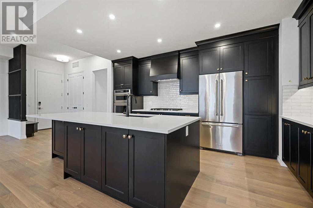 **BRAND NEW HOME ALERT** Great news for eligible First-Time Home Buyers – NO GST payable on this home! The Government of Canada is offering GST relief to help you get into your first home. Save $$$$$ in tax savings on your new home purchase. Eligibility restrictions apply. For more details, visit a Jayman show home or discuss with your friendly REALTOR®. The Streams of Lake Mahogany present an elevated single-level lifestyle in our stunning Reflection Estate homes situated on Lake Side on Mahogany Lake. Selected carefully from the best-selling renowned Westman Village Community, you will discover THE CASCADE, a home created for the most discerning buyer, offering a curated space to enjoy and appreciate the hand-selected luxury of a resort-style feeling while providing you a maintenance-free opportunity to lock and leave. Step into an expansive 1700+ builders sq ft stunning home overlooking a gorgeous greenspace adjacent to Mahogany Lake featuring a thoughtfully designed open floor plan inviting an abundance of natural daylight with soaring 10-foot ceilings and oversized windows. The centralized living area, ideal for entertaining, offers a Built-in KitchenAid sleek stainless steel package with French Door Refrigerator and internal ice maker and water dispenser, a 36" gas cooktop, a dishwasher with a stainless steel interior, and a 30-inch wall oven with microwave; all nicely complimented by the an Elevated Charcoal Color Palette. All are highlighted with stunning Quartz countertops. You will enjoy two beautiful bedrooms, a generous central living area, with the Primary Suite featuring a spacious 5-piece oasis-like ensuite with dual vanities, a large soaker tub, a stand-alone shower, and a generous walk-in closet. The Primary Suite and main living area step out to a 39ftx15ft terrace with a lovely view of the greenspace. Yours to enjoy and soak in every single day. To complete the package, you have a sizeable office area adjacent to the spacious laundry room and a d ouble attached heated garage with a full-width driveway. Custom additions to this home include under cabinet lighting, upgraded Moen black plumbing fixture package, air conditioning, convenient laundry room with folding table, stunning electric fireplace and expansive covered terrace with access from the Living Room, Dining Room and Owners Suite. Jayman's standard inclusions feature their trademark Core Performance, which includes Solar Panels, Built Green Canada Standard with an Energuide rating, UVC Ultraviolet light air purification system, high-efficiency heat pump for air conditioning, forced air fan coil hydronic heating system, active heat recovery ventilator, Navien-brand tankless hot water heater, triple pane windows and smart home technology solutions. Enjoy Calgary’s largest lake, with 21 more acres of beach area than any other community. (id:53676)
