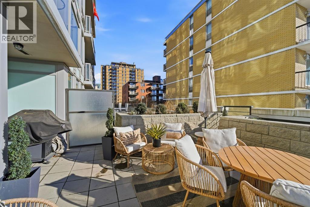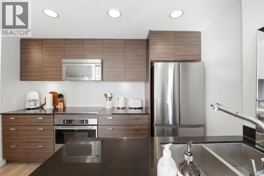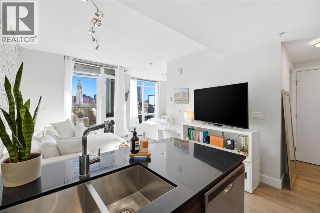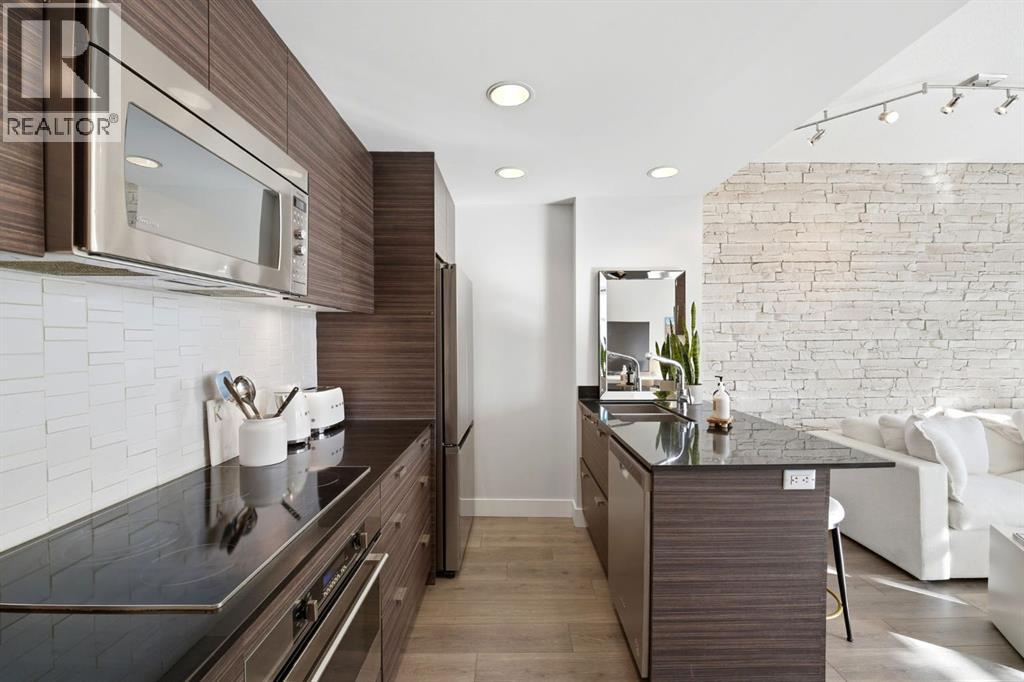 This gorgeous condo has it all! The perfect blend of location, lifestyle, and value in this newer building THE DRAKE, situated in the HEART of downtown, the BELTLINE. Your thoughtfully designed unit offers a bright, modern interior paired with low condo fees—making it an ideal choice for both homeowners and investors with an OUTDOOR LIVING SPACE that is so hard to find that feels like having an extension of your living space without the added cost! This is one that people wait for! It is a beautiful, modern space, that is bright and open with gorgeous upgraded vinyl plank floors, a modern kitchen with stainless steel appliances and a sit-up peninsula, granite countertops allowing tons of prep space and an area youll love to cook in. These units are built with high ceilings in most living areas creating a roomy, expansive feel. The living area has a stone textured feature wall with a wall of glass windows and your deck doors, leading outside and letting all of the light in! Outside you have a private deck space with upgraded railings and low maintenance appeal with a view to enjoy your morning coffee, and extended living space outside creating year round enjoyment and giving the feel of a house -but in a condo, and without the cost! The outdoor space can house a decent size patio set and outdoor entertaining room for you and your guests to relax in. Back inside you have your bedroom with dual closets and light tones, giving you a stunning landscape to wake up to each day. Your 4 pc bath includes a modern vanity and tub/shower combo and off of the entry way is an in-suite laundry that completes the unit. What else could you need? The unit comes with a titled underground parking stall and located just off of 17th Ave (otherwise known as ‘the pulse of Calgary) in the Beltline neighbourhood that has it all! Luxury salons, quaint coffee shops, executive businesses and an ensemble of choice restaurants are just a few amenities to call this neighborhood home. The Drake i s one of the newer condo projects to hit this popular location with water smart plumbing, and non-toxic paint finishes and are just a few features that help make the Drake condos eco-friendly as well. Whether you’re looking for convenience, comfort, or smart urban living, this condo delivers it all—without compromising on value. Dont miss out on viewing this stunning condo and making it yours. Its a "unicorn" of condos and wont last! (id:53676)