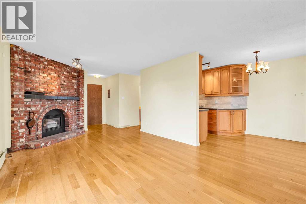 One of the best buildings on the Cedar Cres in Spruce Cliff. Cement building, Self managed, no dogs, no Smoking of anything on the Property, (sanctions applicable), Great reserve fund, and sits on the escarpment close to the Douglas Fir Trail, the Lawrey Gardens and the paths down by the Shaganappi Golf course. This property is AS/IS (with a disclosure that has to be signed) and is open to renovation (with board approval) that will make it a great place. There are three bedrooms, 1 4 piece bath and 1 1/2 Bath. There are other layouts that can be done/. The kitchen was renovated years ago to have Maple cabinets with Corian counters, dishwasher newer stove and fridge. The Living room has a Fireplace with an insert and a brick facing with a mantel and a hearth. The master bedroom has a 1/2 bath that had a washer dryer, but does not meet the codes of the building requirements. This property had a flood and has been dried out. (id:53676)
